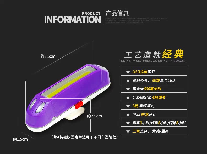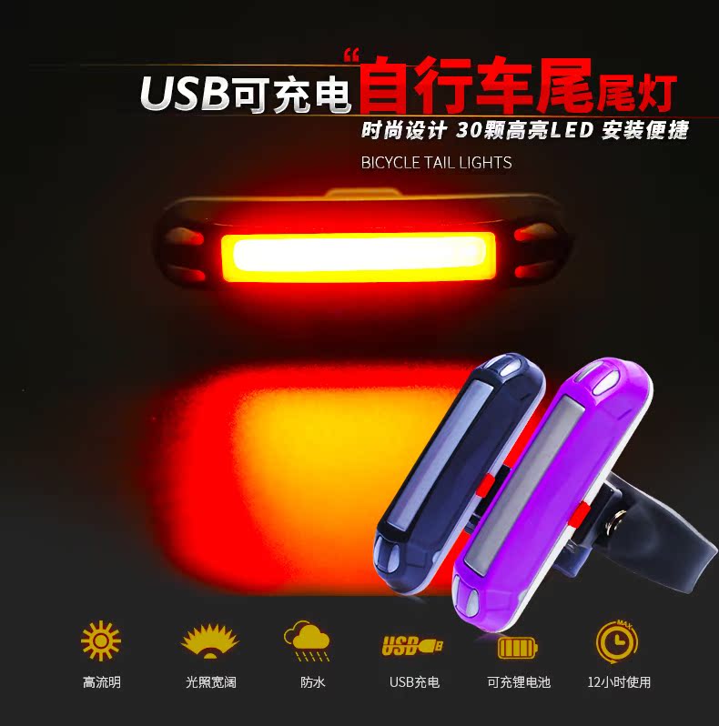 山地車自行車尾燈USB充電尾燈警示燈led車燈高亮后車燈夜騎裝備