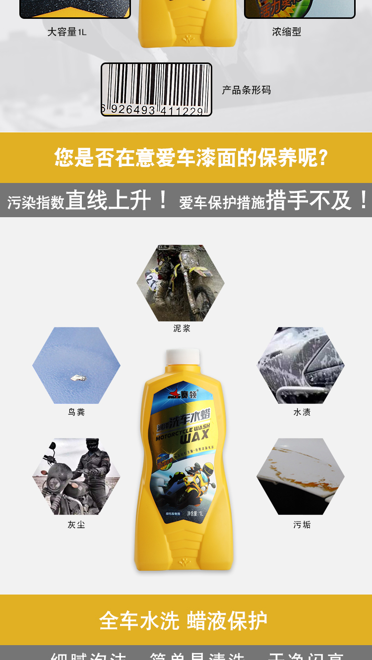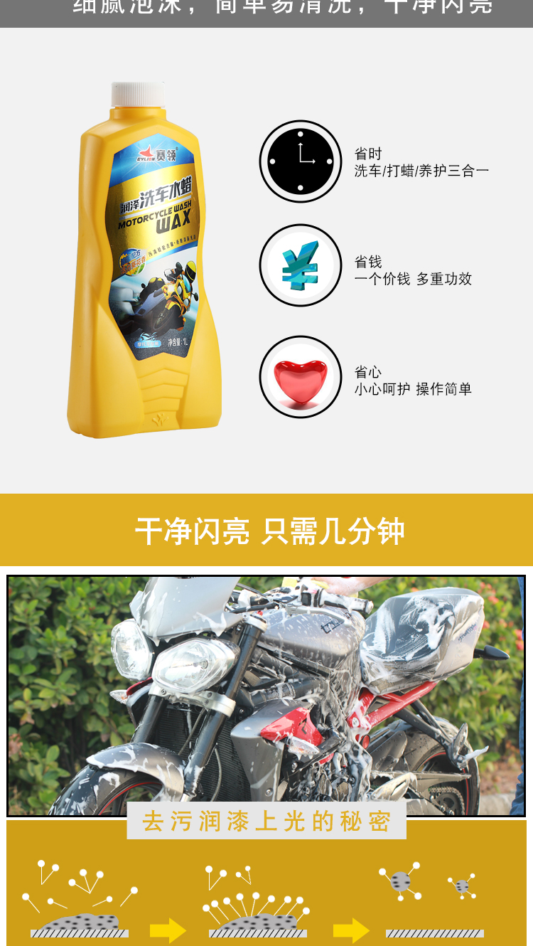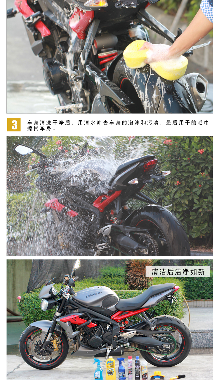賽領摩托車清洗工具電動車摩托車洗車液 清洗劑 水蠟保養用品養護