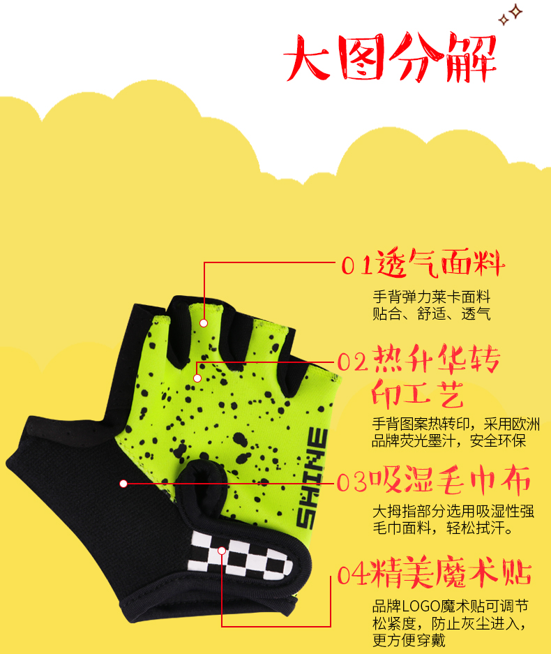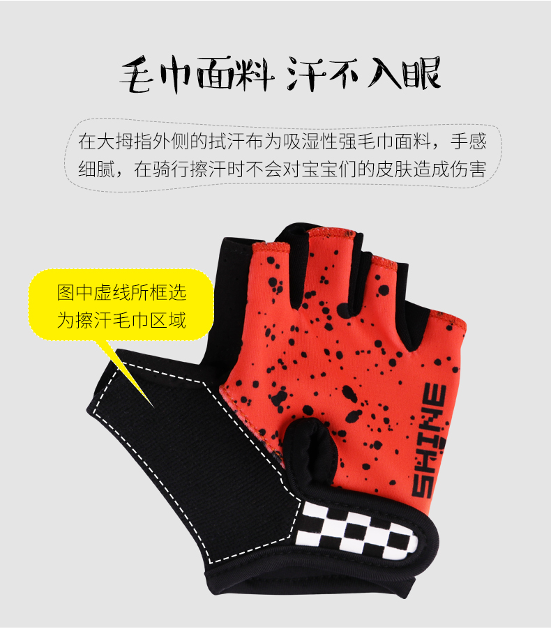 SPAKCT思帕客兒童平衡車騎行手套短指男女孩輪滑自行車半指手套