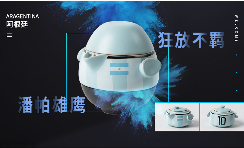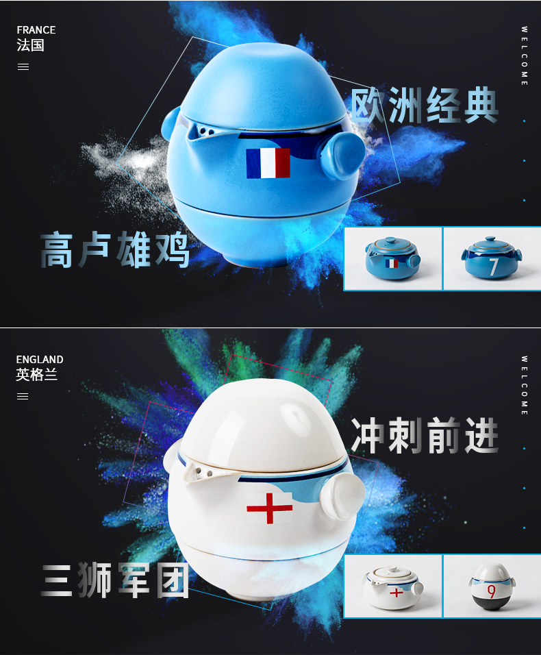 2018年世界杯禮品 足球包裝 旅行茶具快客杯一壺兩杯茶壺球衣茶具