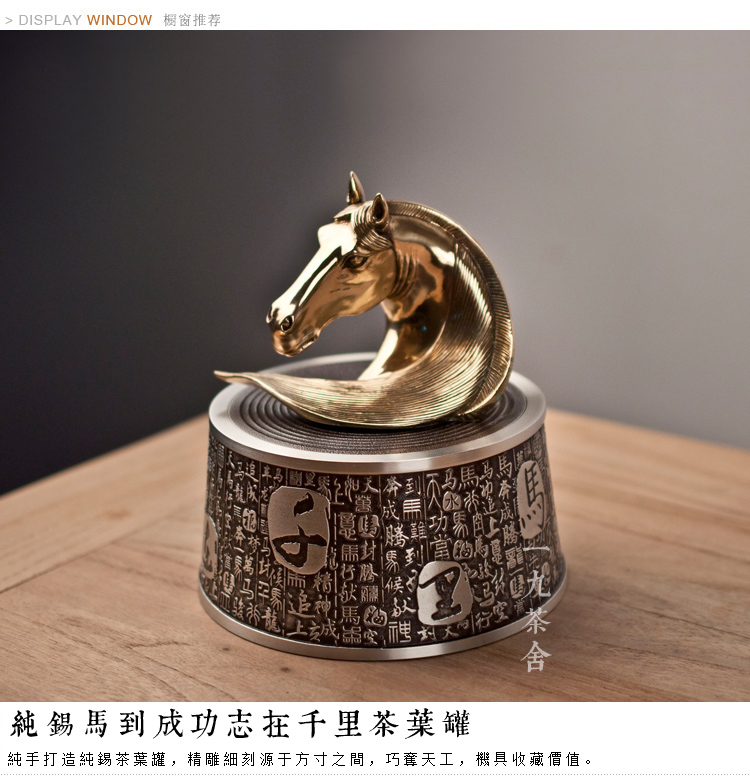馬到成功 純錫茶葉罐 浮雕馬頭錫罐 密封罐 存茶罐 金屬 茶具配件