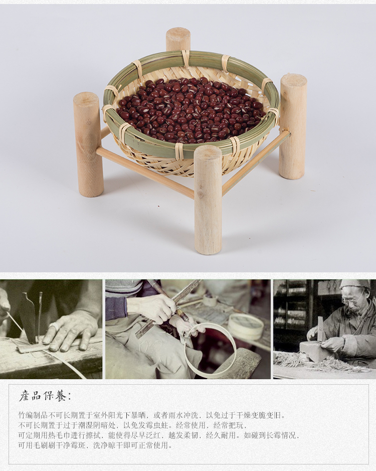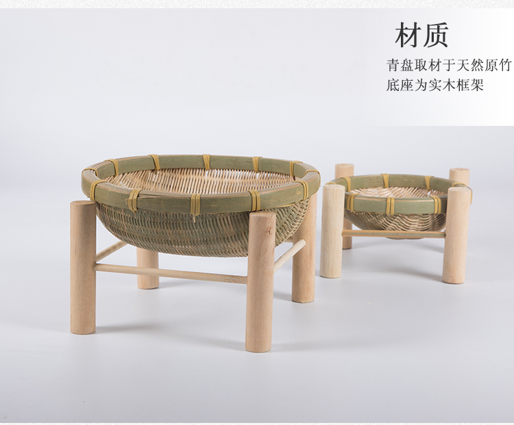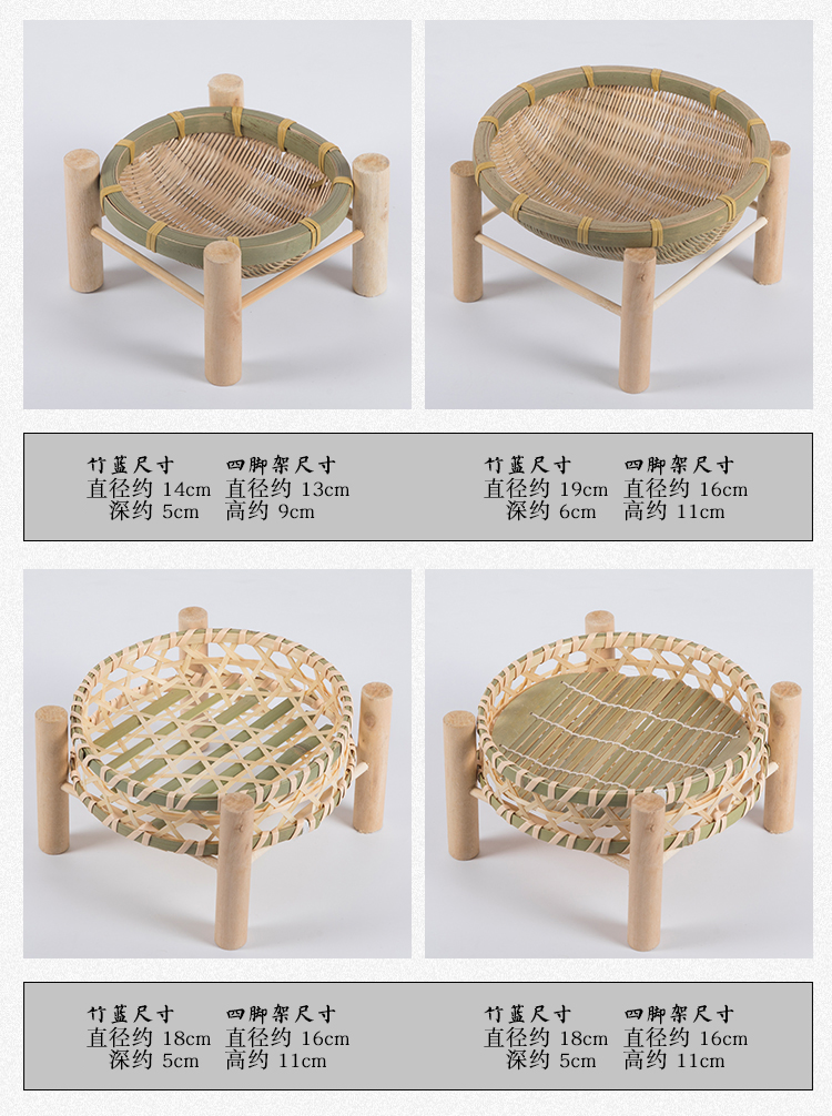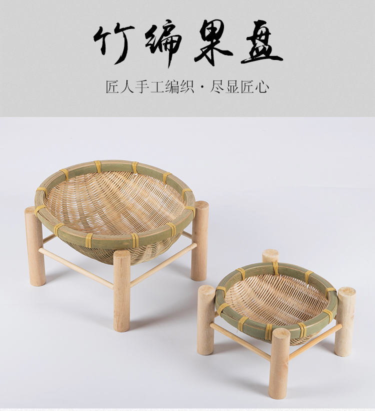 [2]手工竹編果籃 茶點盤 創意家用帶架子收納筐 小籃子 竹篩子竹簸箕