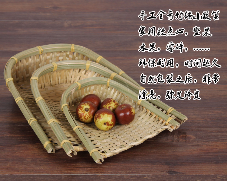 備注:每一份原材料都取自天然竹子 每一根竹子都帶有獨特的個性 因此每一成品顏色、大小都會存在一些差異 也會帶有竹子本身的紋理和斑點 介意者慎拍 新竹編顏色為青色,隨著時間的推移,會慢慢變為淺黃色,在不短使用的過程中,包漿成功之后,會慢慢變成迷人的暗紅色!年代越久遠,會更加彌足珍貴! 作用:放水果、放蔬菜、放干果,亦可晾曬些您所需要的東西本產 品純天然綠色產品 環保 實用 竹編制品不可長期置于室外陽光下暴曬,或者雨水沖洗,以免竹器過于干燥變脆變舊。不可長期置于過于潮濕陰暗處,以免發霉蟲蛀。經常使用,經常把玩,可定期用熱毛巾進行擦拭,能使得竹器盡早泛紅,越發柔韌,經久耐用。如碰到長霉情況,可用毛刷刷干凈霉斑,洗凈晾干即可正常使用。