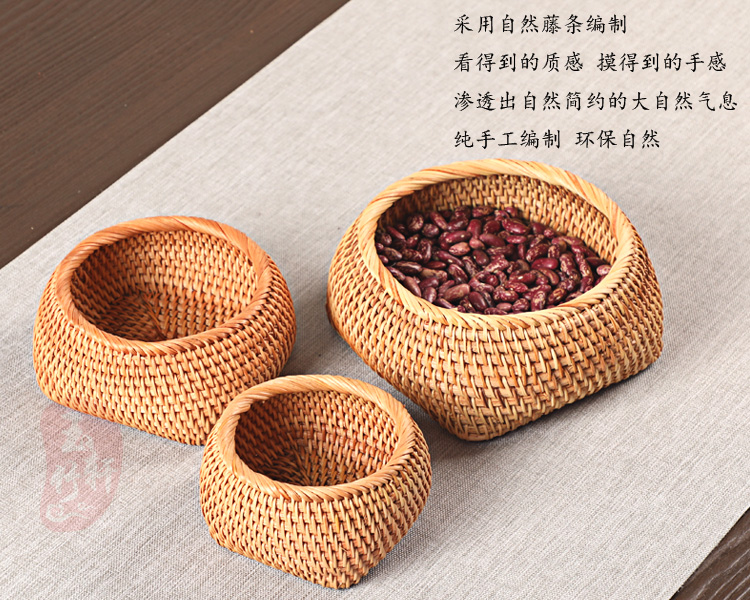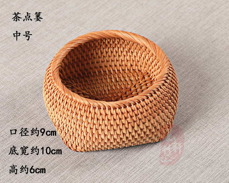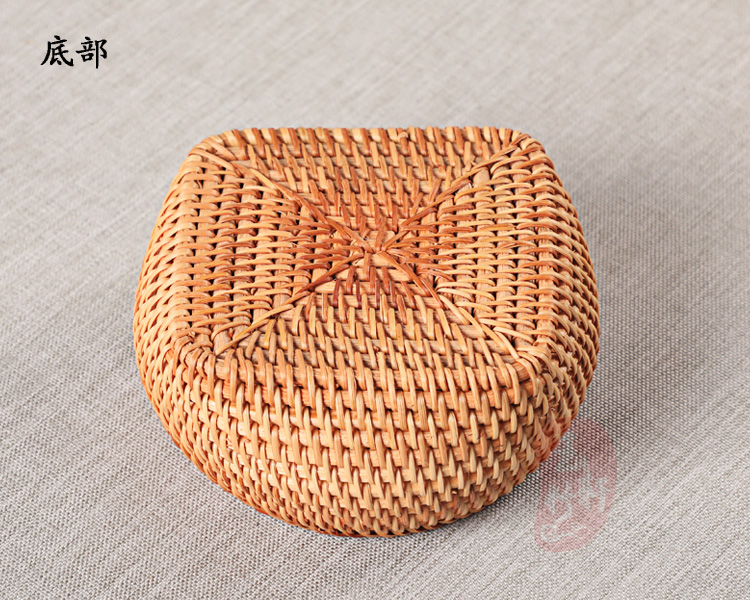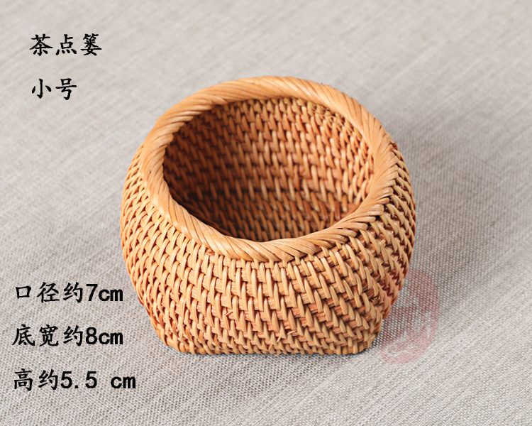 越南藤編茶筒 零食收納筐茶具收納盒零配件 小沱茶普洱茶道茶點盤