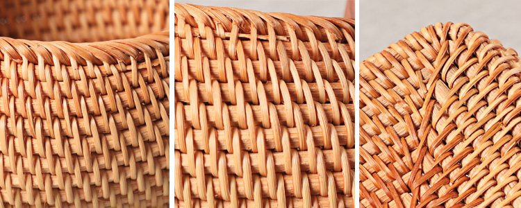 工藝:細藤條層層環繞主架,手工精巧編織,底部較厚,仿磕碰。藤條收尾工作細膩,使用中也不會脫線,實用而且美觀。