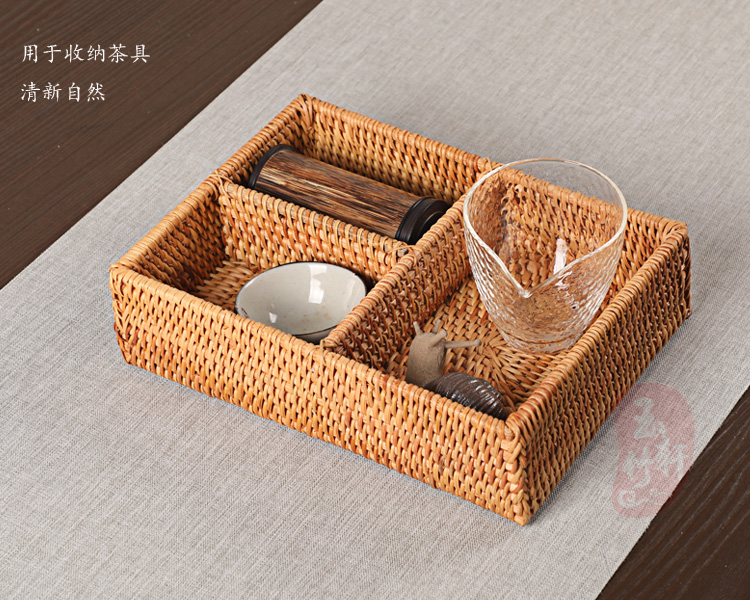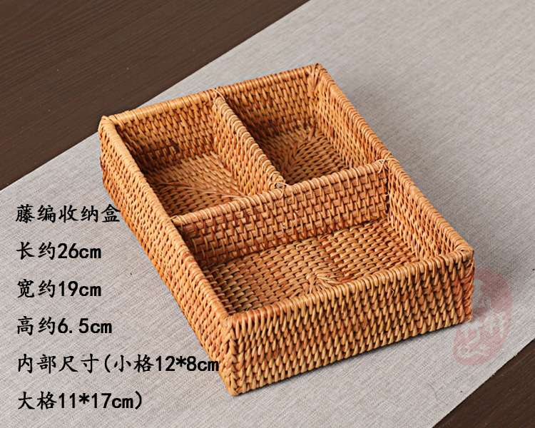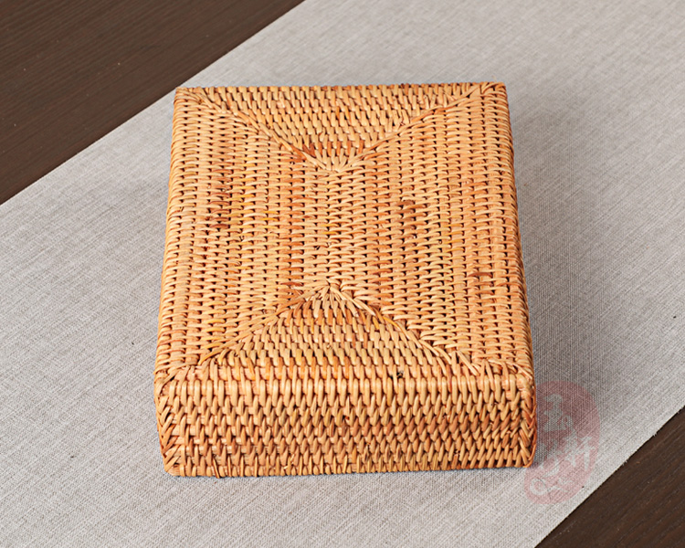 越南秋藤編收納盒 整理筐 遙控器鑰匙盒 家用方形 功夫茶道零配