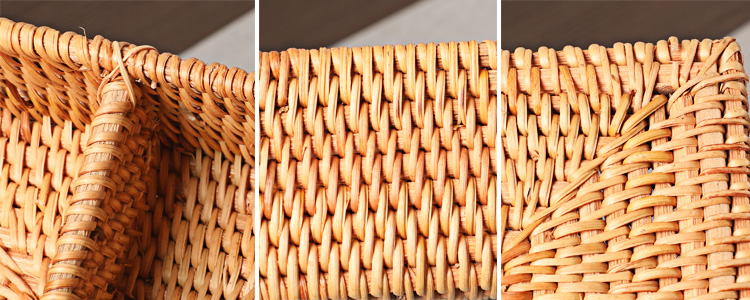 工藝:細藤條層層環繞主架,手工精巧編織,底部較厚,仿磕碰。藤條收尾工作細膩,使用中也不會脫線,實用而且美觀。