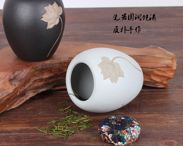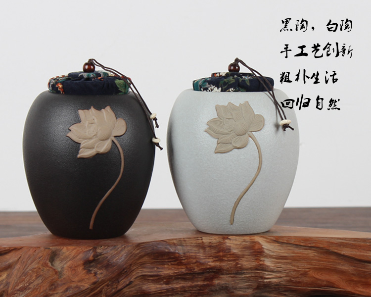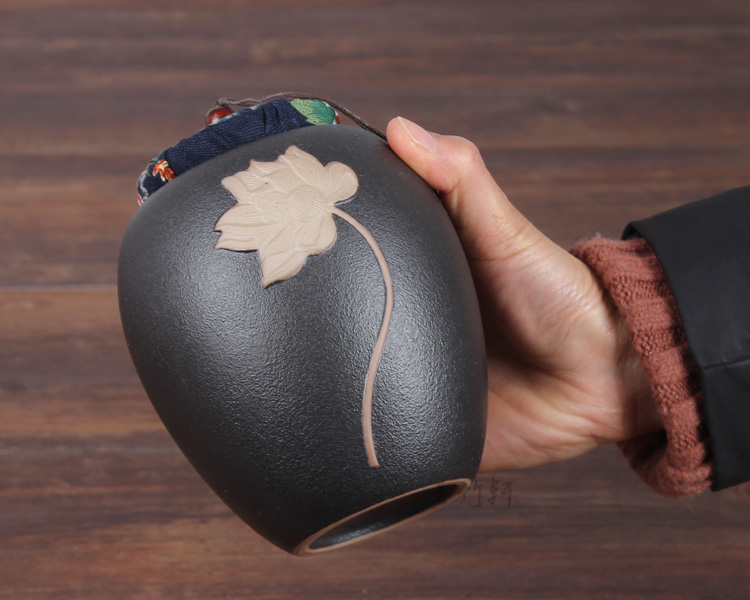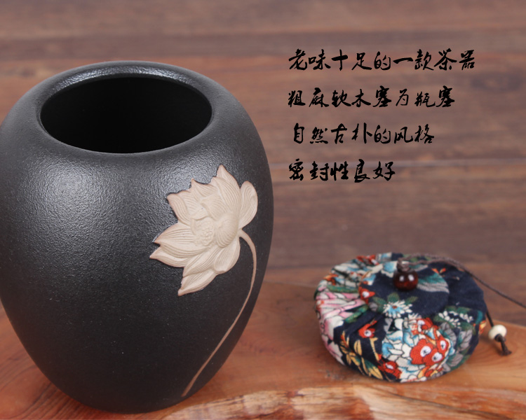 軟木塞粗陶荷花密封茶葉罐子 大號陶瓷儲茶盒 醒茶葉桶 茶葉包裝
