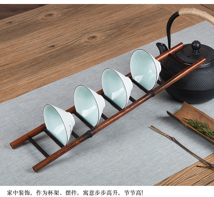 竹制晾杯架竹鞭創意 日式茶杯托茶具架子 寓意步步高升茶道零配件