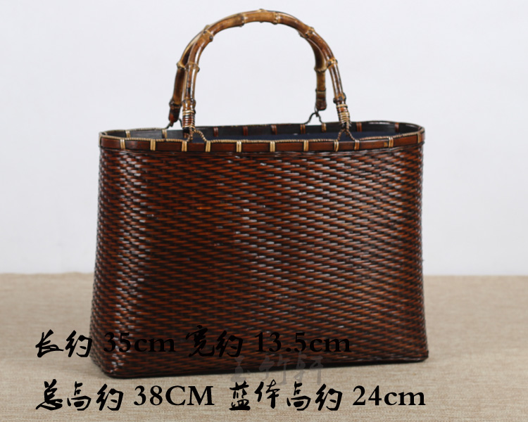 工藝:純手工竹編包 竹編包乃老篾匠經過幾個工作日手工編織而成,古色古香,韻味十足,年代使用越久越值得珍藏,因手工編織產品,尺寸,色差會略有,請親們體諒,竹編包乃大自然的產物,相信愛它的您,得到它會對他愛不釋手! 溫馨提示:純手工編織品,為了保證質量,出貨較慢,現貨不多,如需訂購請從速喲