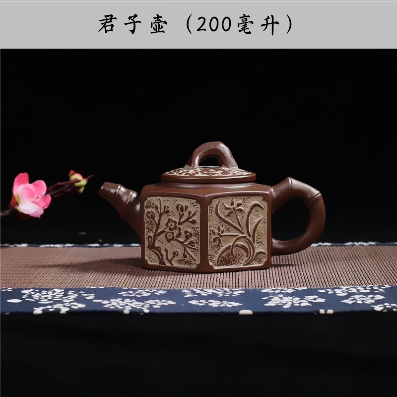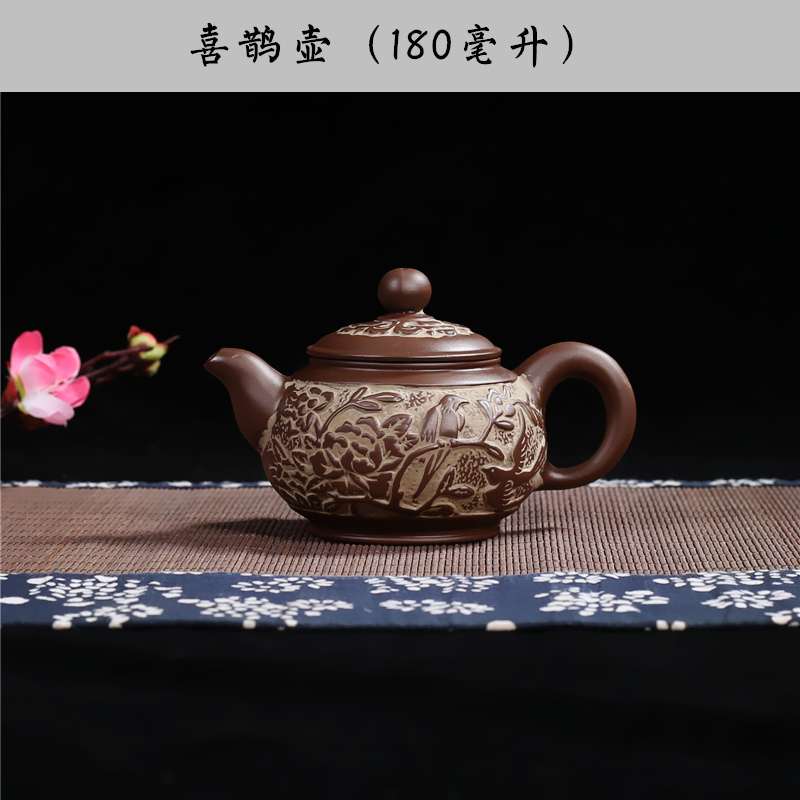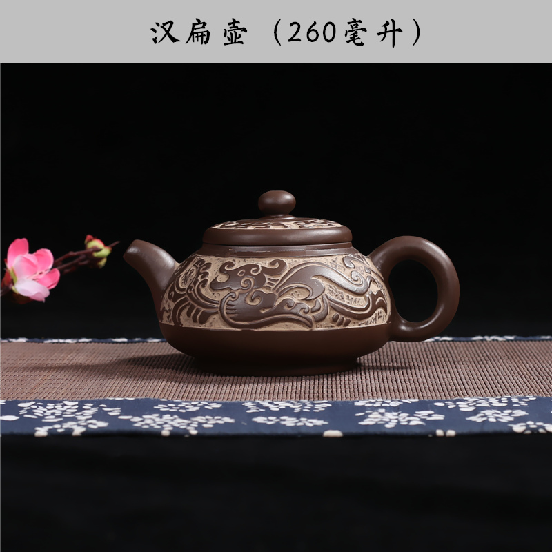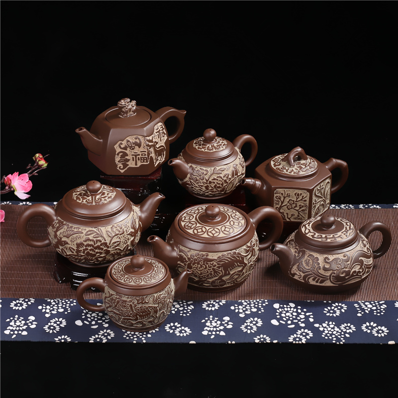 紫砂壺純半手工大小容量刻畫黃銅家用西施泡茶壺花茶壺茶具博古擺