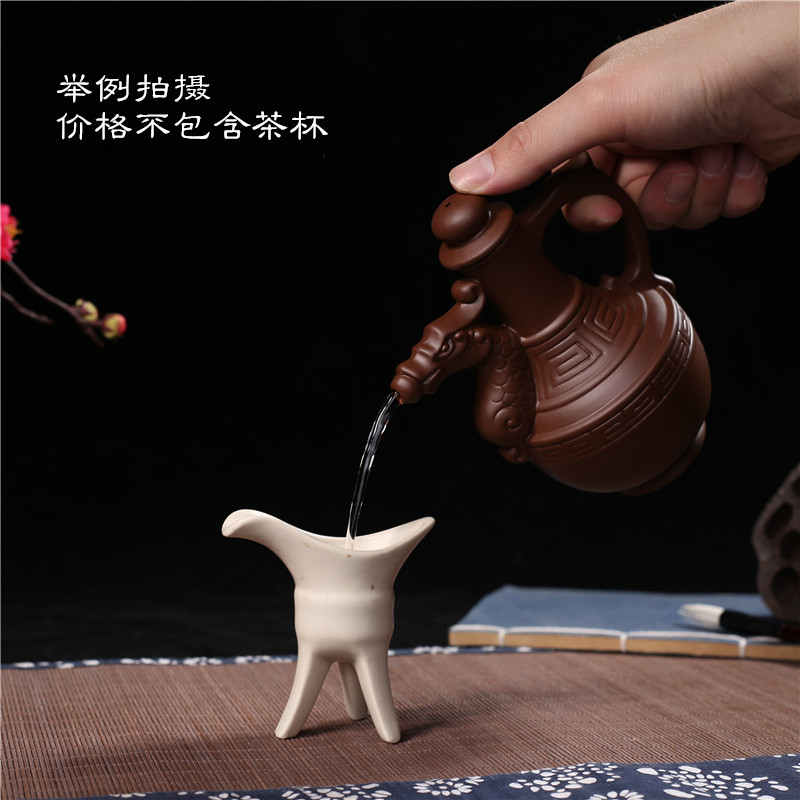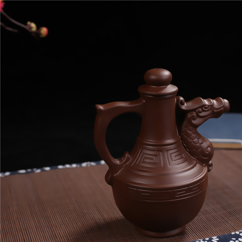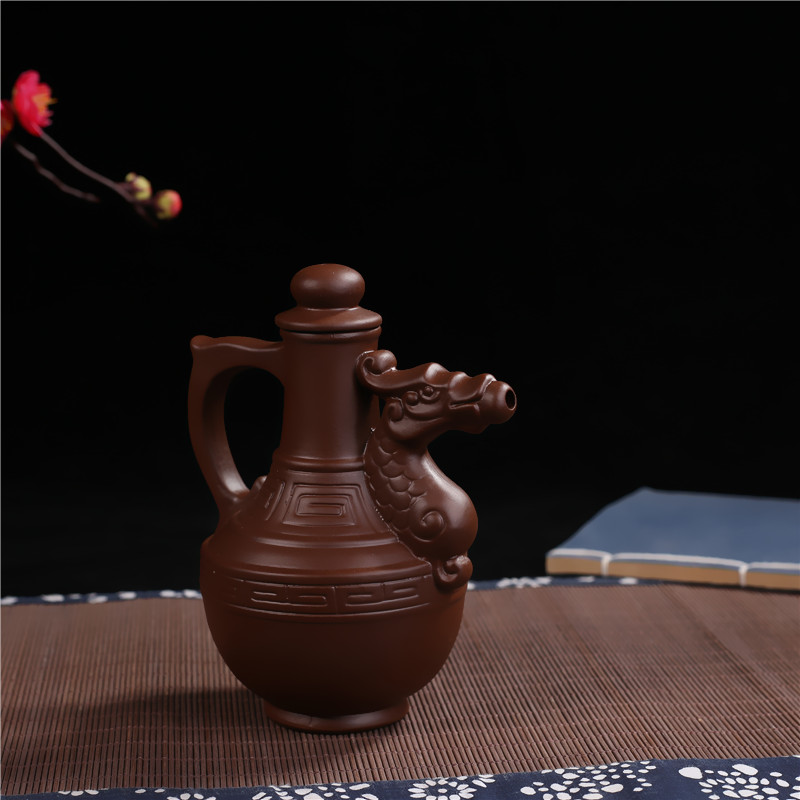 紫砂壺半手工壺龍躍云海壺紫泥原礦泥壺家用博古擺件裝飾壺270ml