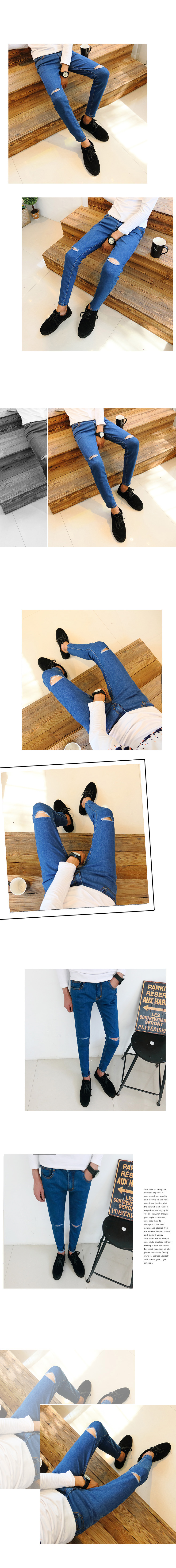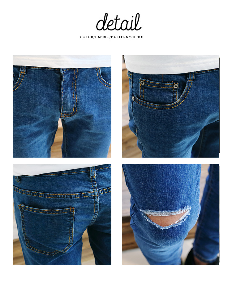 2019春季彈力緊身破洞九分褲男修身小腳牛仔褲潮流韓版9分褲男褲