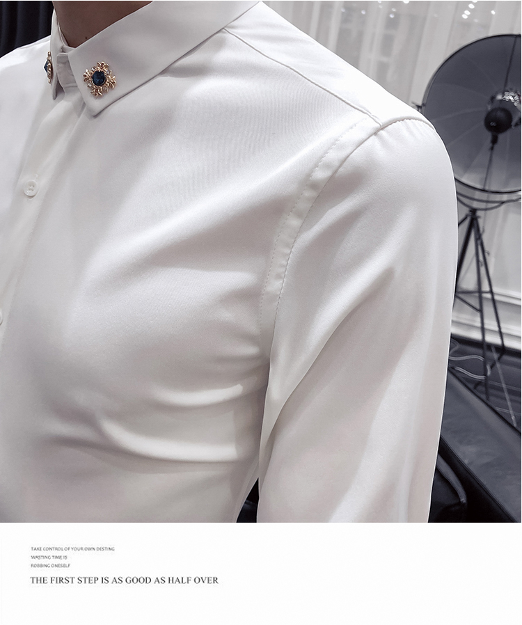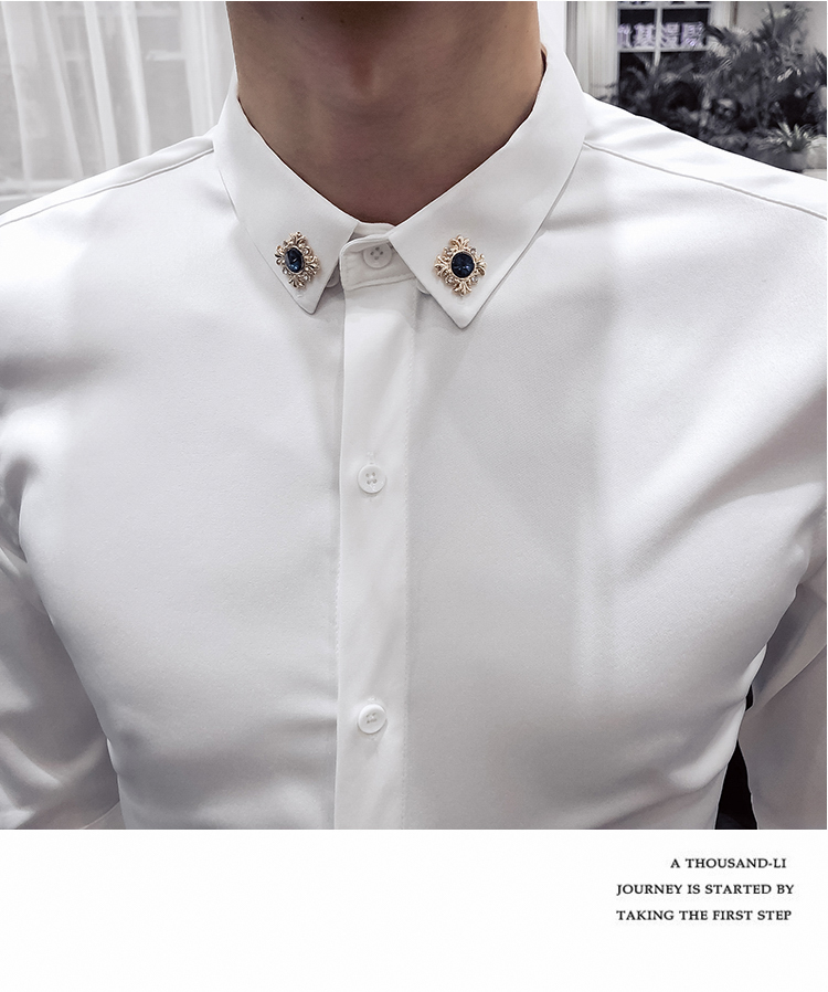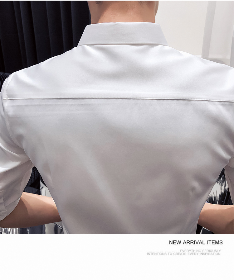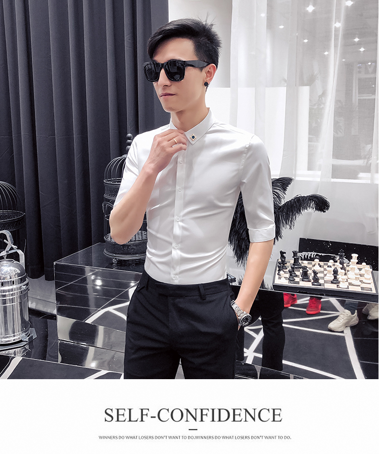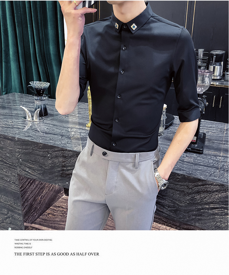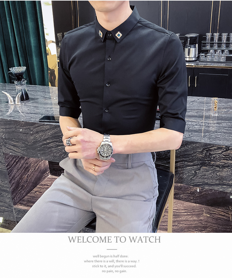 韓版男士中袖襯衫領子金屬裝飾五分袖襯衣