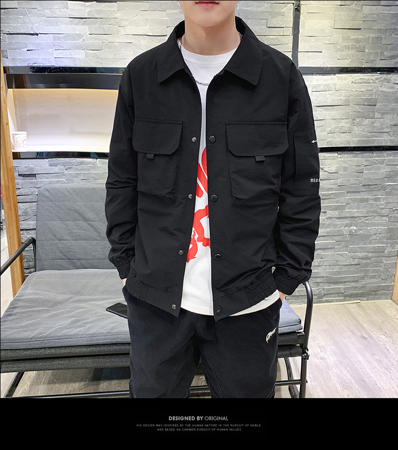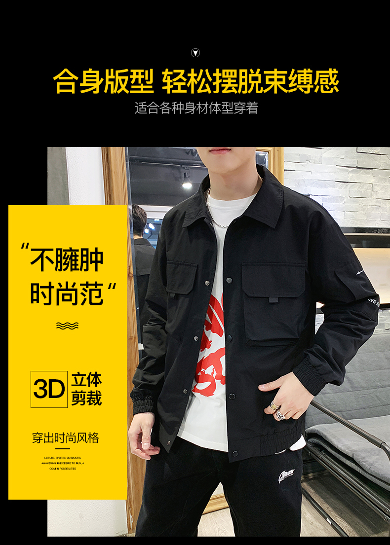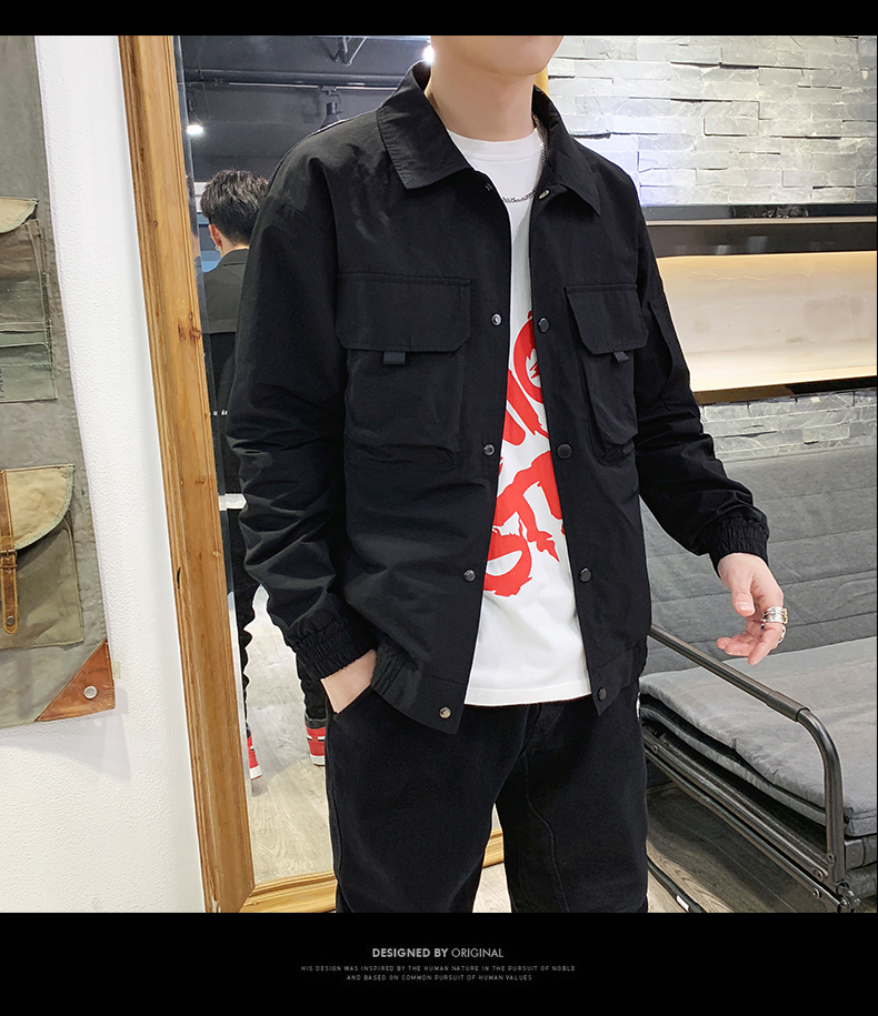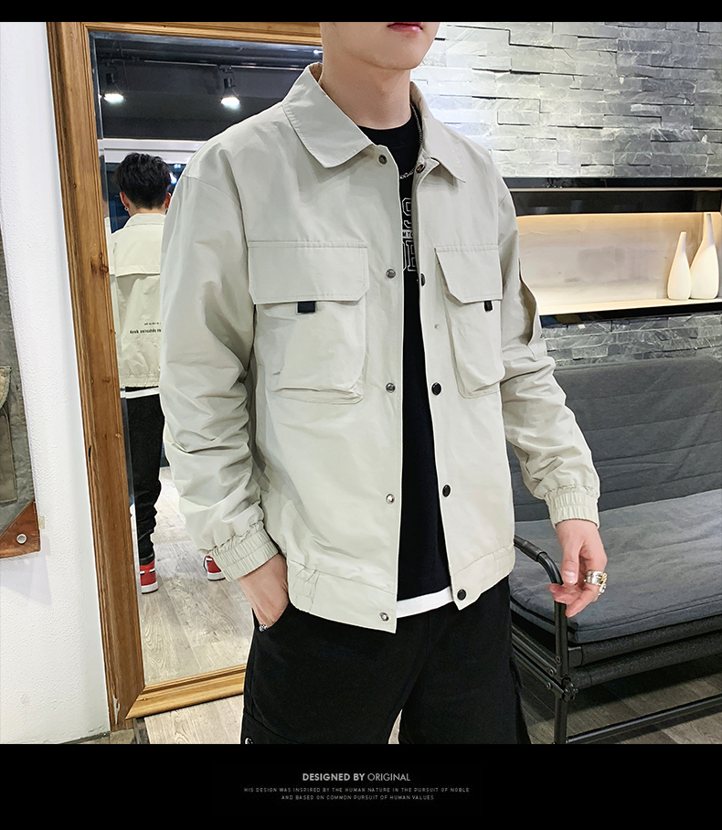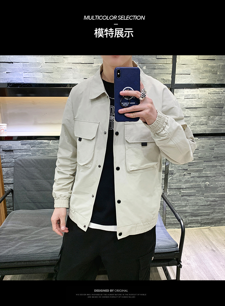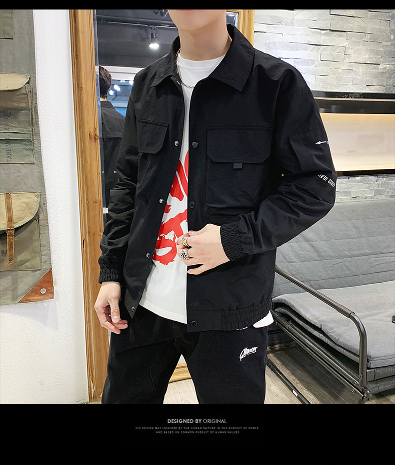 2019春裝新款工裝翻領夾克男潮薄款韓版修身褂子休閑外套ins男裝