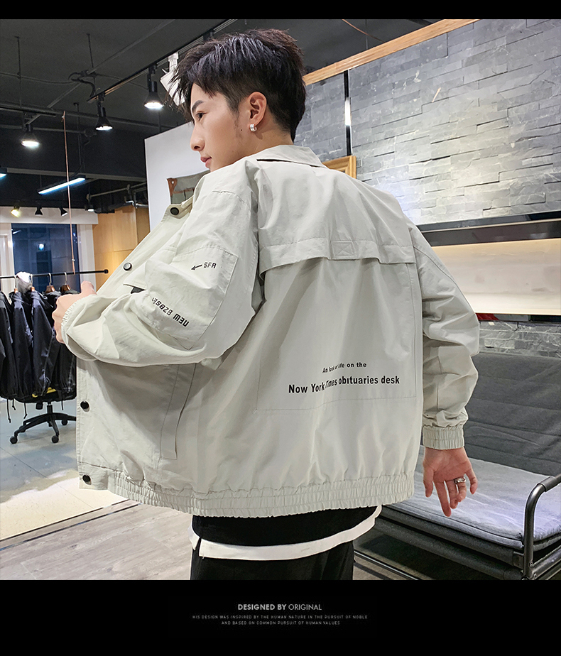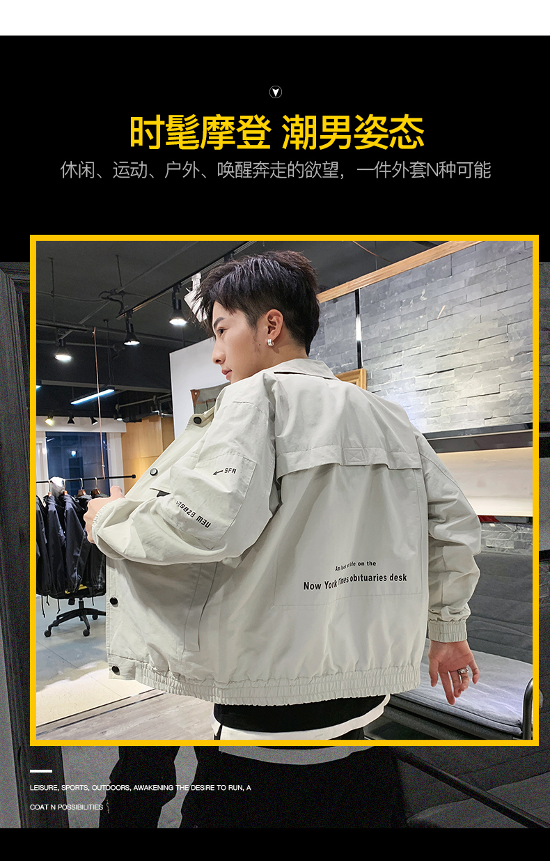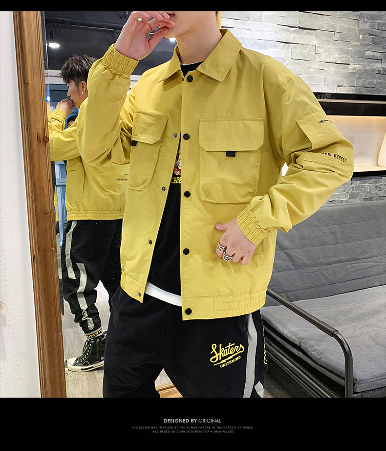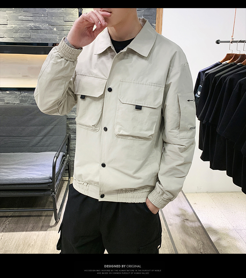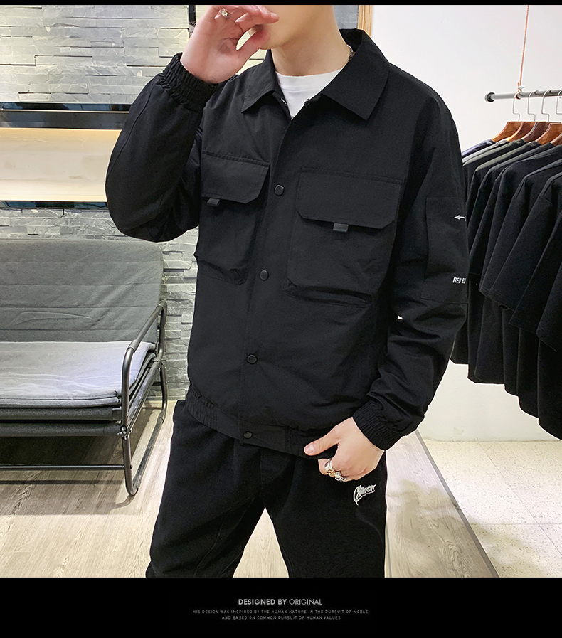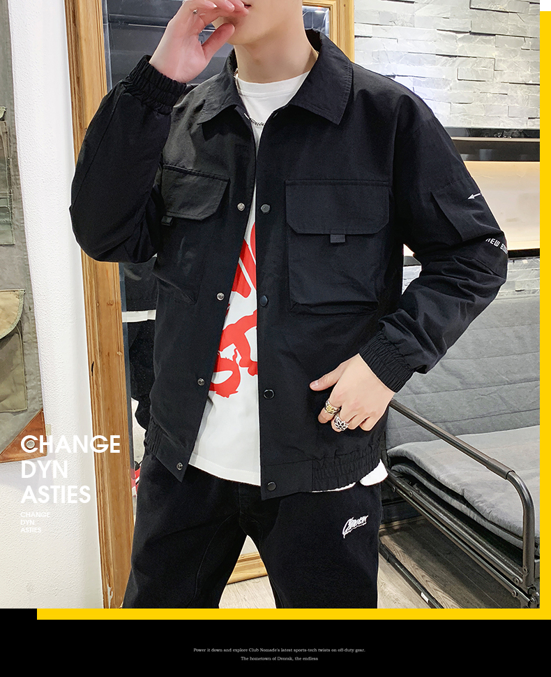 2019春裝新款工裝翻領夾克男潮薄款韓版修身褂子休閑外套ins男裝