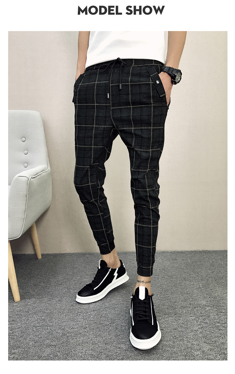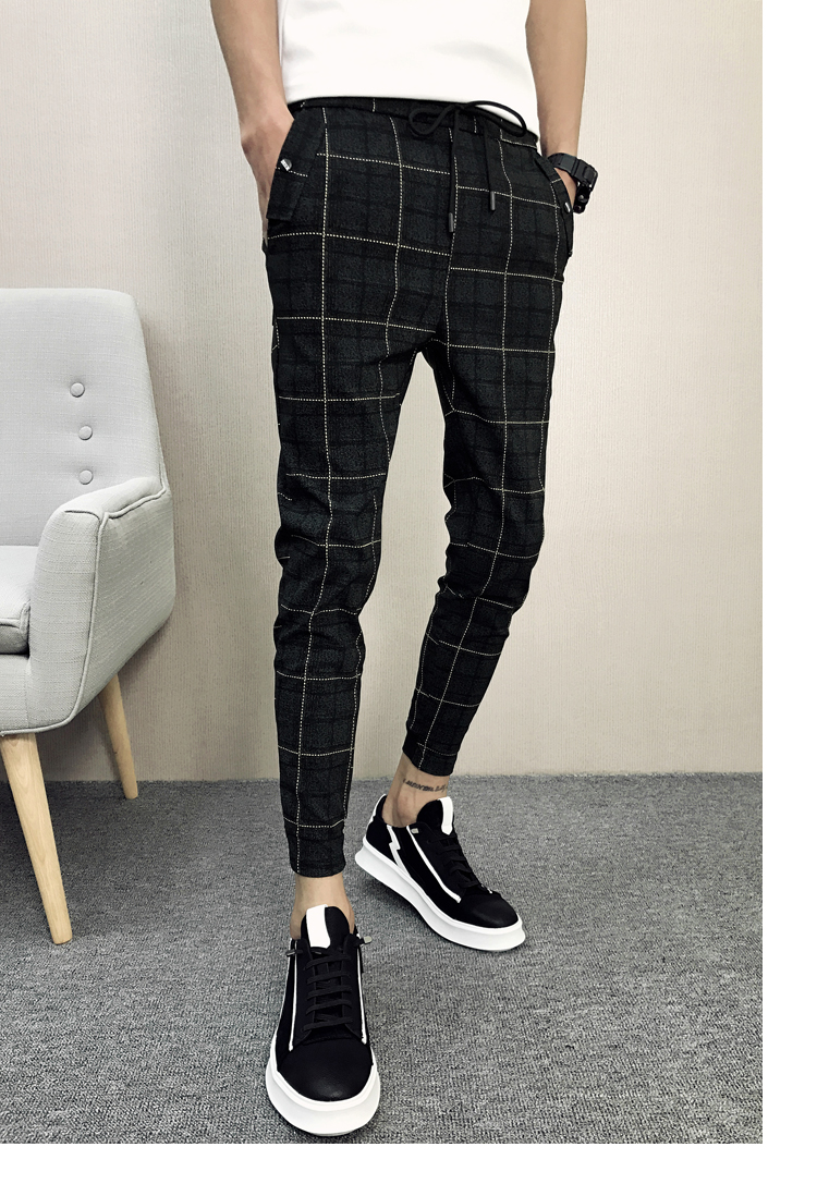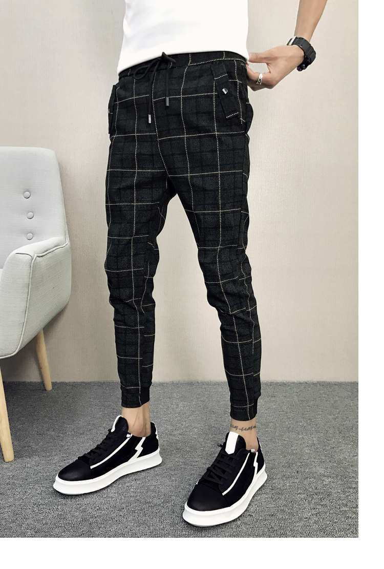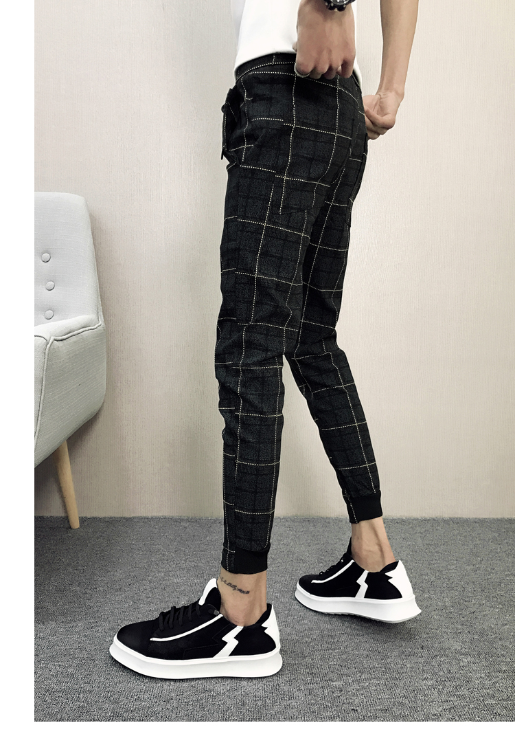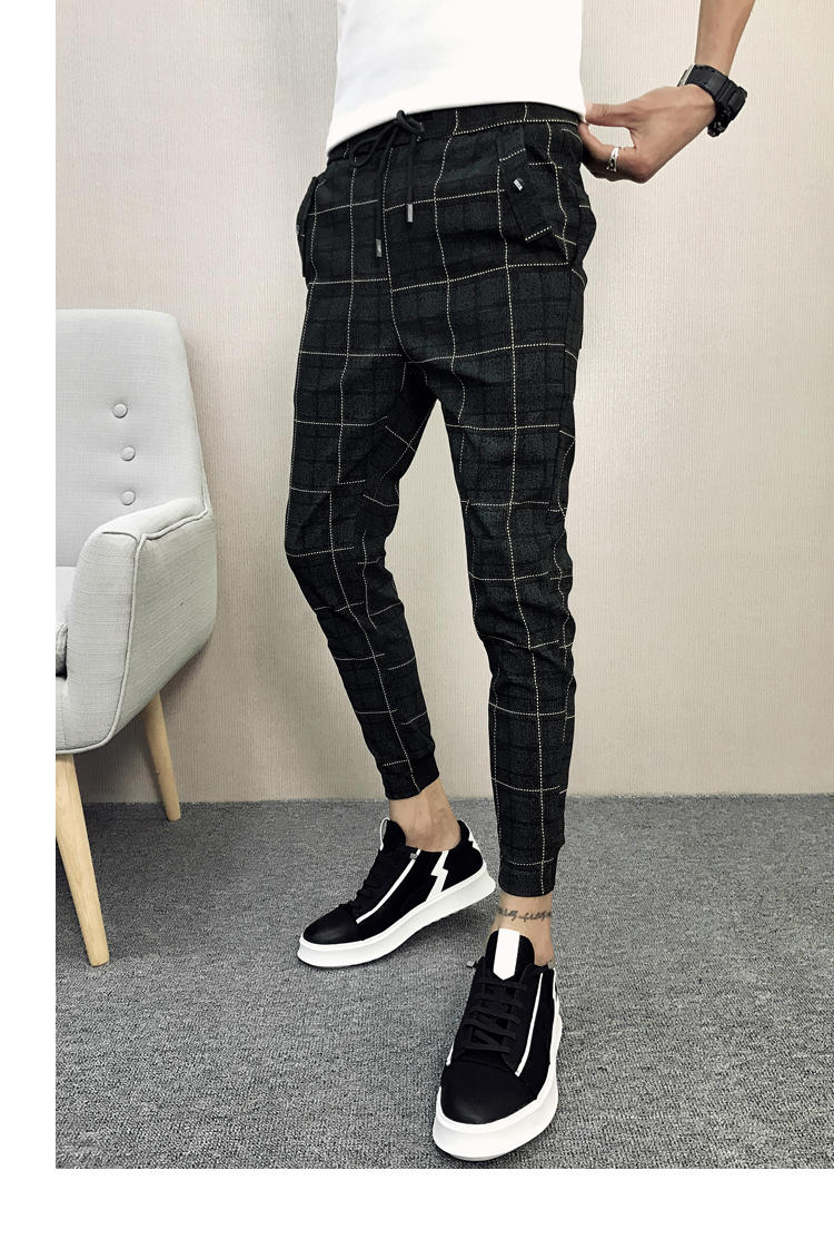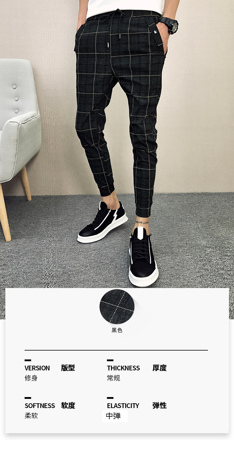 2019夏季社會小伙精神小腳褲休閑8九分褲哈倫褲男韓版潮流八分褲