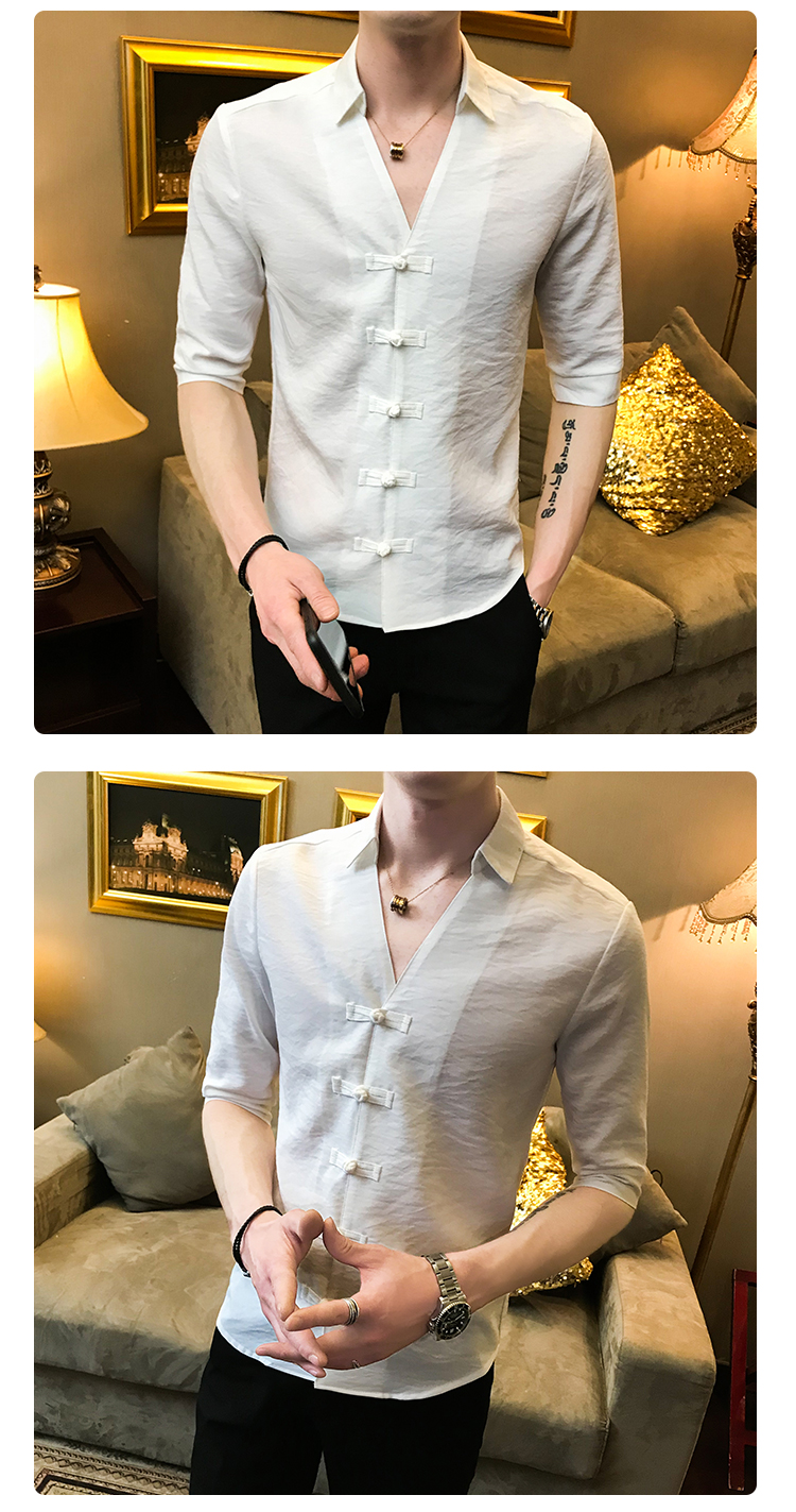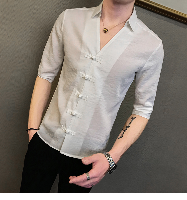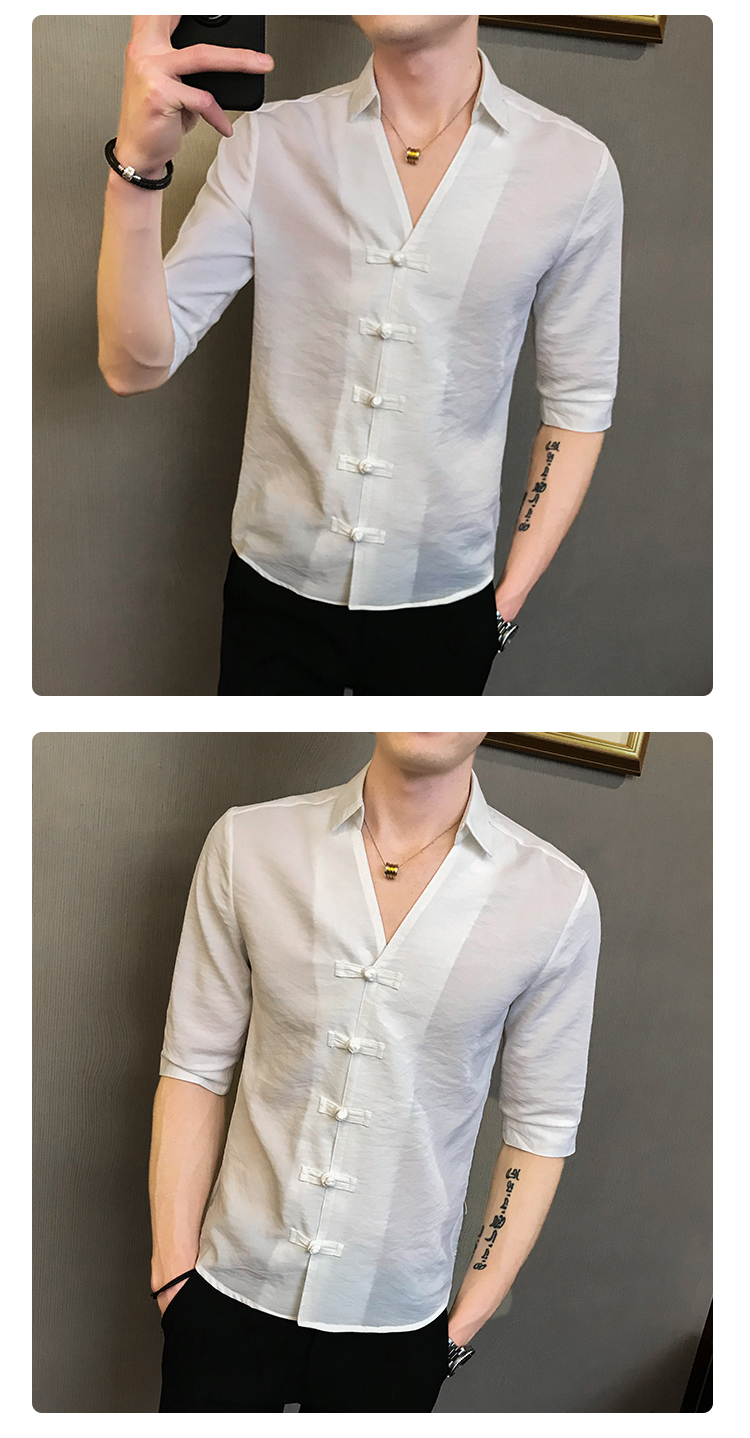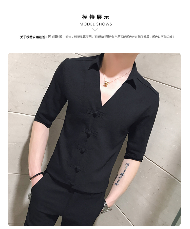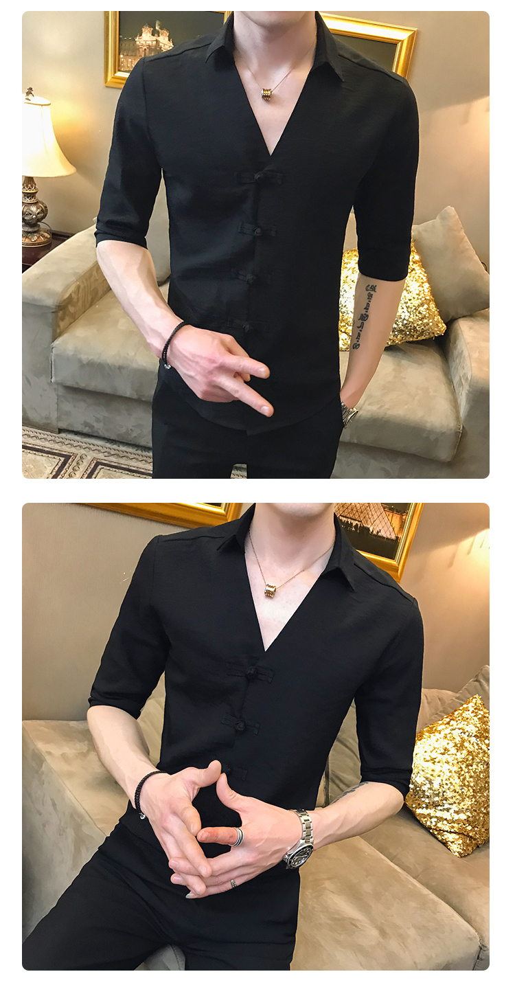 2019夏季新款心機襯衣男士很仙的洋氣韓版修身布扣休閑短袖襯衫男