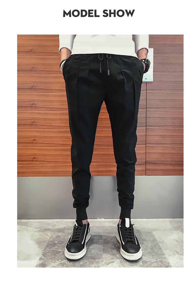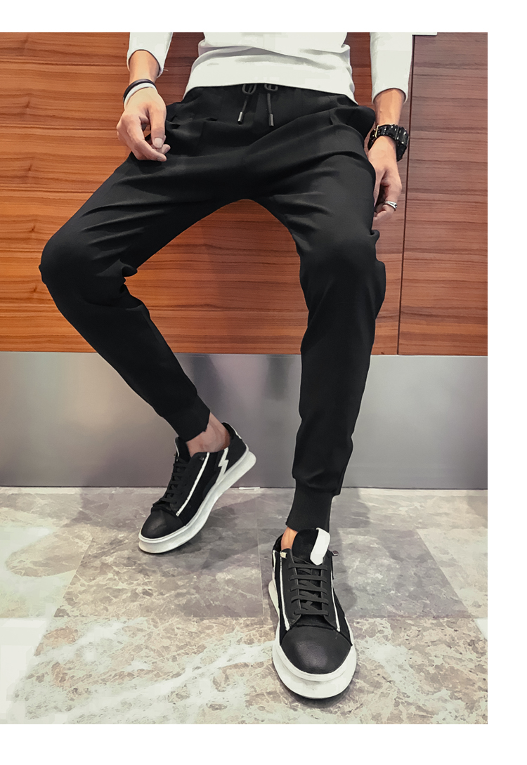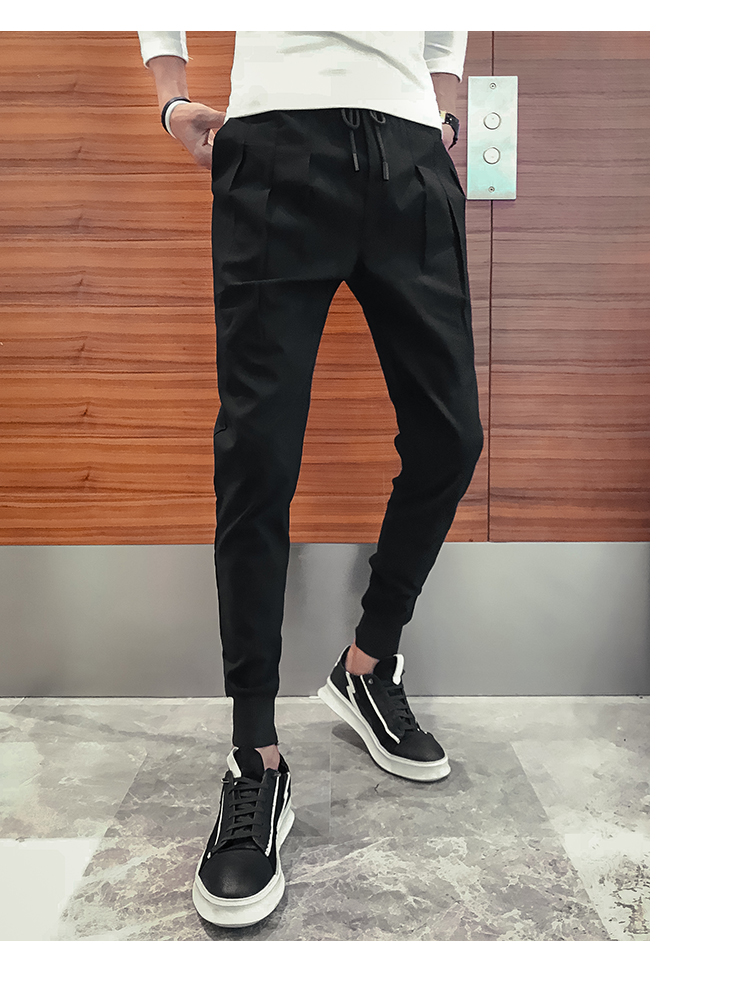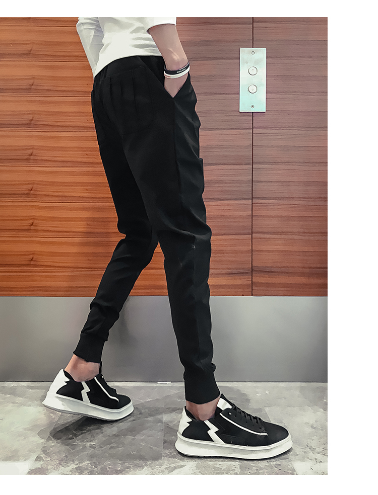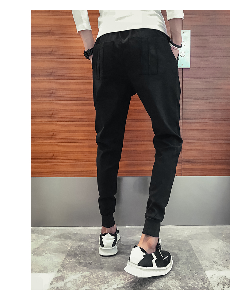 2019春季褲子男潮流束腳褲韓版修身小腳休閑哈倫褲網紅彈力收腿褲
