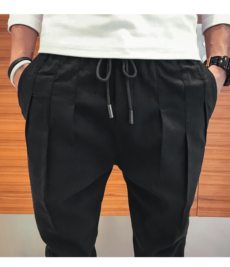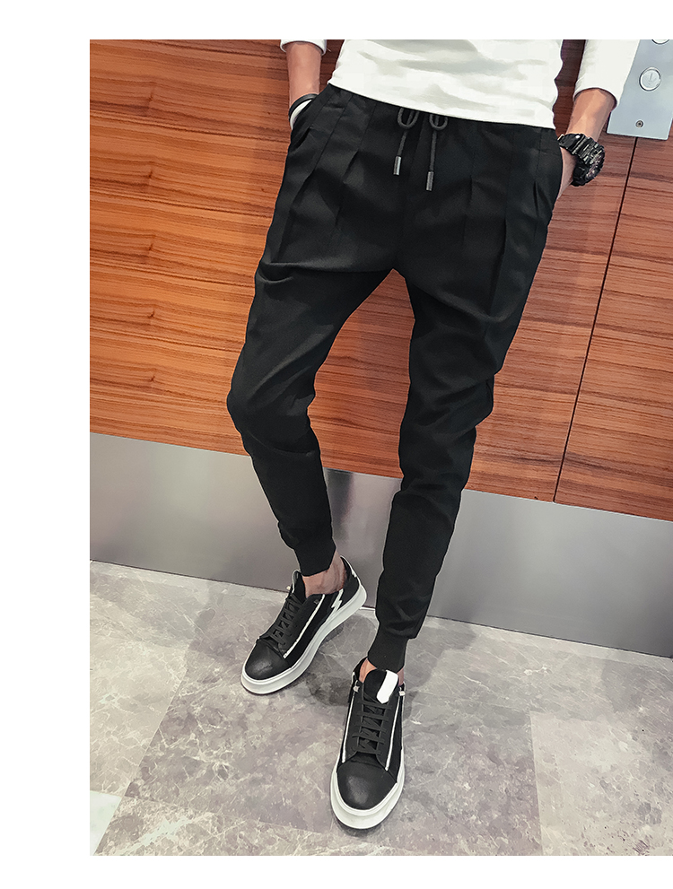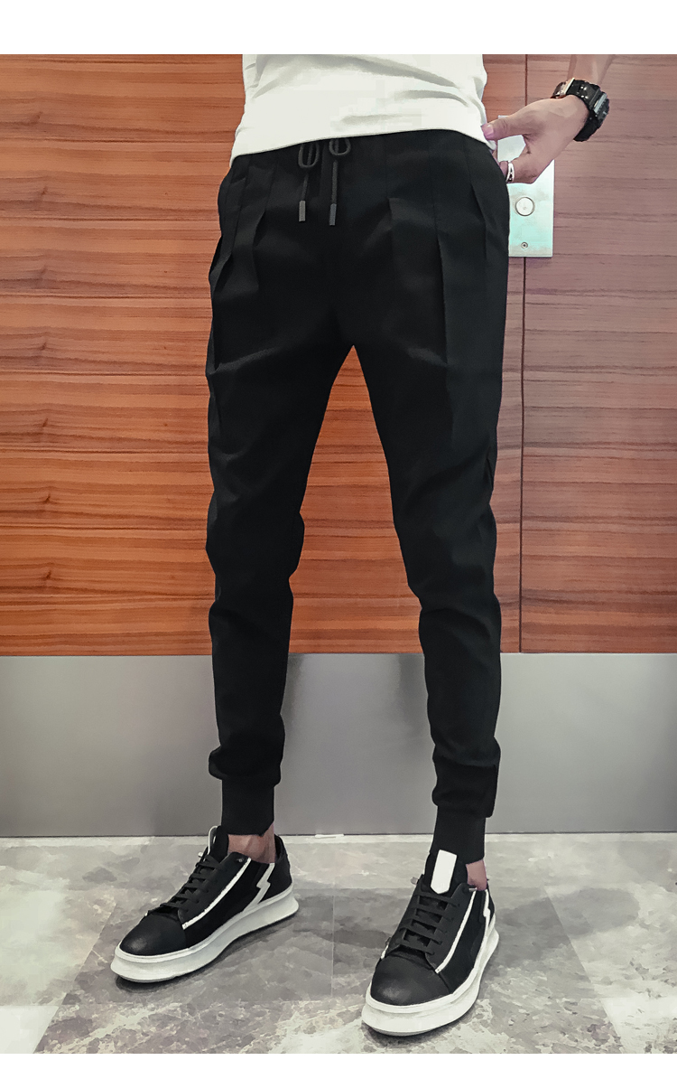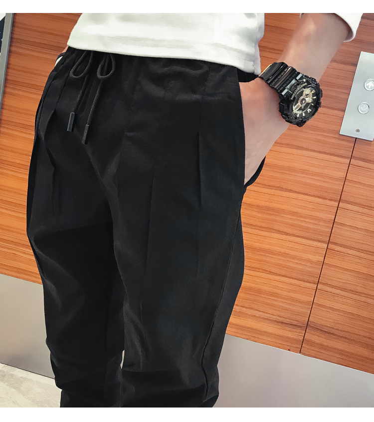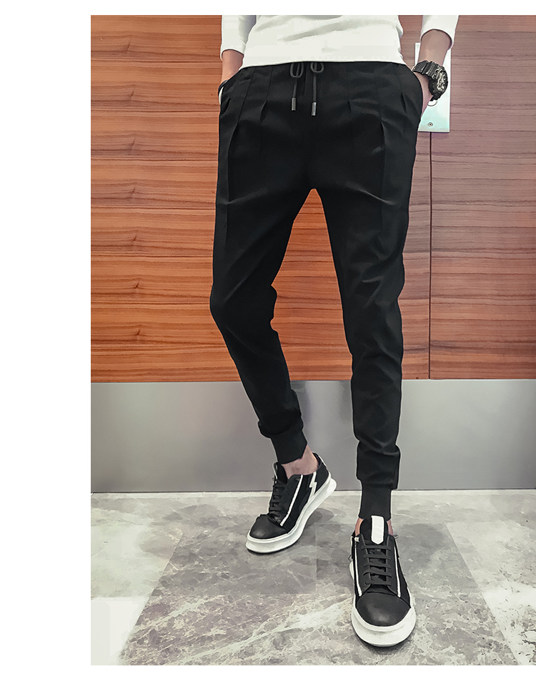 2019春季褲子男潮流束腳褲韓版修身小腳休閑哈倫褲網紅彈力收腿褲