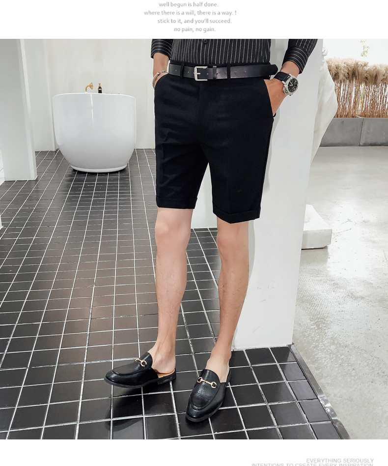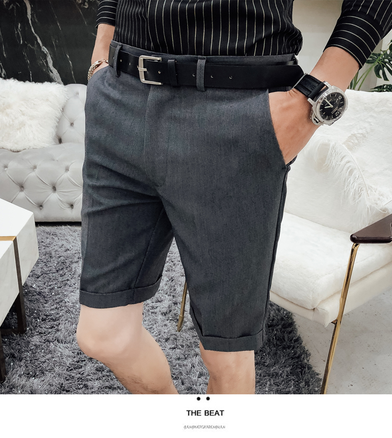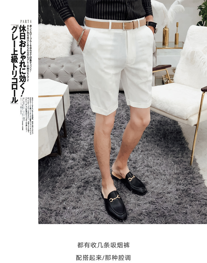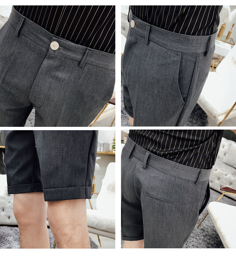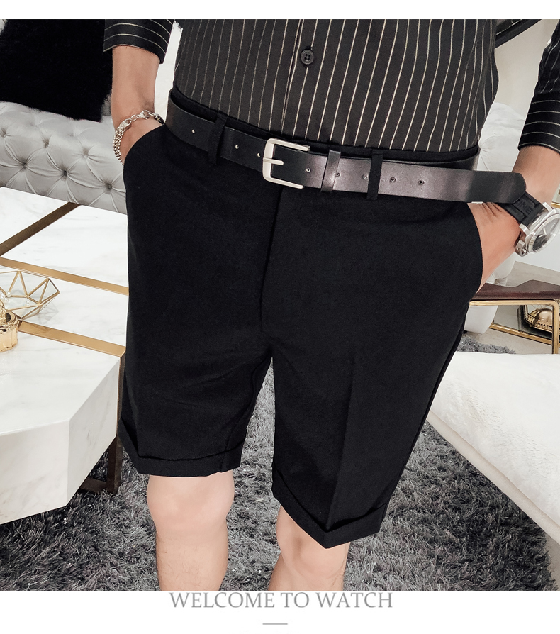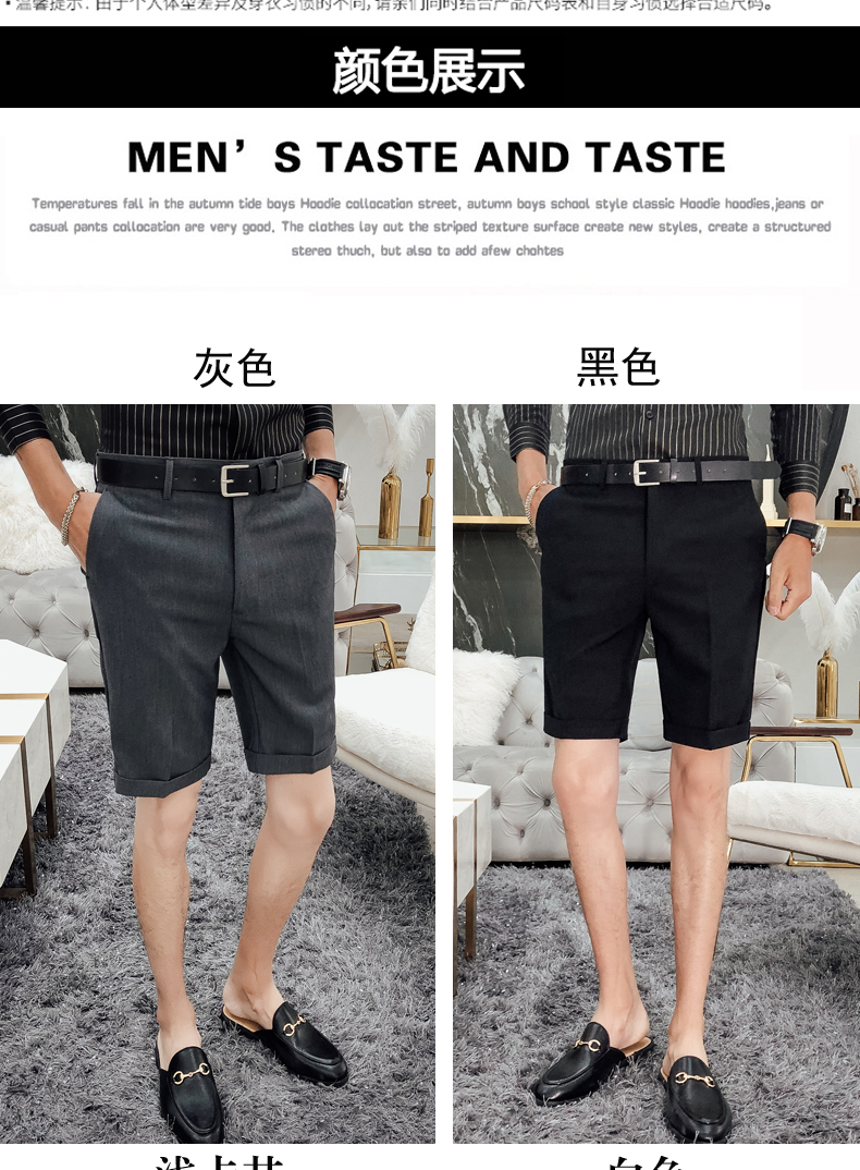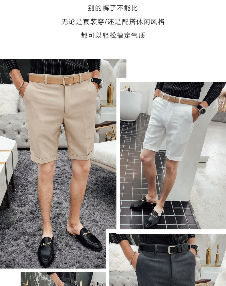 2019夏款新款英倫休閑中褲五分褲潮男修身短褲西裝褲簡約百搭男褲