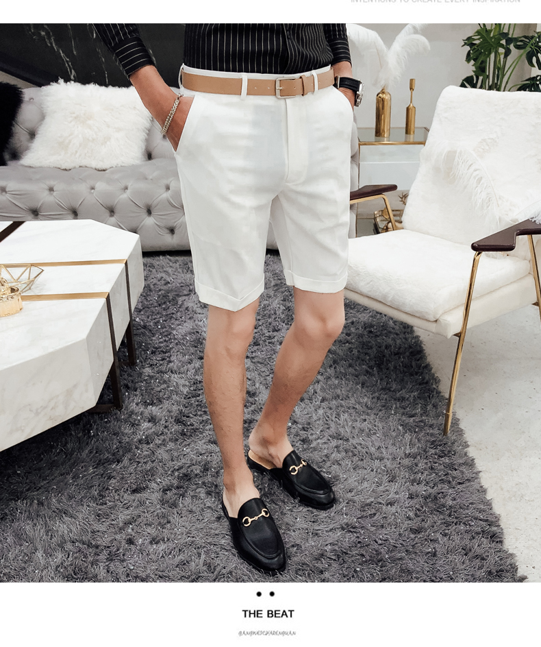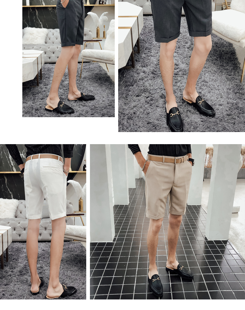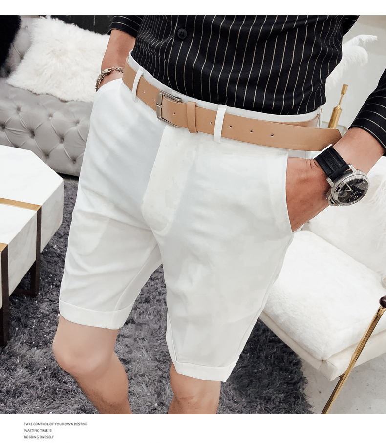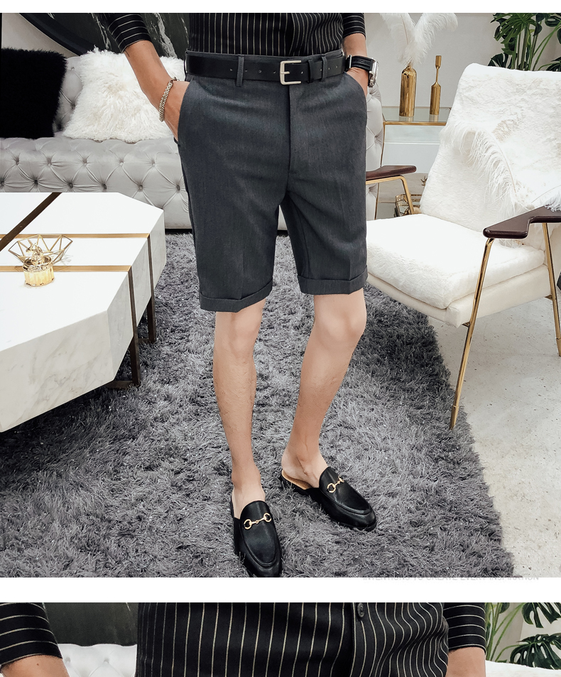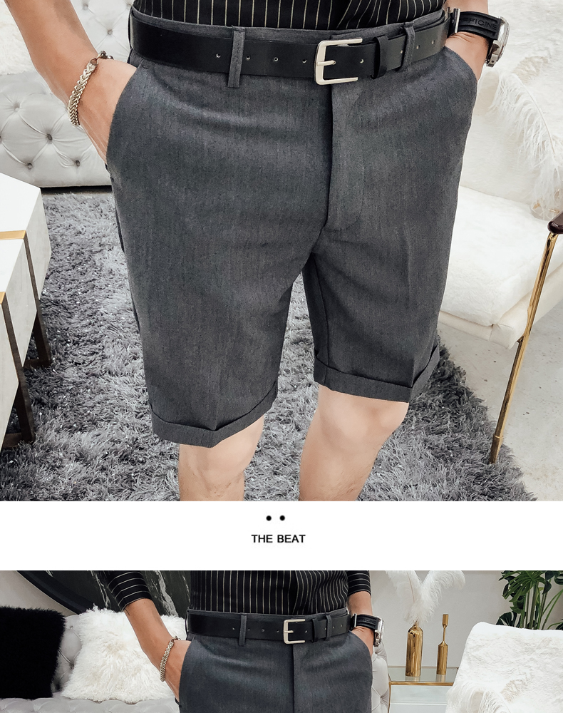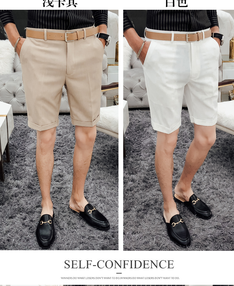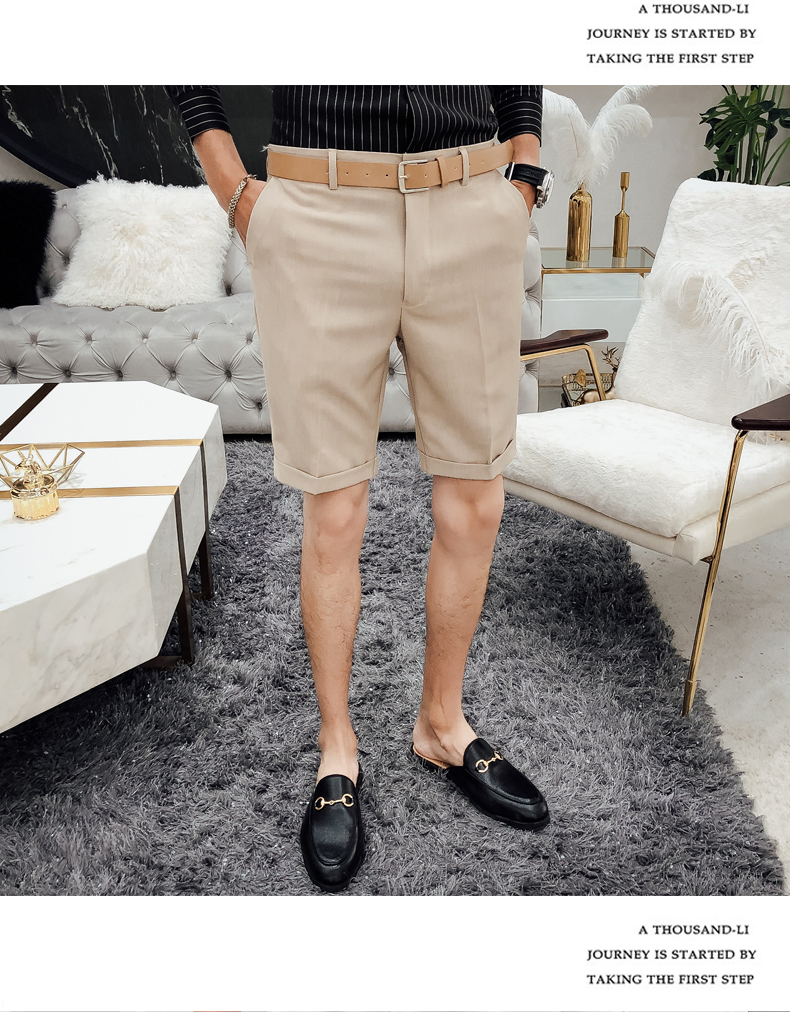 2019夏款新款英倫休閑中褲五分褲潮男修身短褲西裝褲簡約百搭男褲