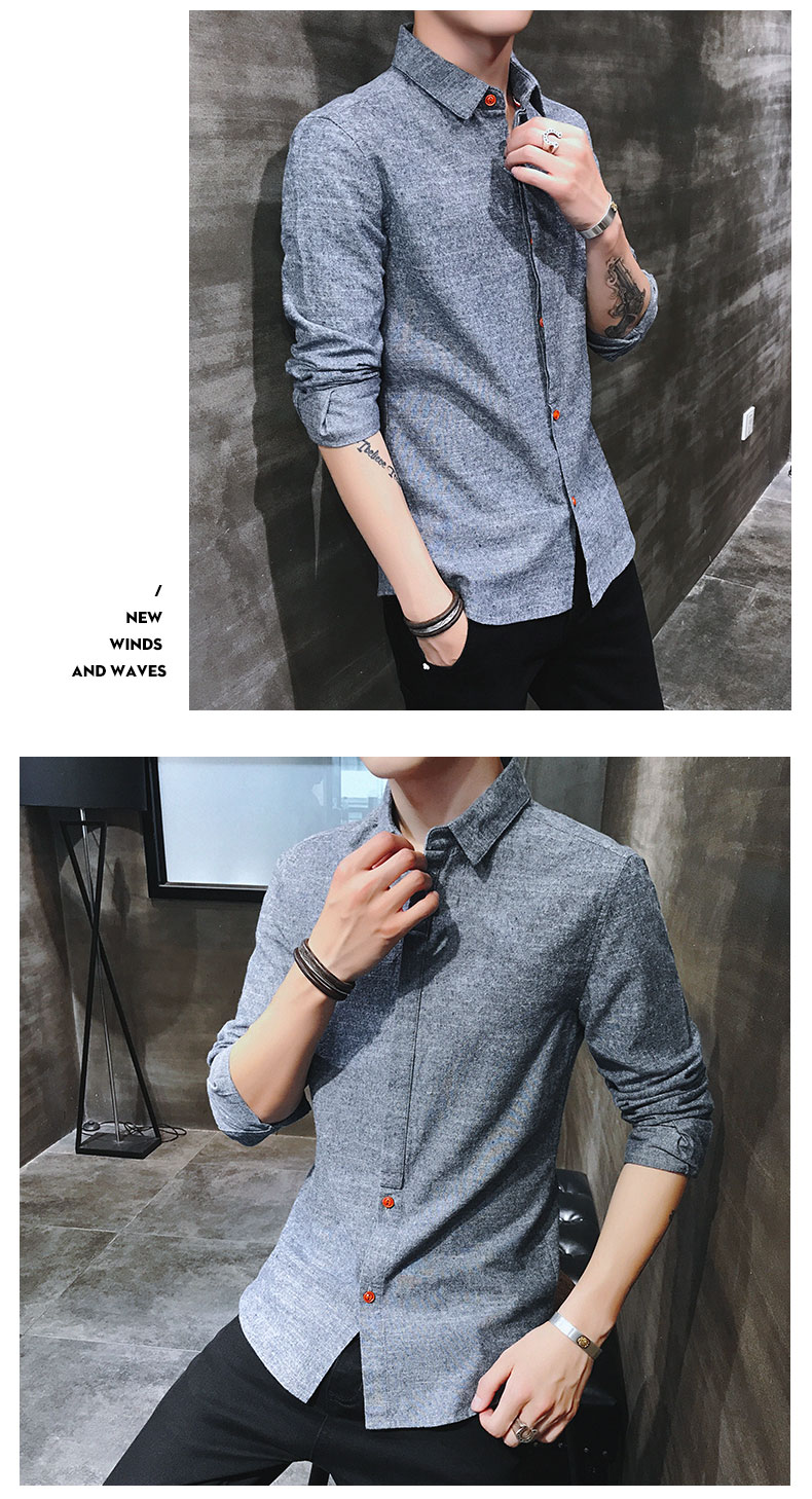 2019春季新款襯衫男長袖韓版潮流網紅襯衣男士修身帥氣休閑寸衫男