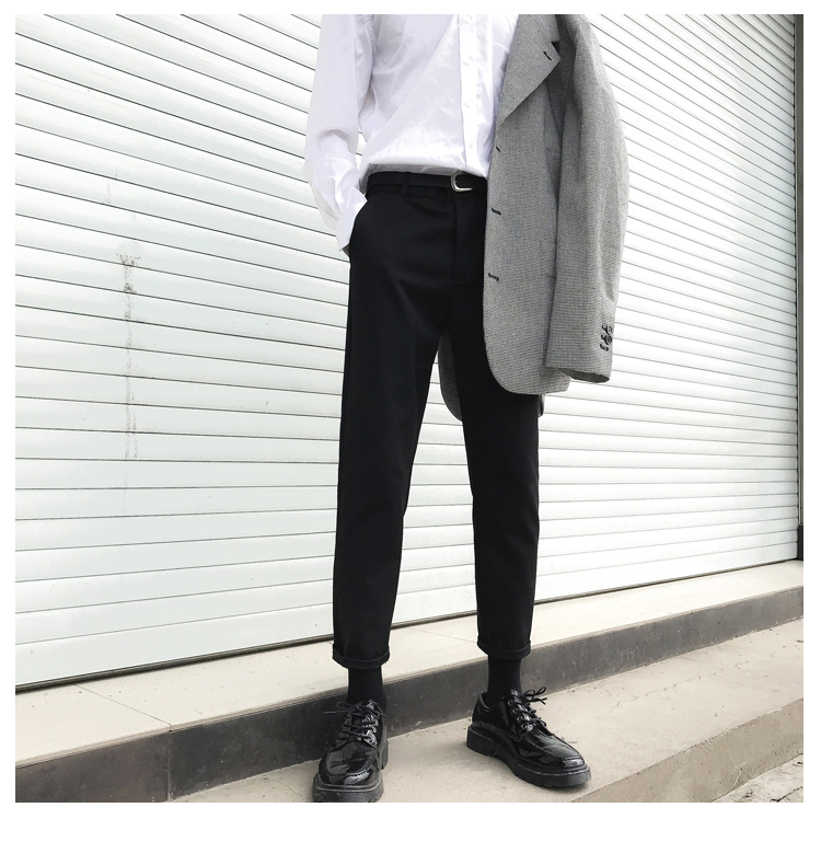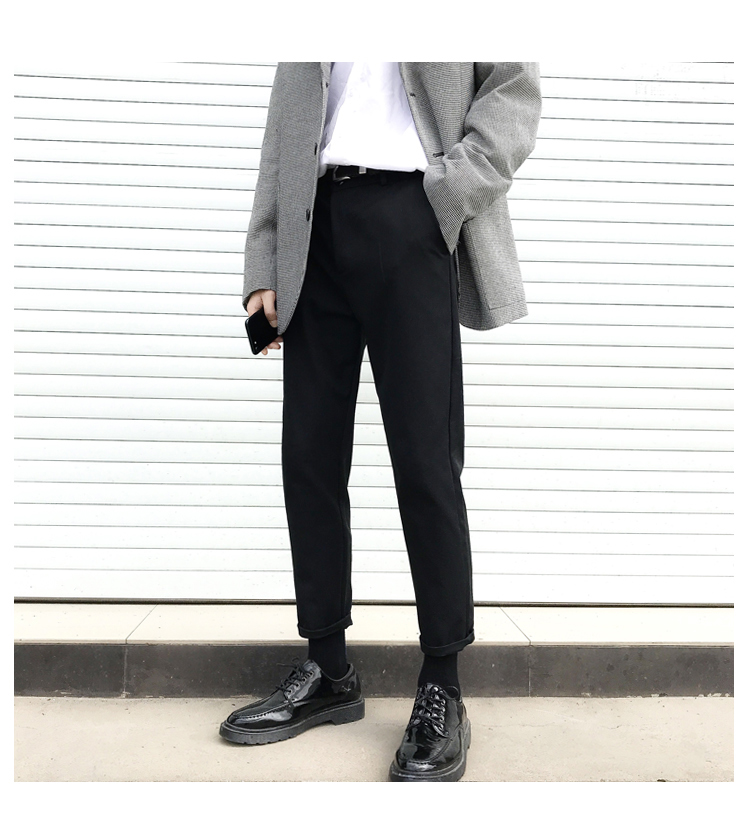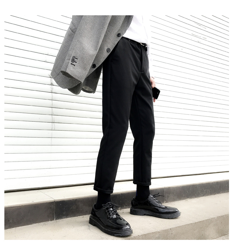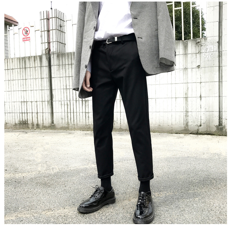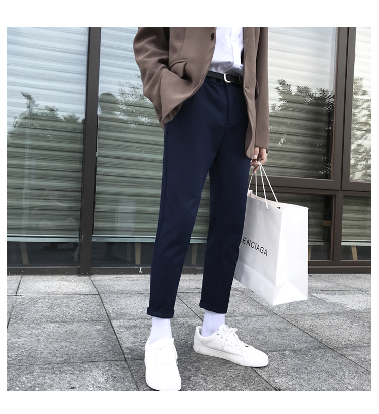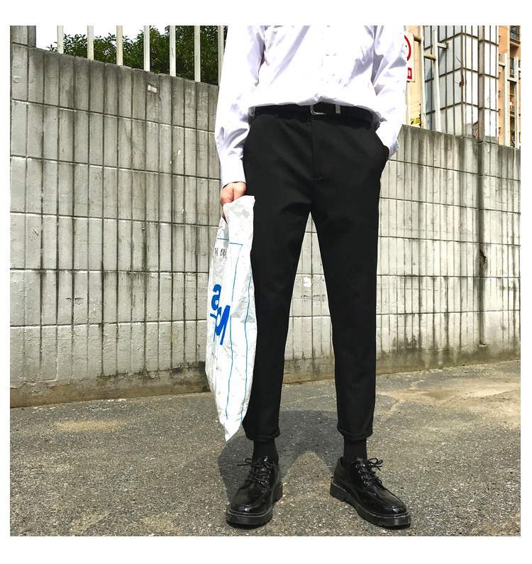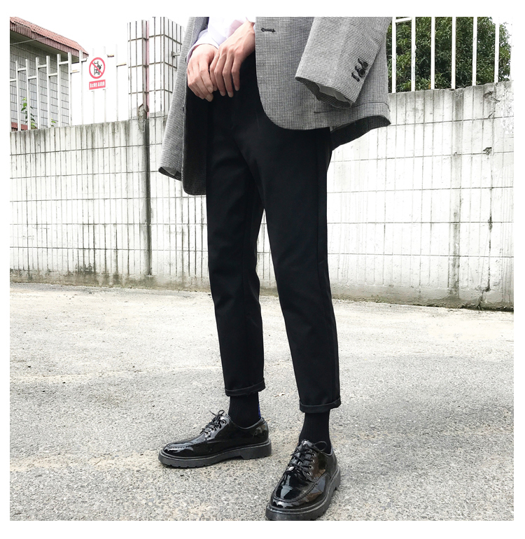2019夏季新款修身休閑褲男直筒西褲九分褲學生帥氣垂感褲子小腳褲