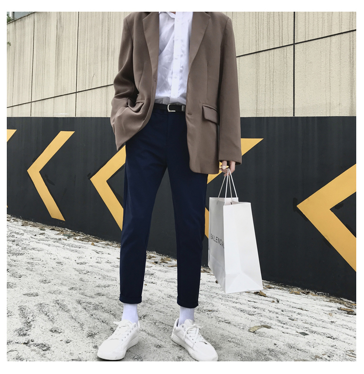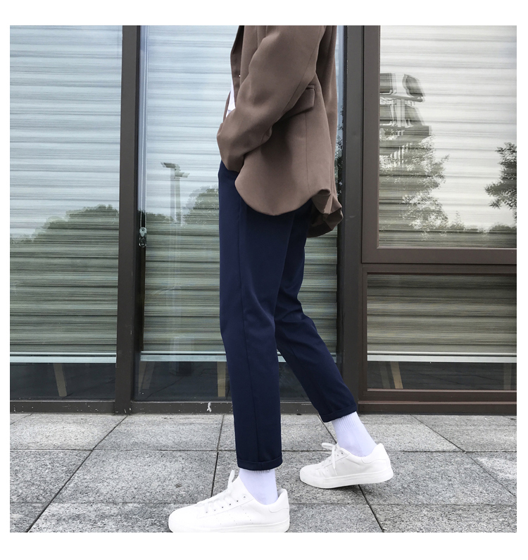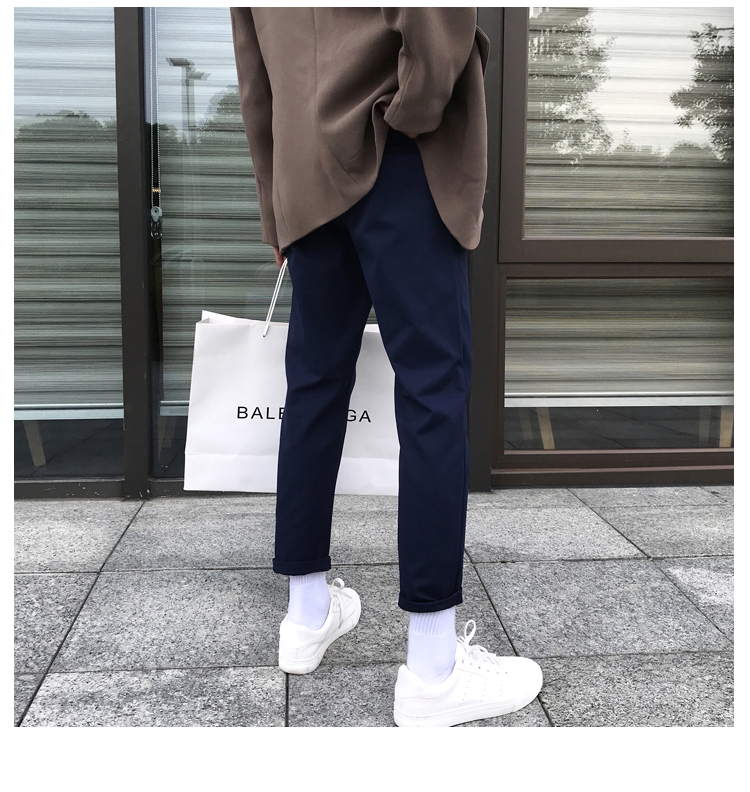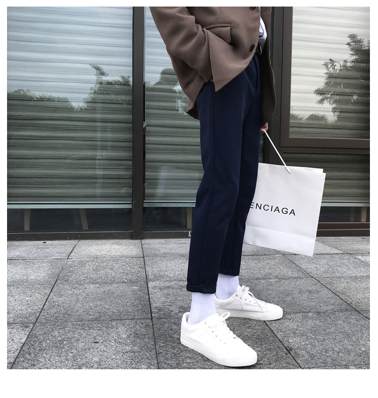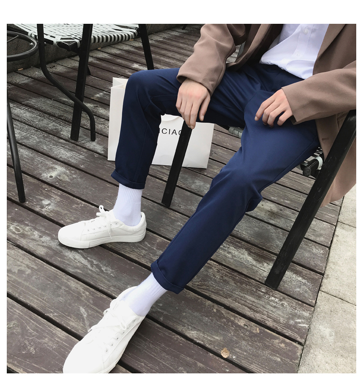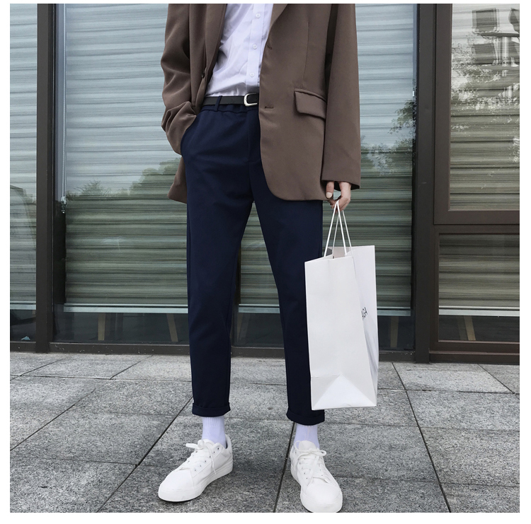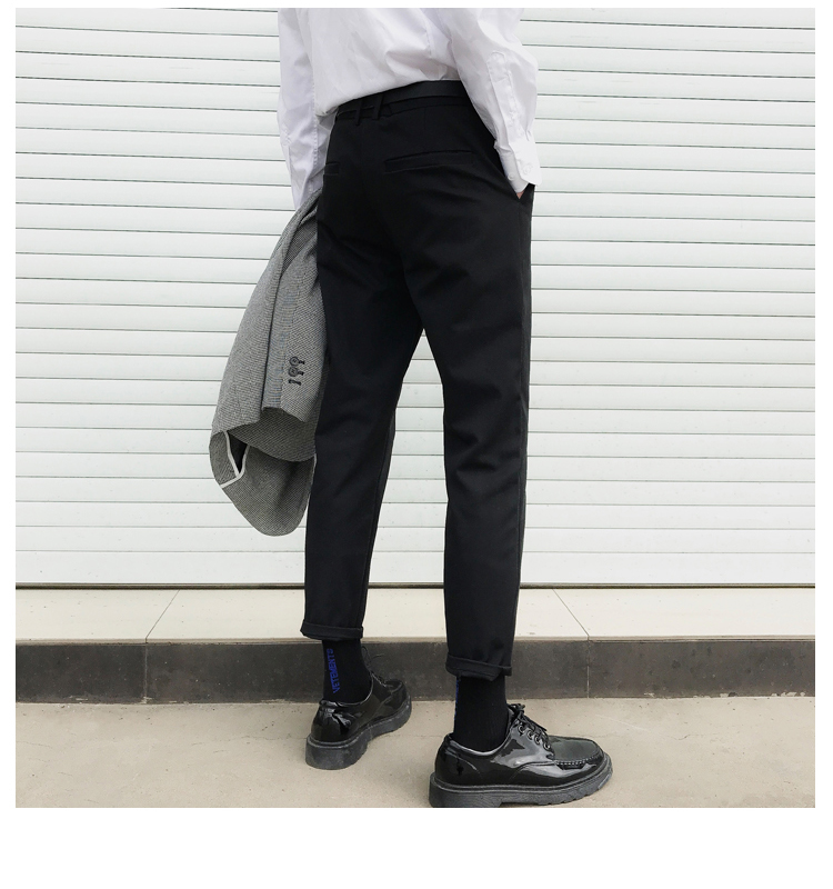 2019夏季新款修身休閑褲男直筒西褲九分褲學生帥氣垂感褲子小腳褲