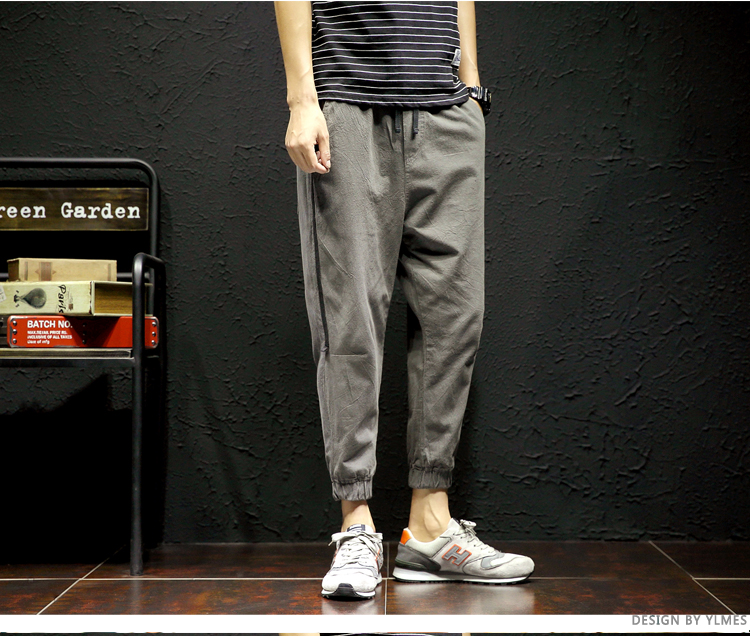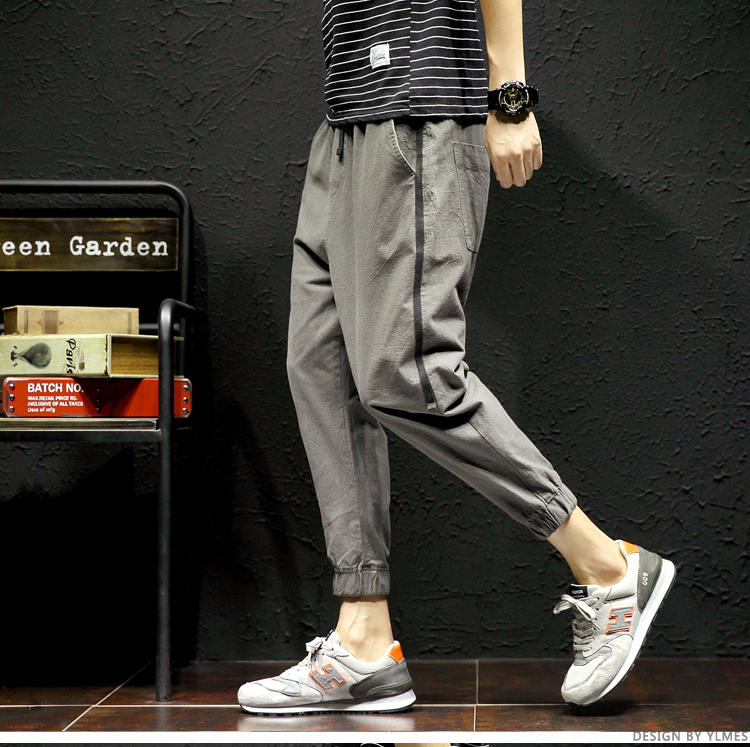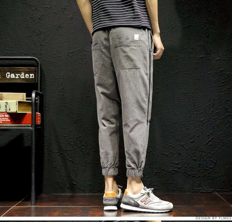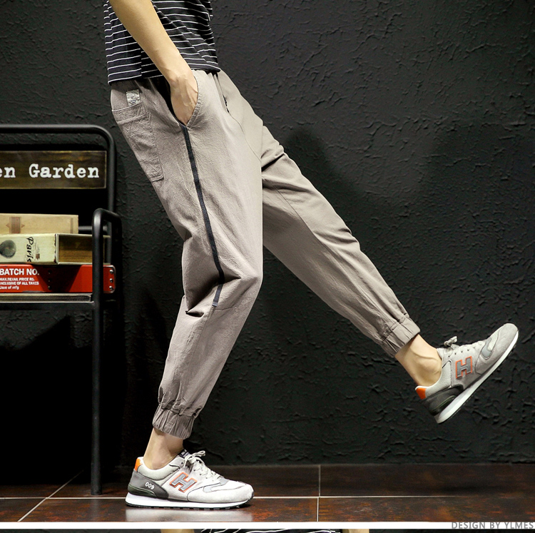 褲子男士韓版潮流2019夏季學生休閑工裝八分褲寬松九分束腳褲小腳