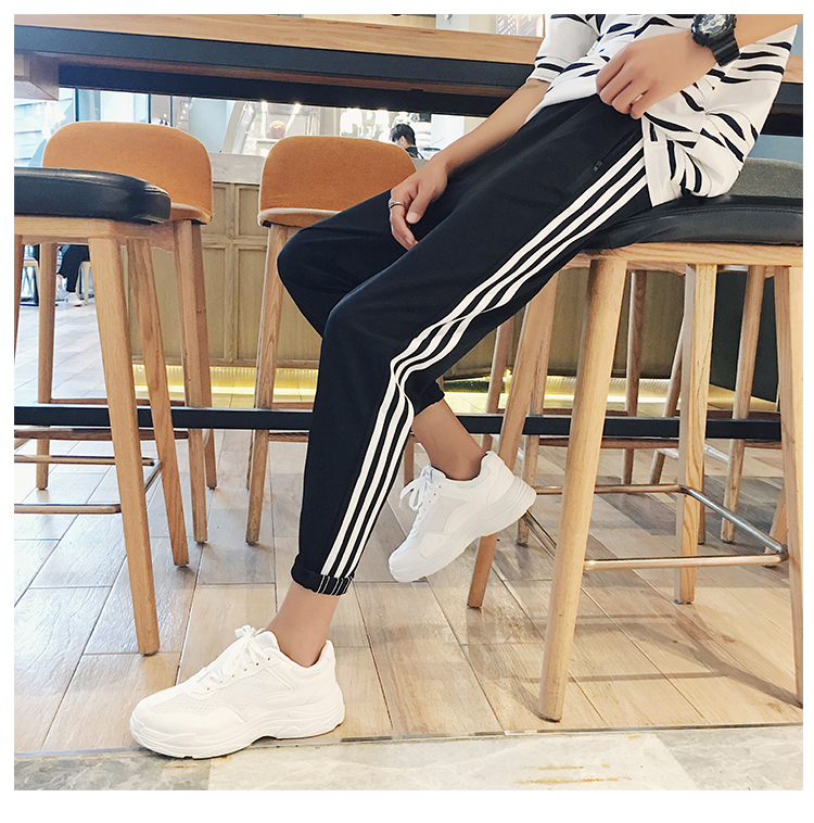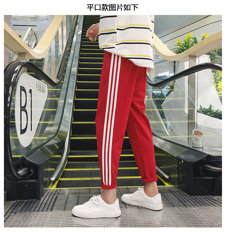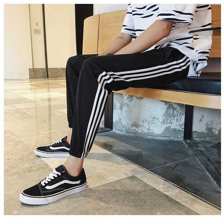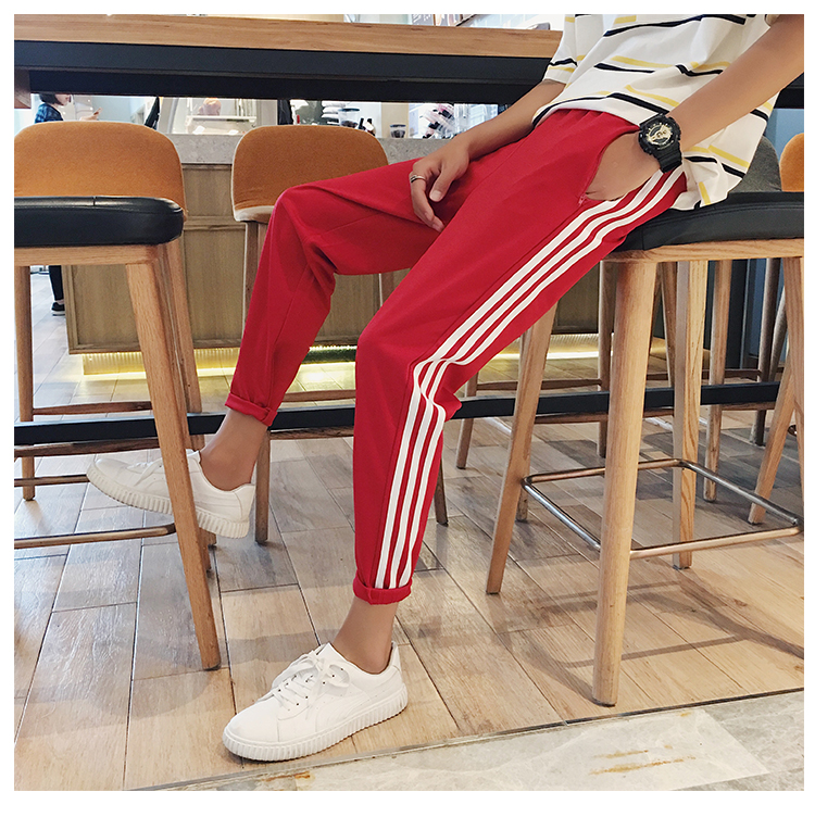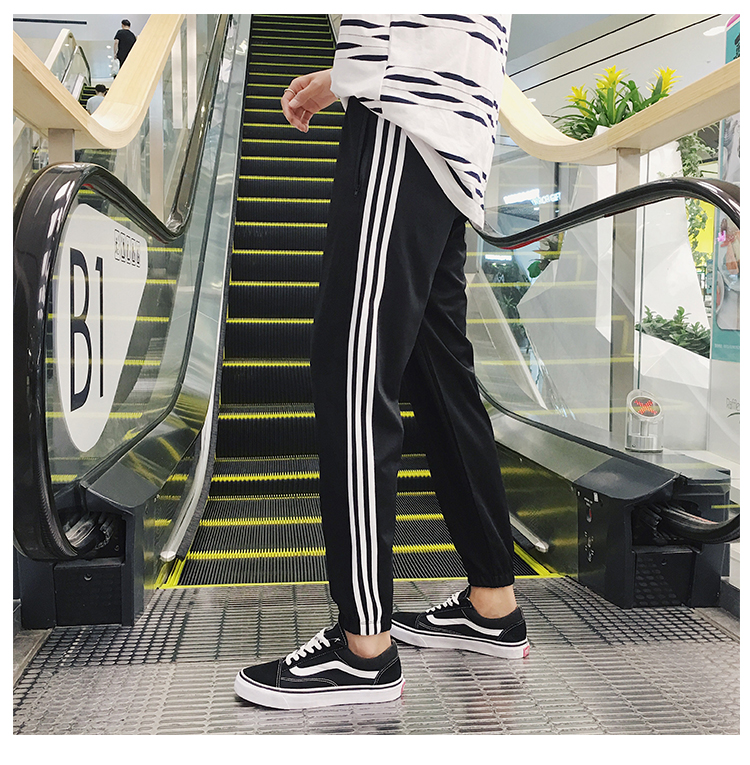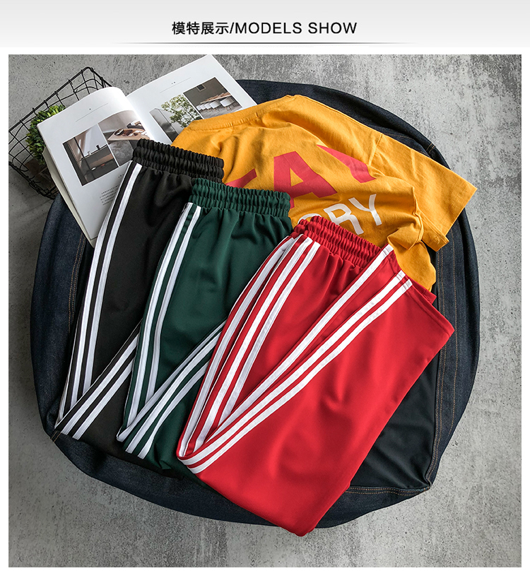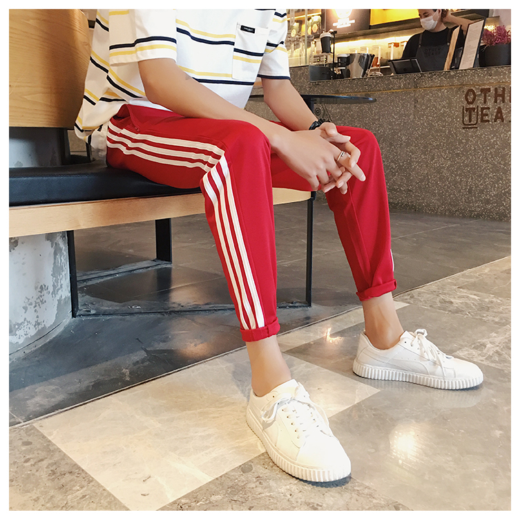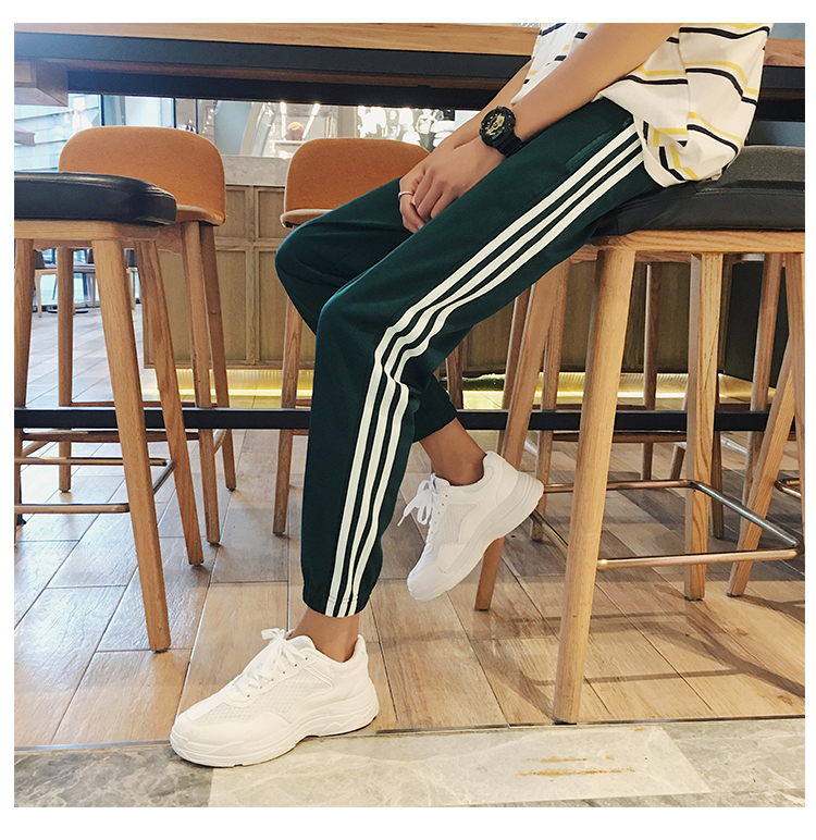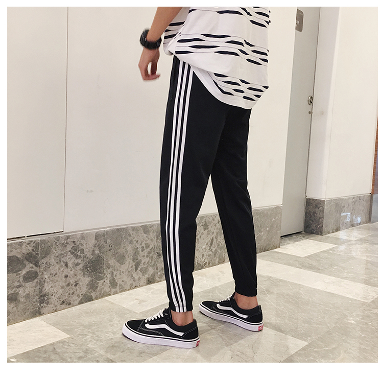 2019夏季九分褲褲子男韓版潮流運動九分褲潮三杠束腳褲男生情侶褲