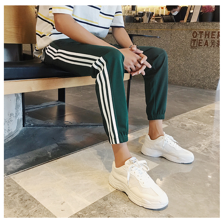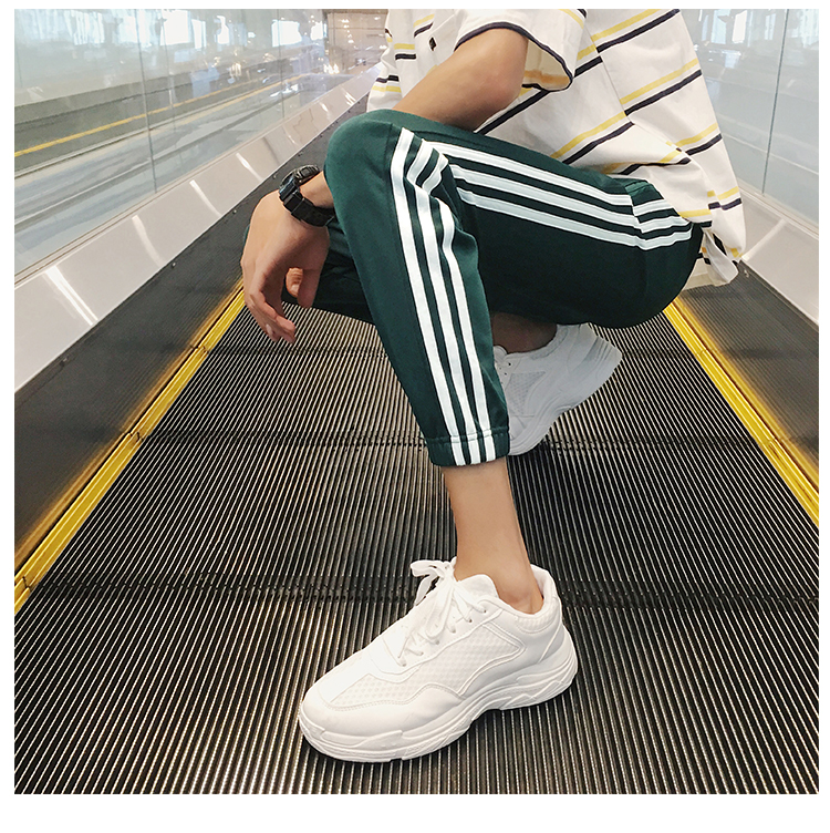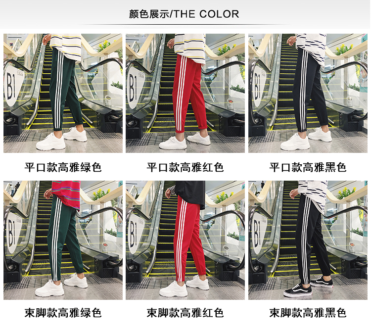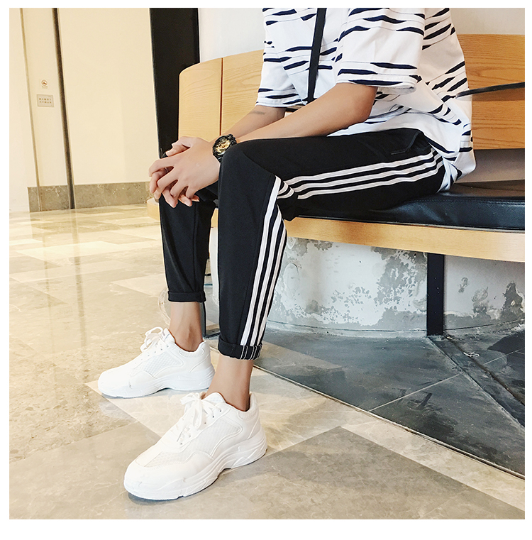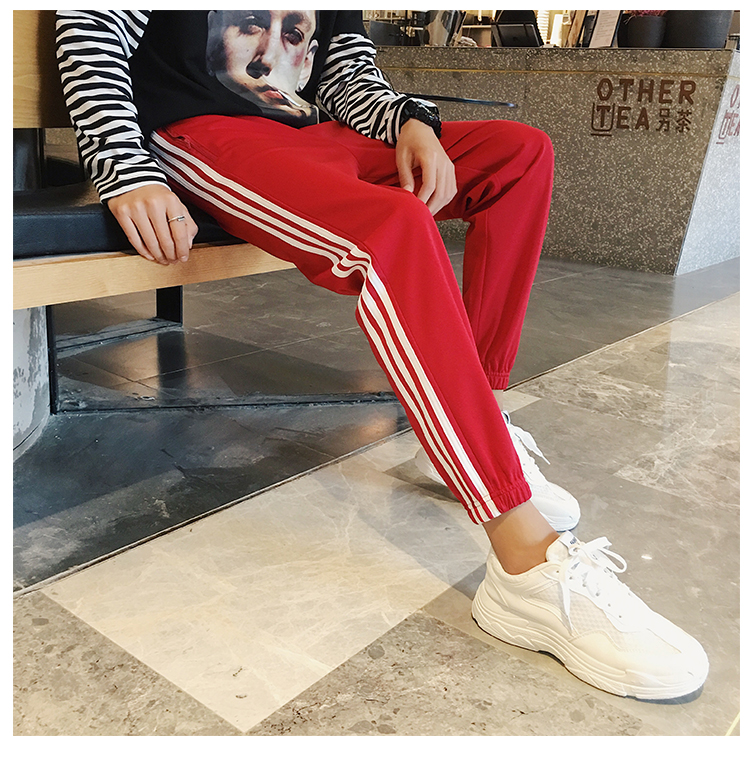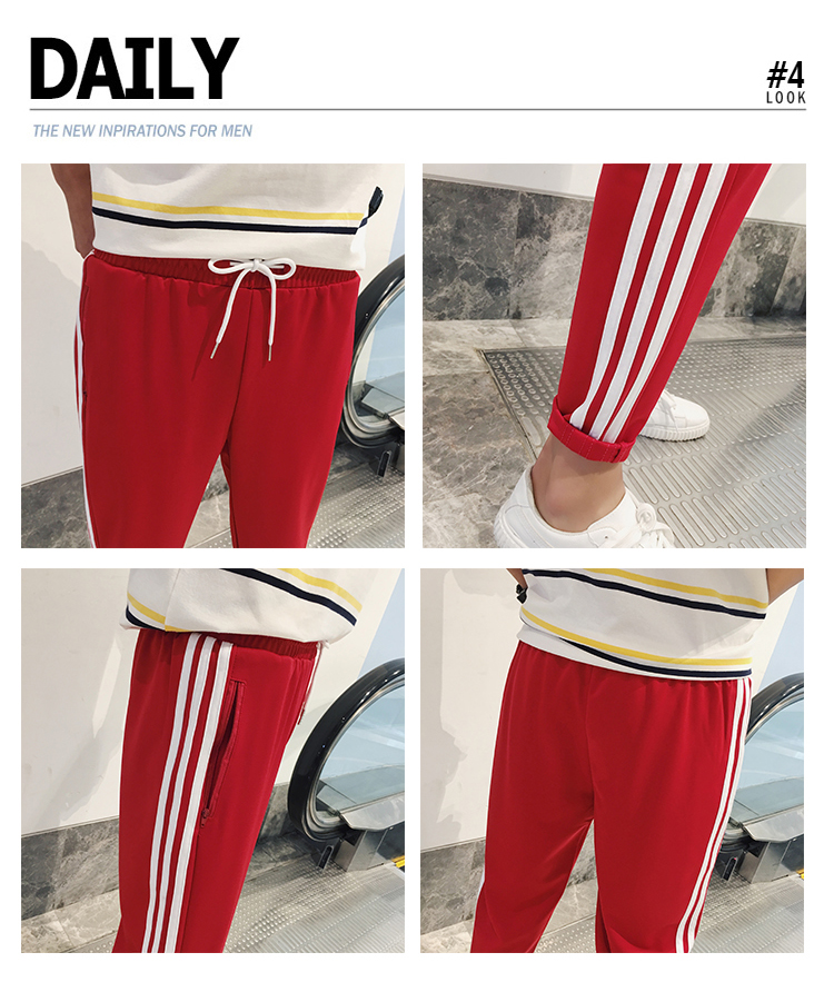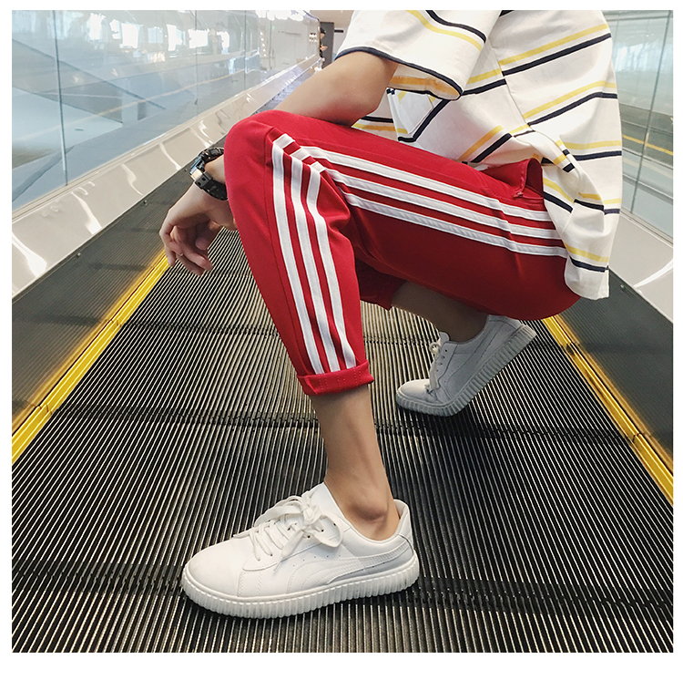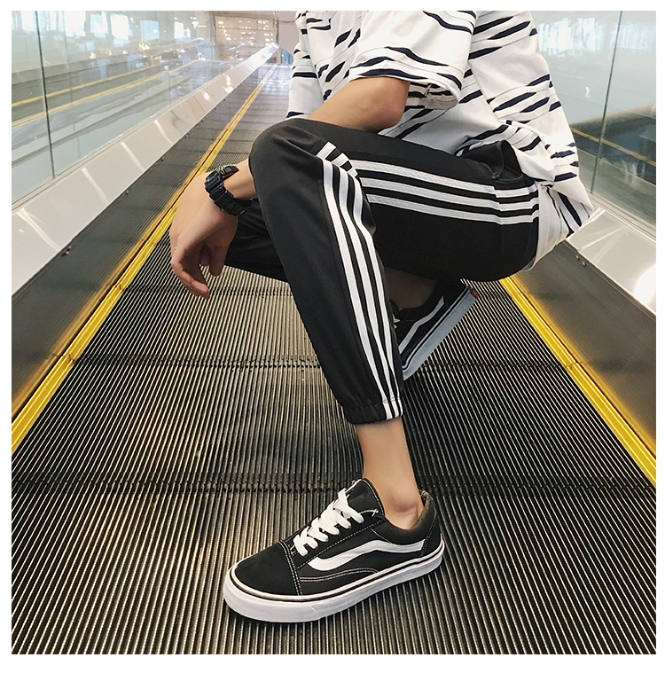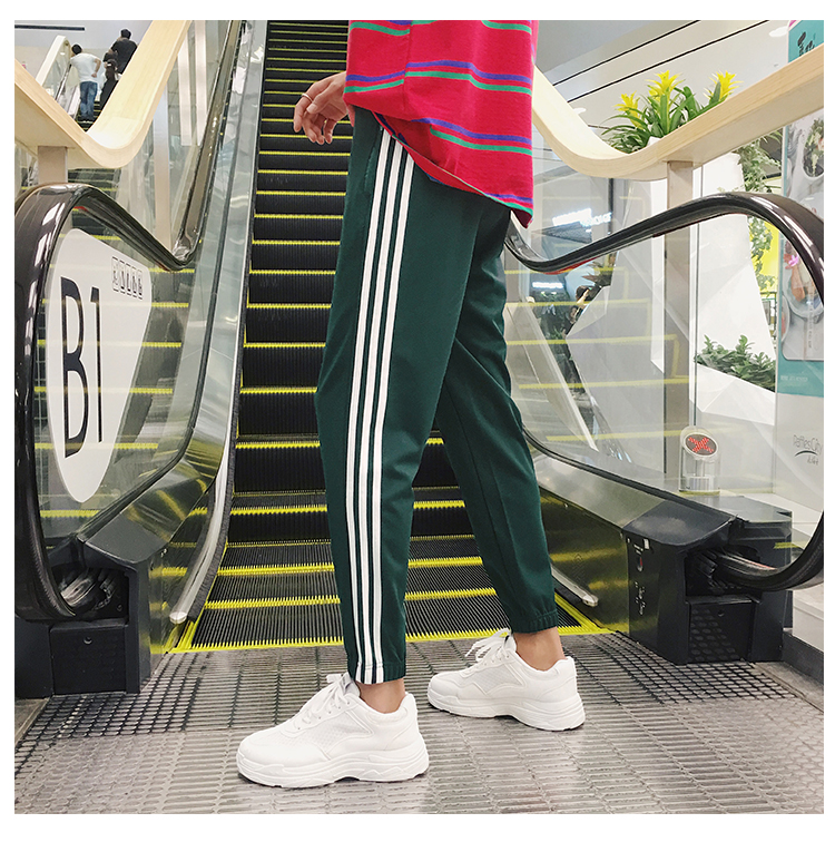 2019夏季九分褲褲子男韓版潮流運動九分褲潮三杠束腳褲男生情侶褲