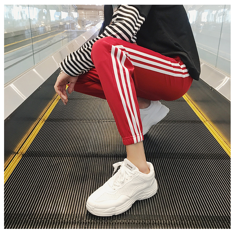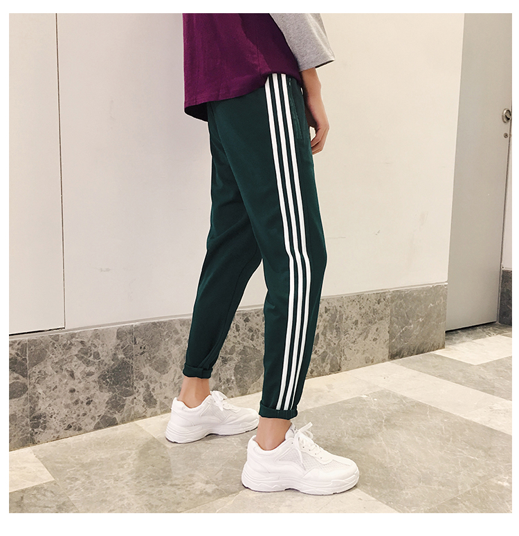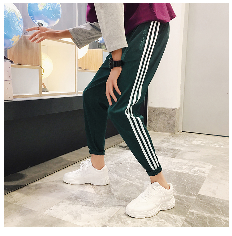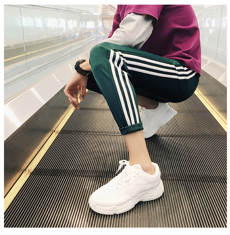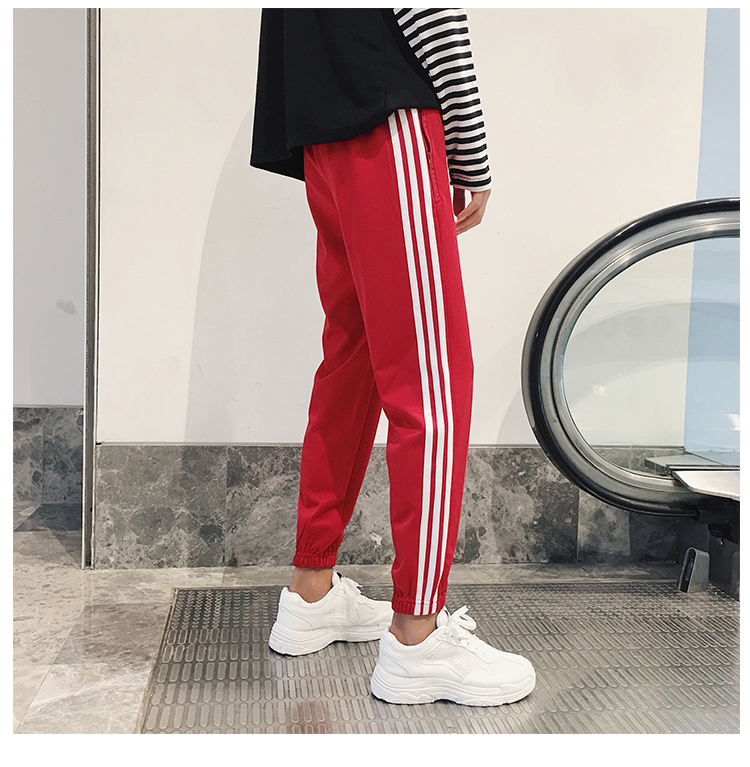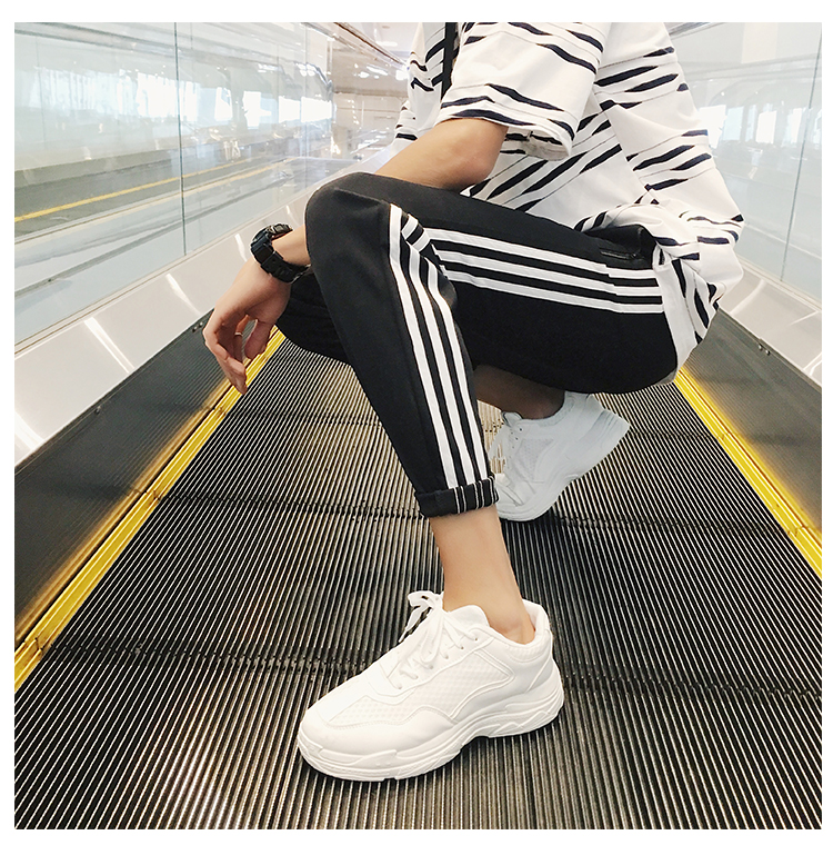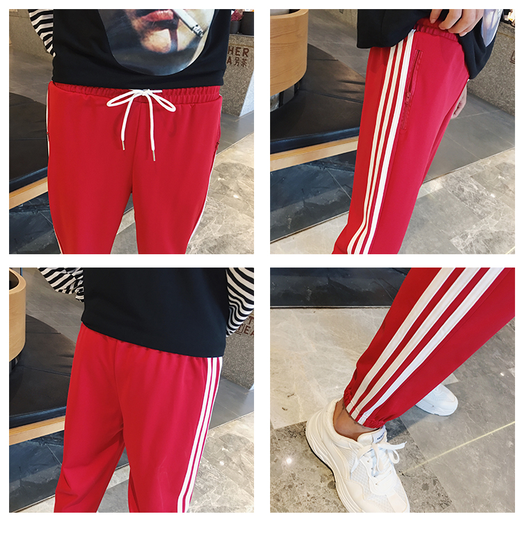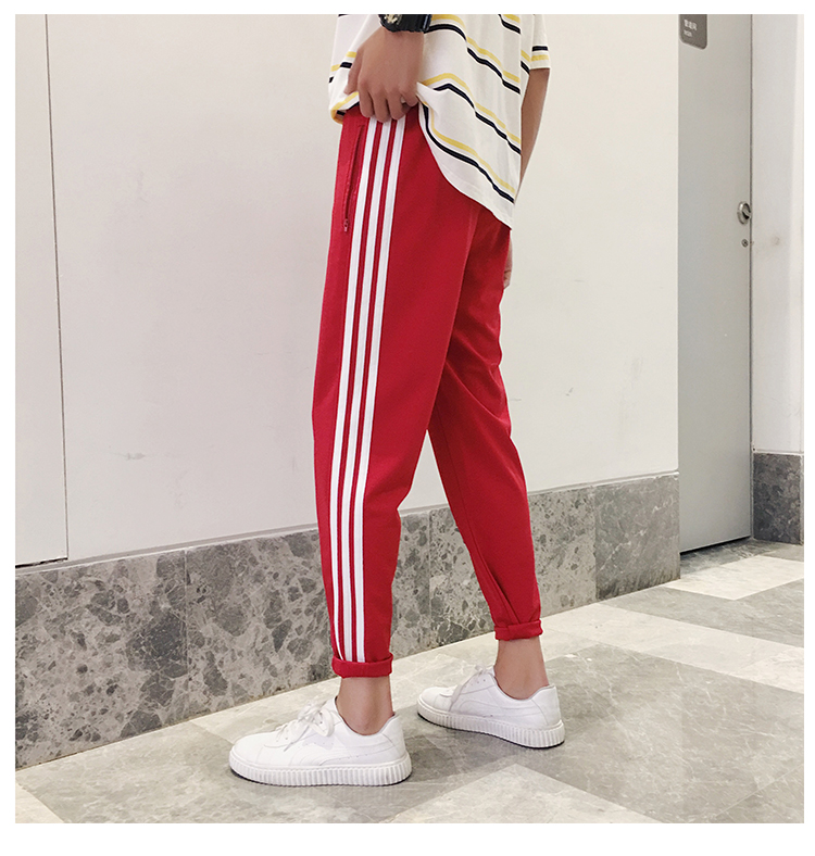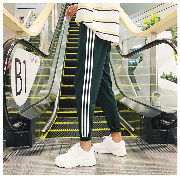 2019夏季九分褲褲子男韓版潮流運動九分褲潮三杠束腳褲男生情侶褲
