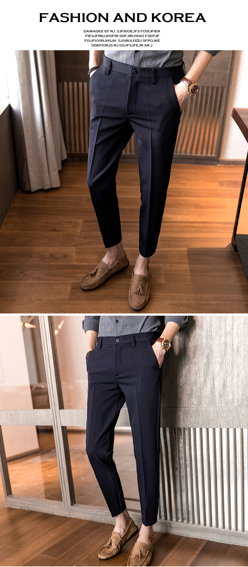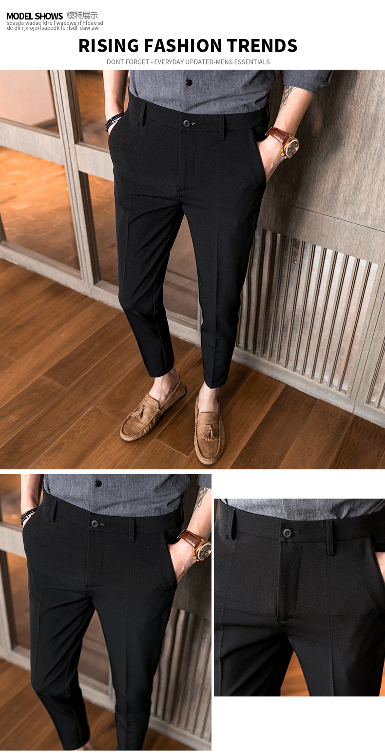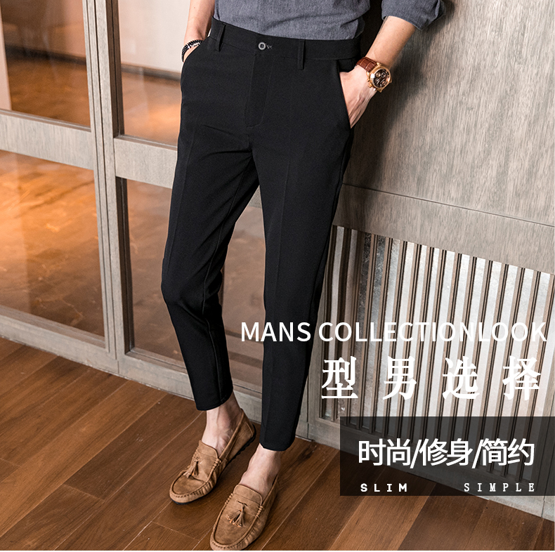 2019夏季男士西裝褲修身9分褲韓版彈力修閑褲小腳潮流小西褲男褲