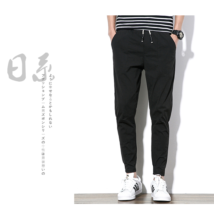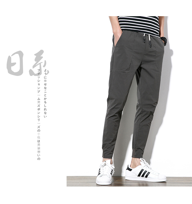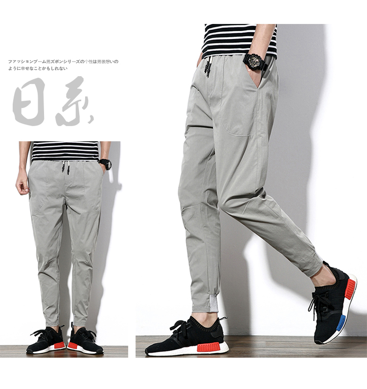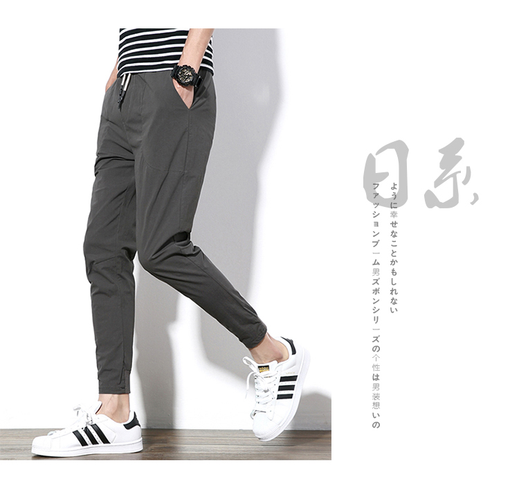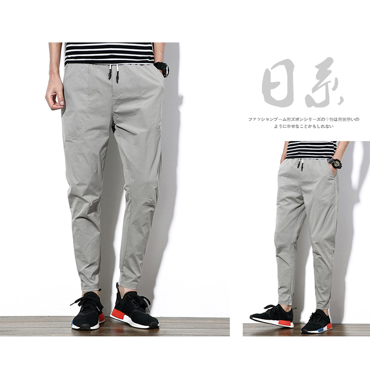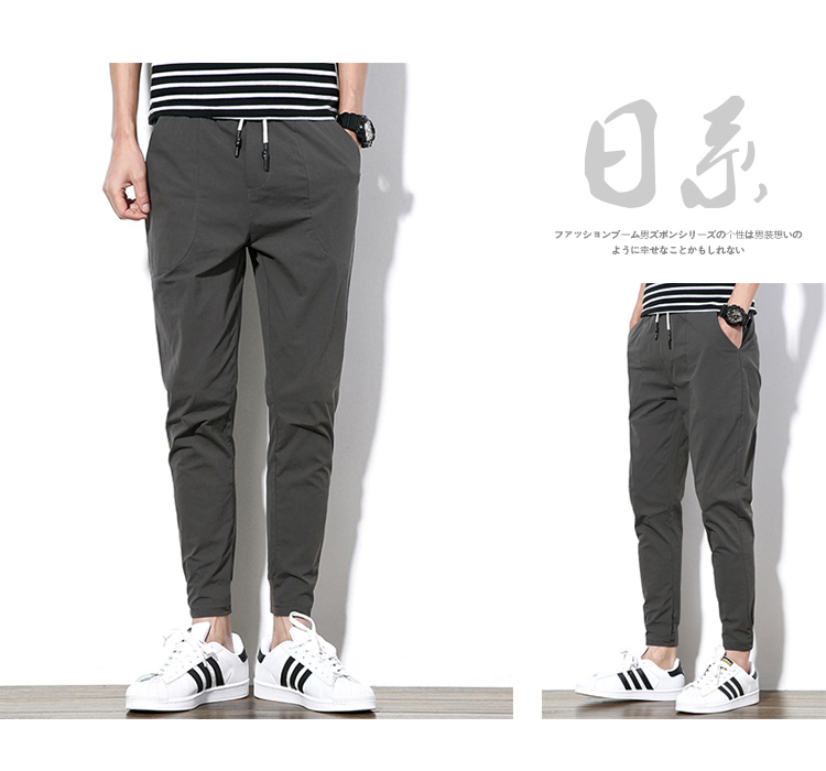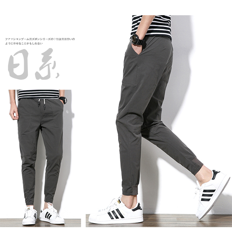 2019夏季薄款冰絲男士九分褲韓版潮流修閑褲百搭束腳收腿小腳褲
