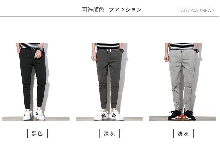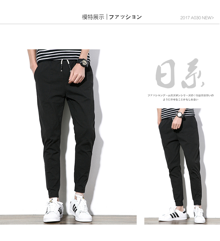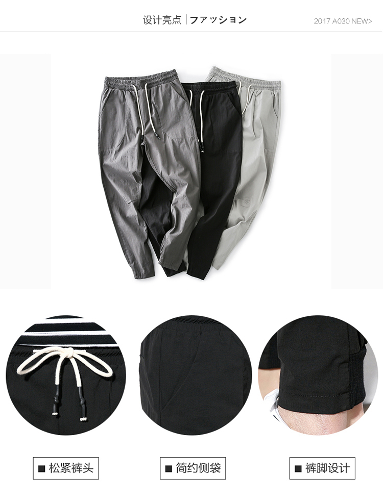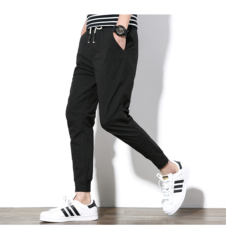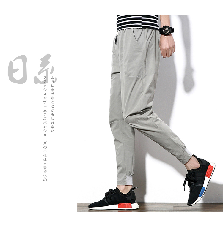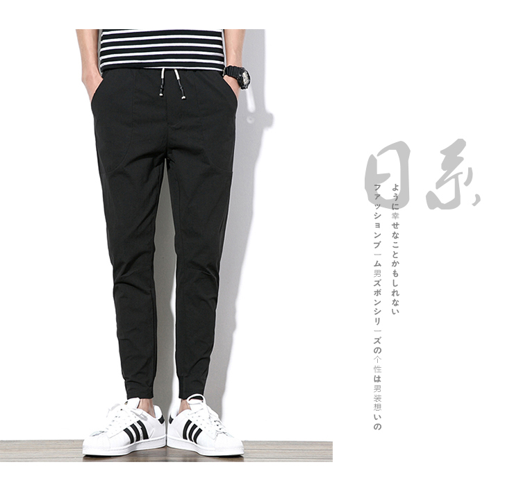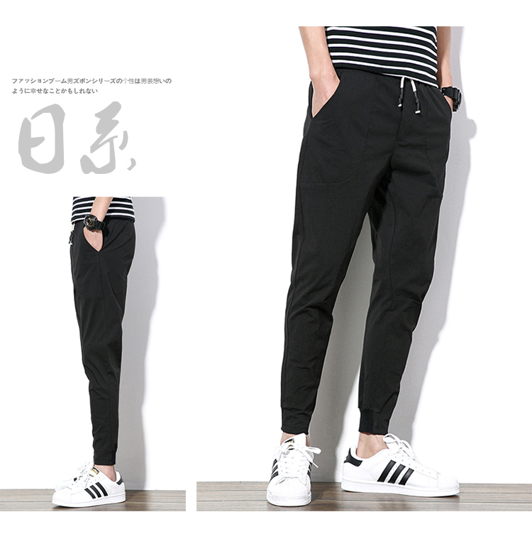 2019夏季薄款冰絲男士九分褲韓版潮流修閑褲百搭束腳收腿小腳褲