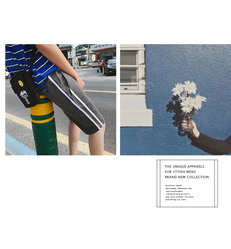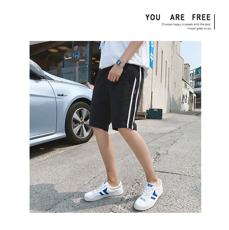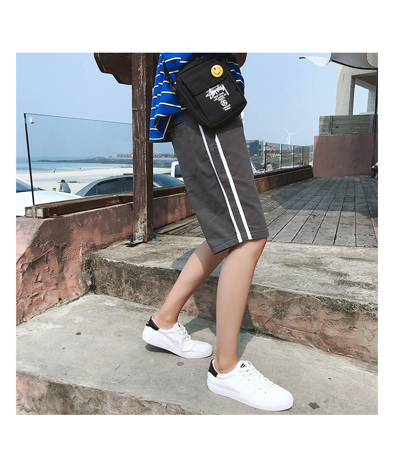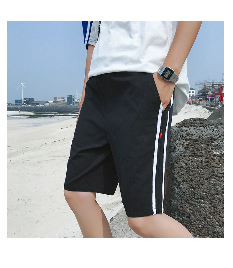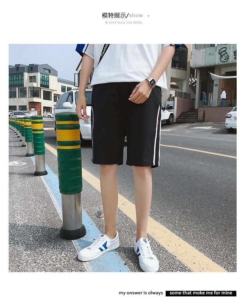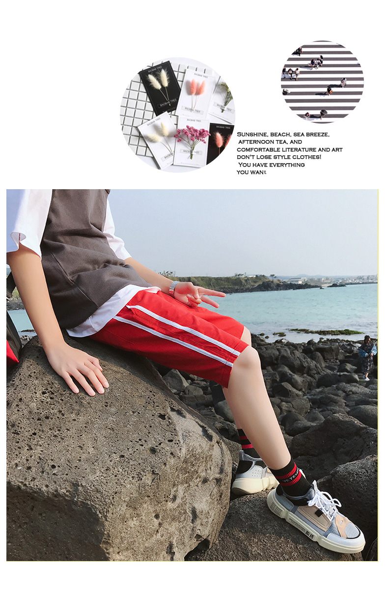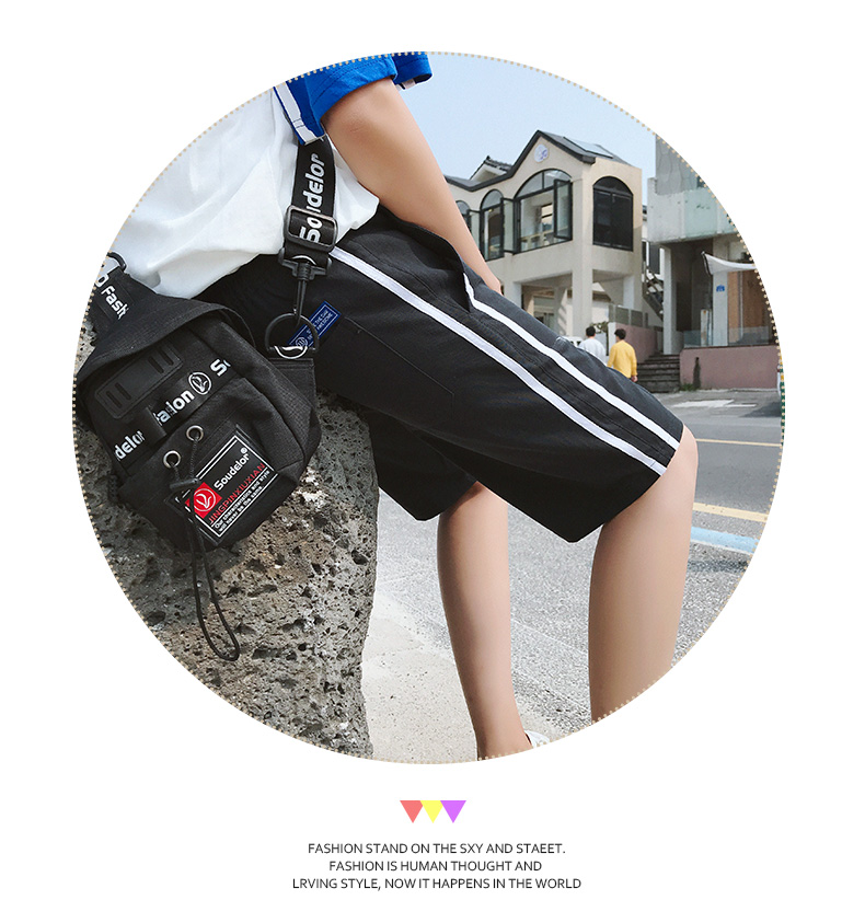 運動短褲男潮五分褲潮流寬松薄款條紋休閑半截褲中褲潮牌學生馬褲