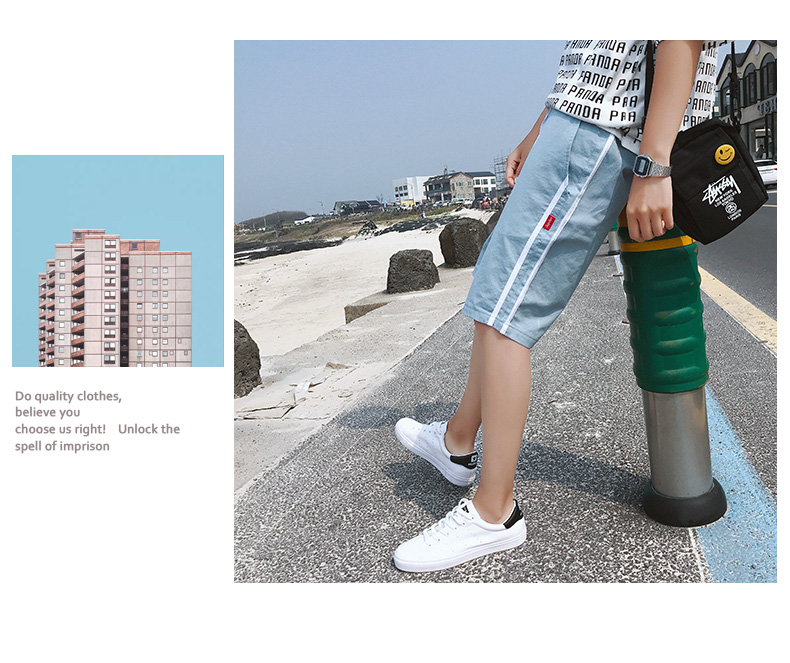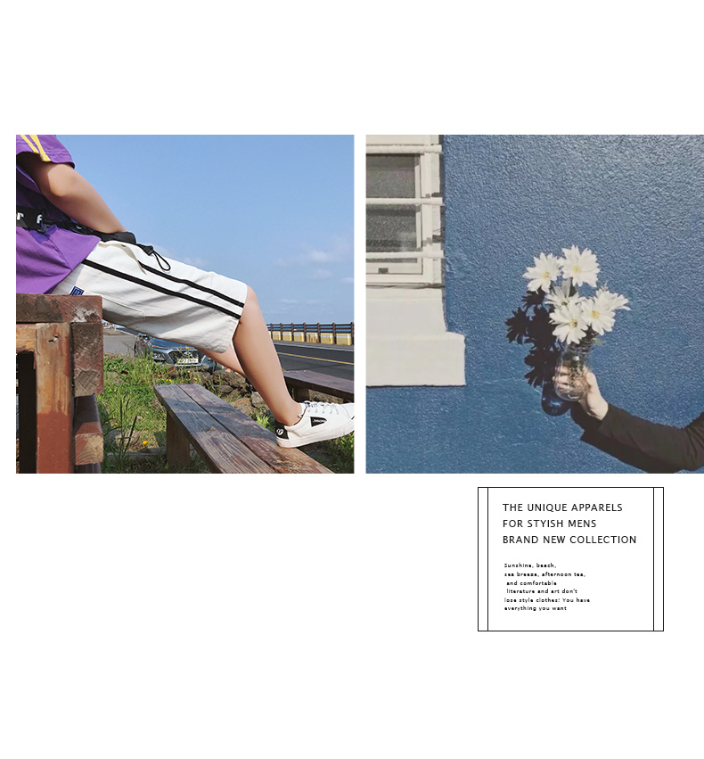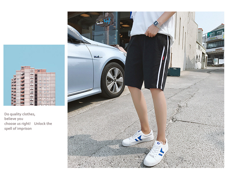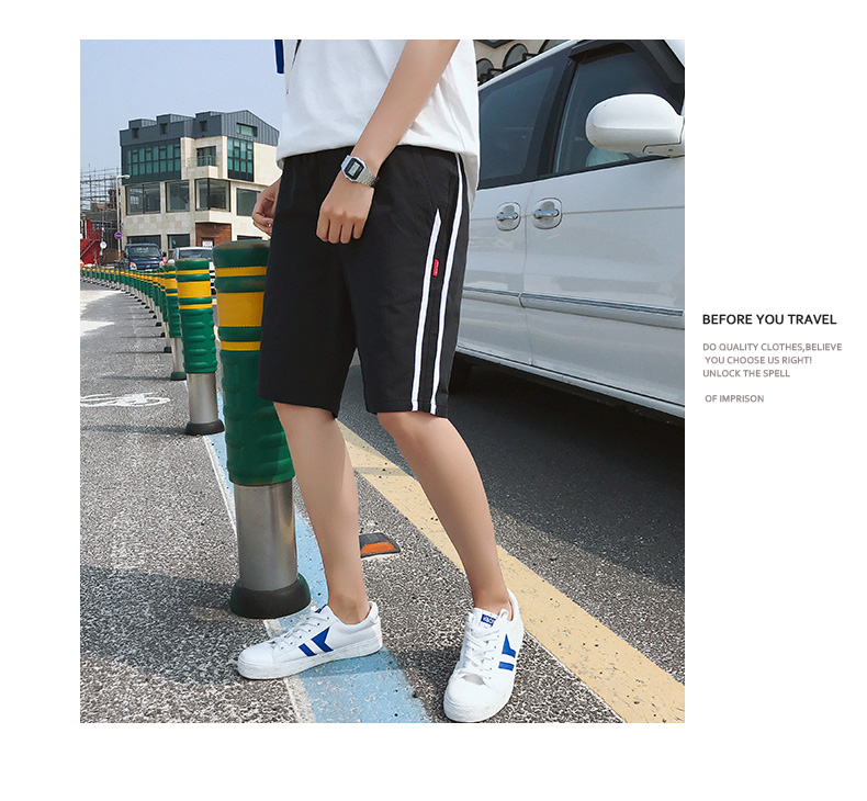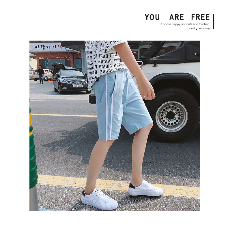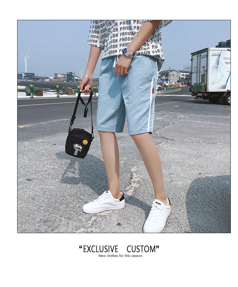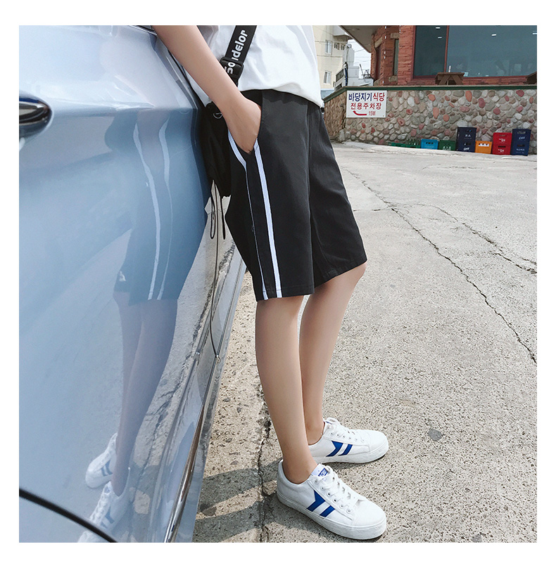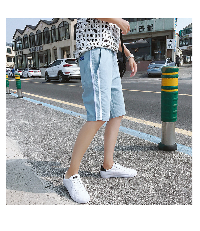 運動短褲男潮五分褲潮流寬松薄款條紋休閑半截褲中褲潮牌學生馬褲