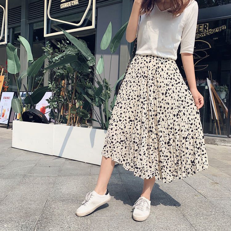 2019春季新款中長款過膝高腰不規則波點a字半身裙女ins百褶裙子