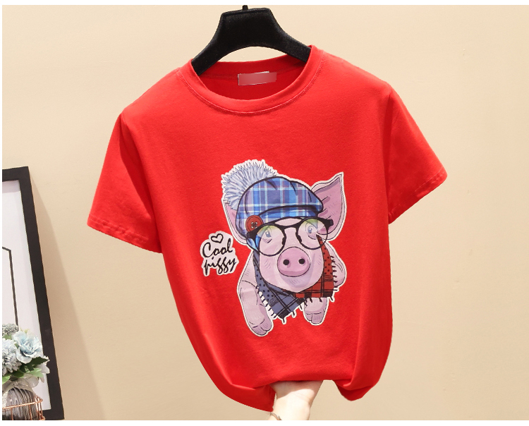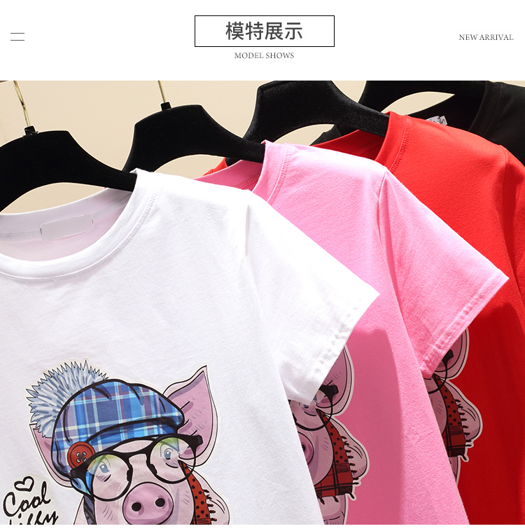 2019夏裝新款韓版修身顯瘦白色小豬t恤女短袖上衣半袖打底體恤衫