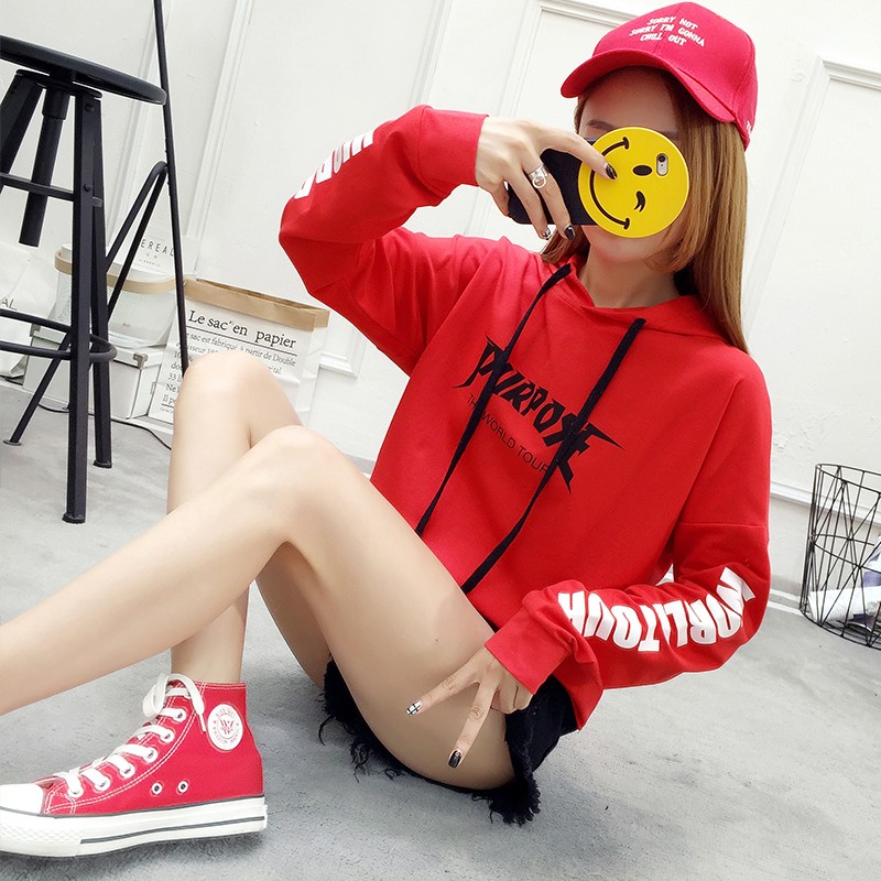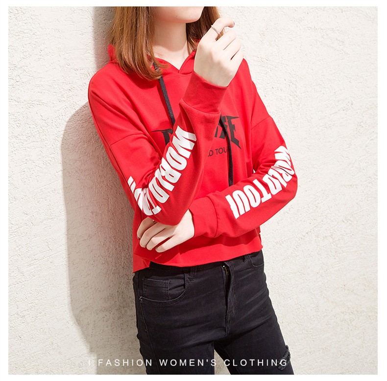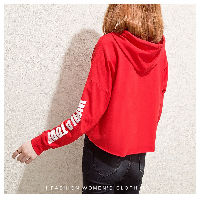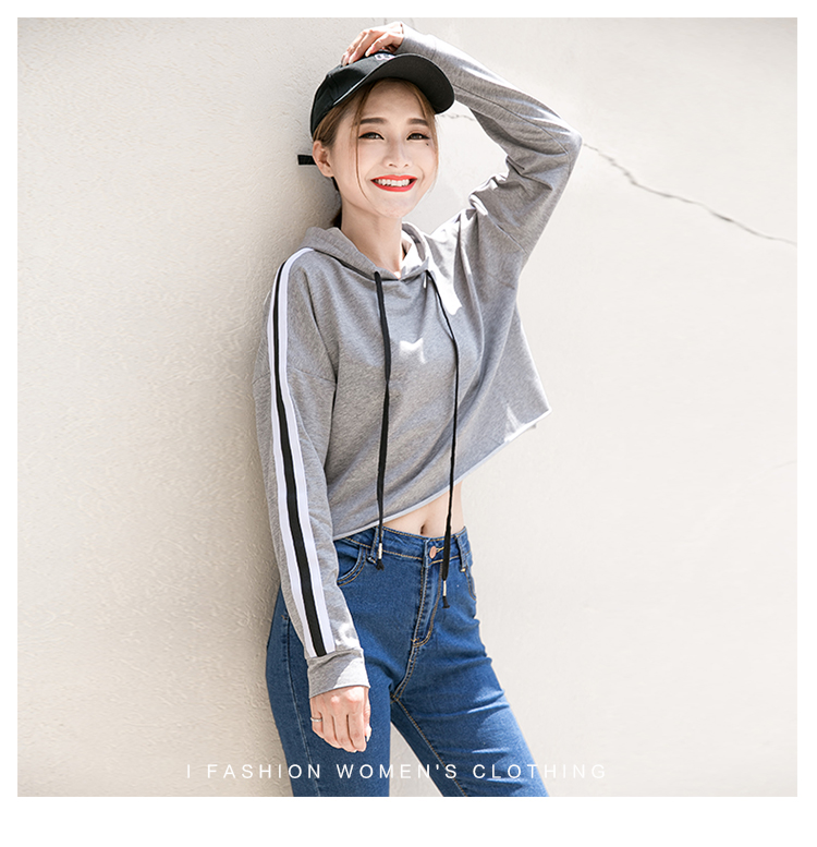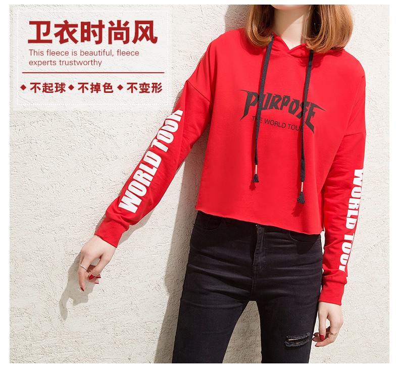 衛衣女學生春秋韓版bf百搭連帽chic寬松長袖高腰露臍裝短款上衣潮