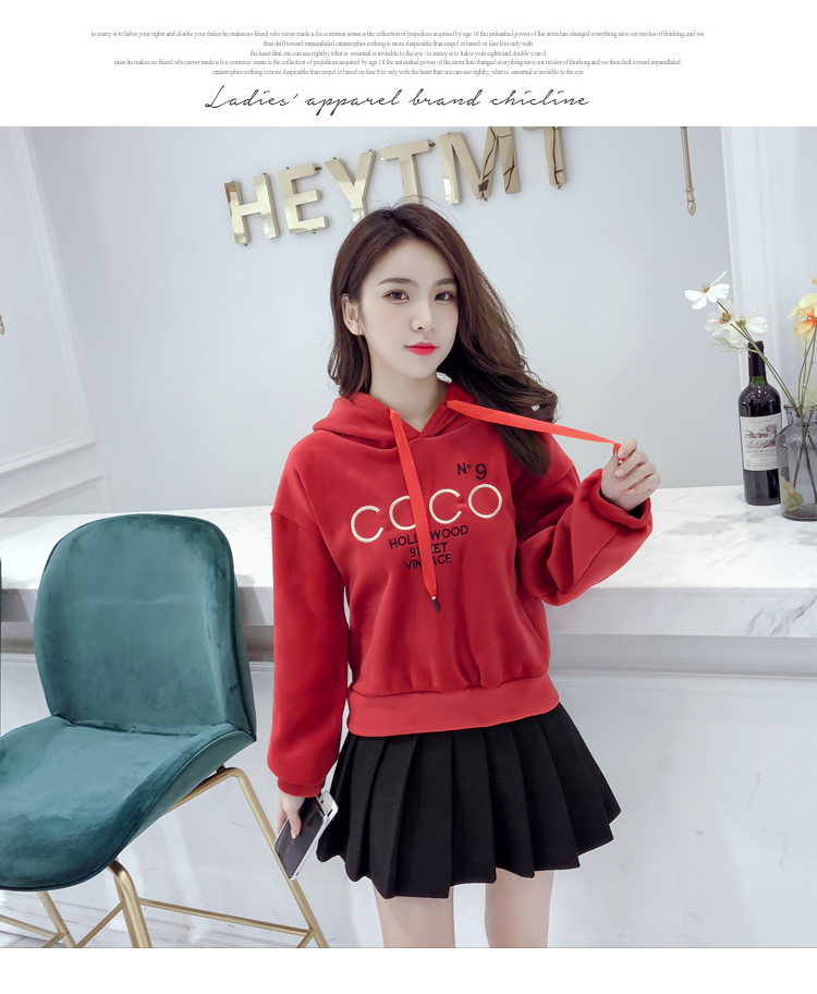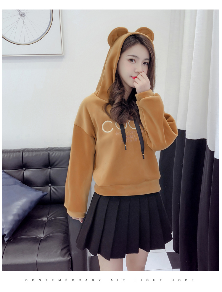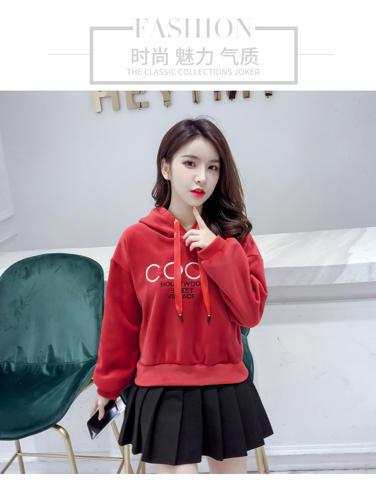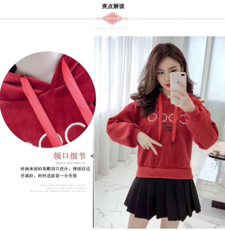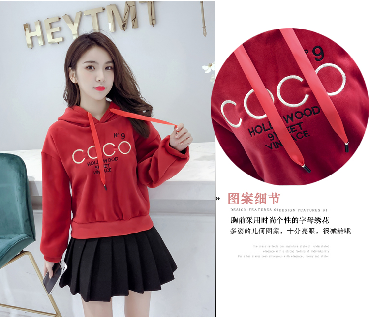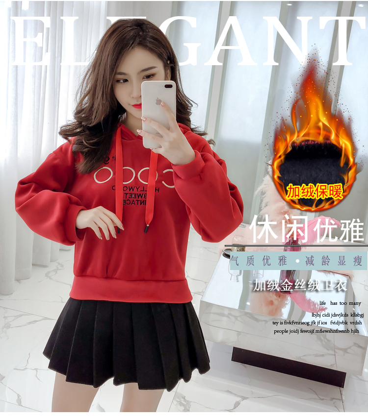 金絲絨短款衛衣女加絨加厚秋冬季新款寬松韓版慵懶風連帽刺繡上衣