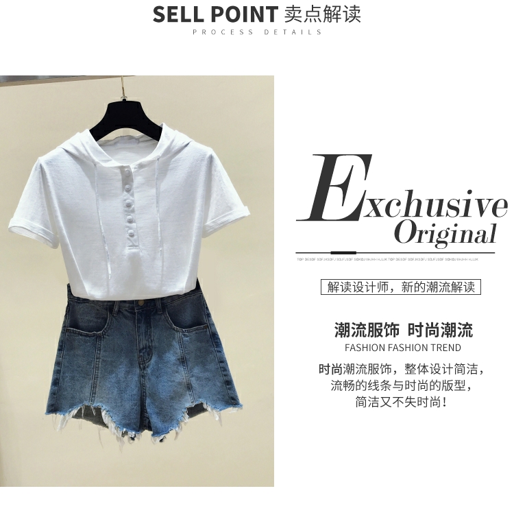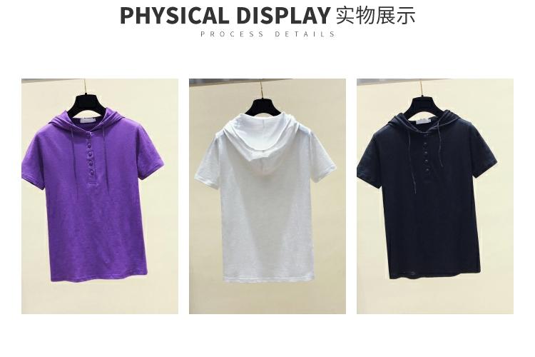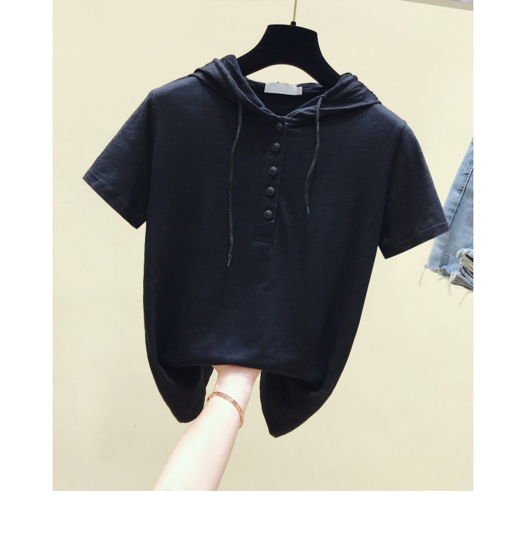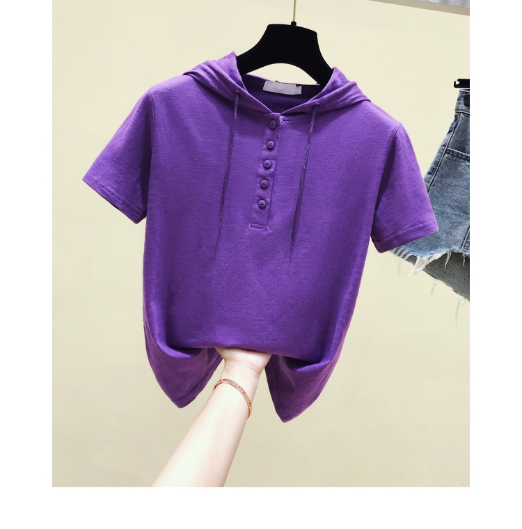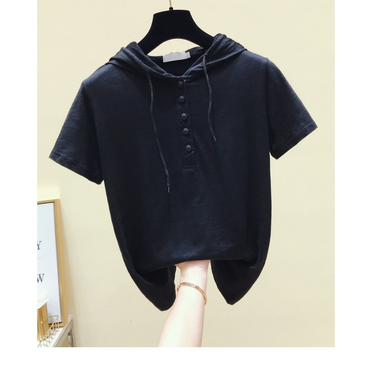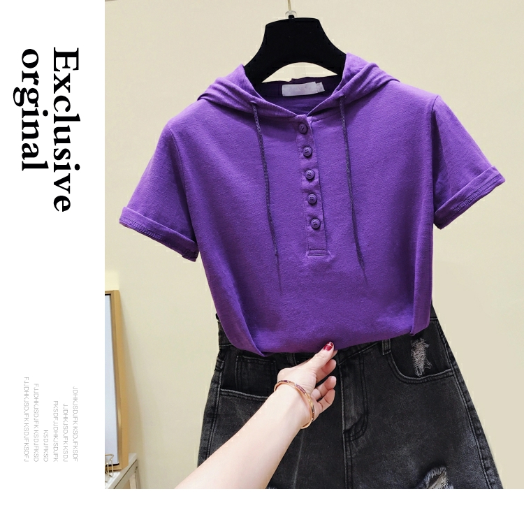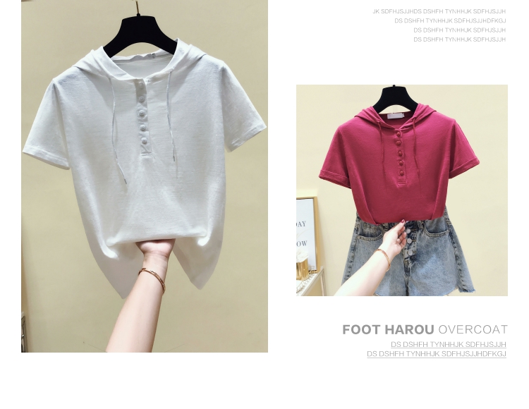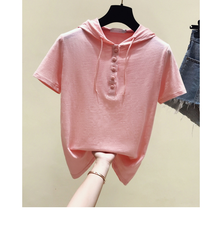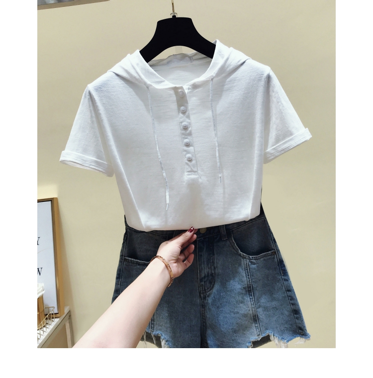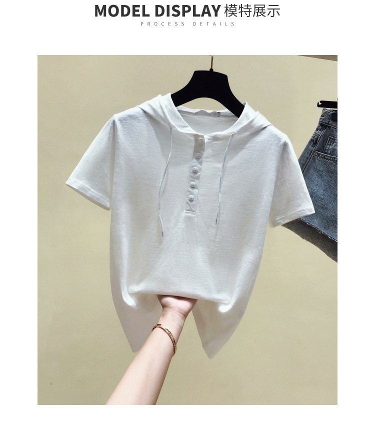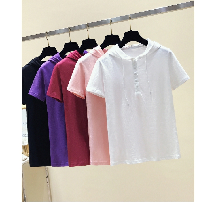 韓版新款夏裝短袖連帽寬松竹節棉t恤女裝半袖純棉休閑打底衫上衣