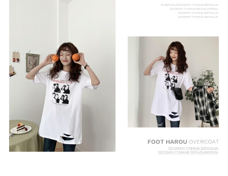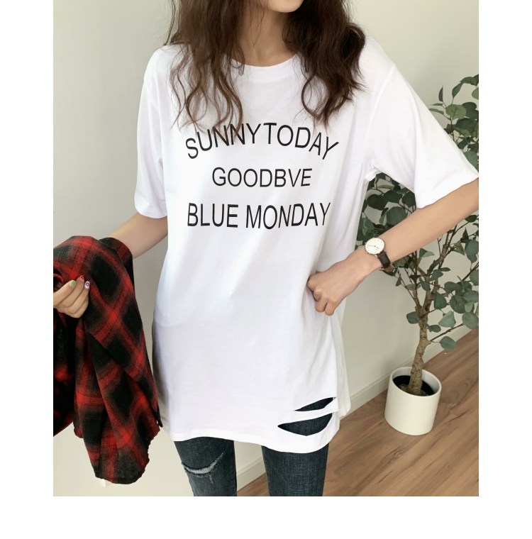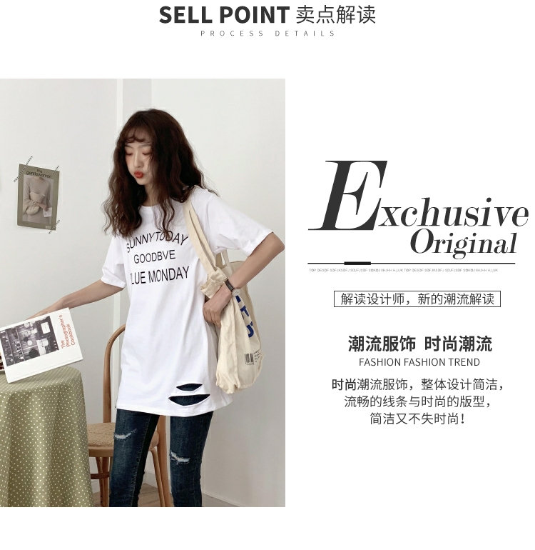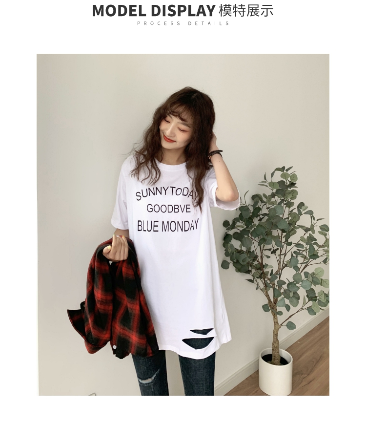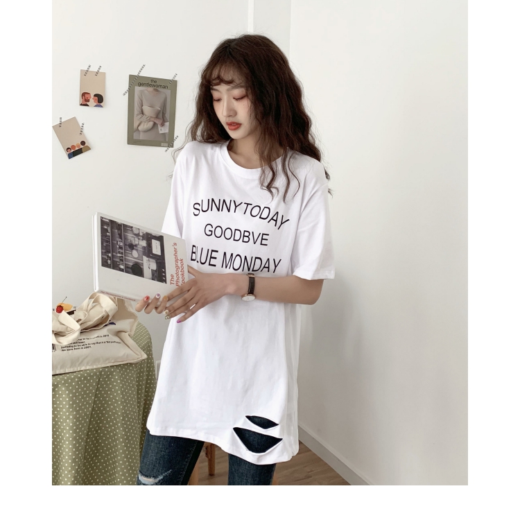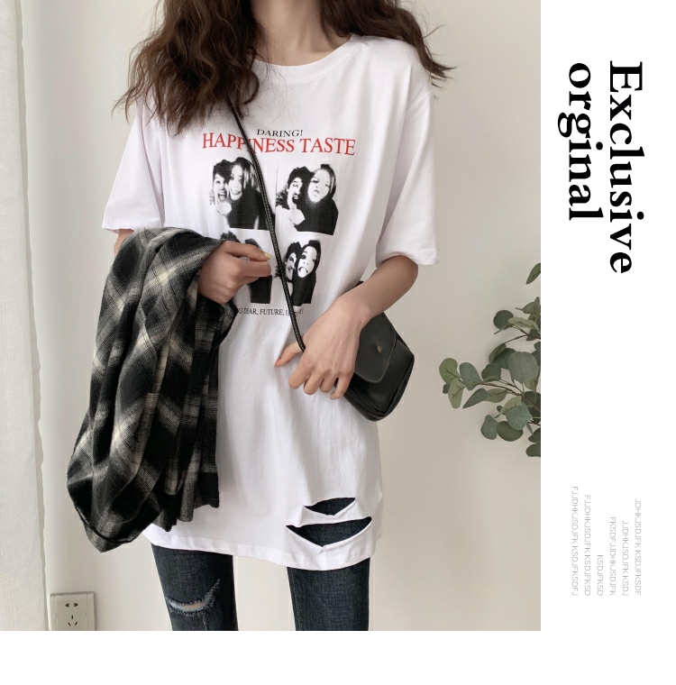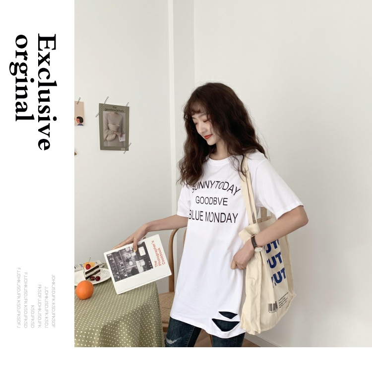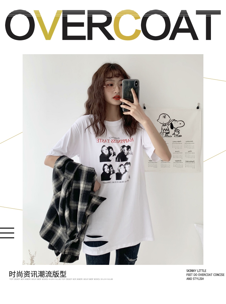 超火cec短袖2019新款休閑T恤女中長款寬松bf風韓版學生白色上衣潮