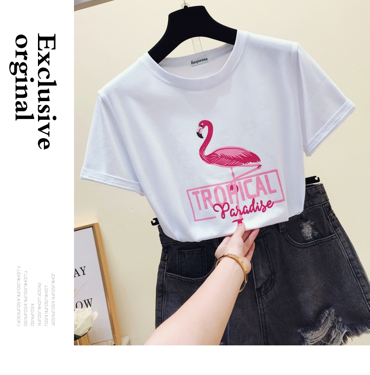 2019夏裝新款印花白色短袖t恤女士韓范寬松超火cec純棉體恤上衣潮