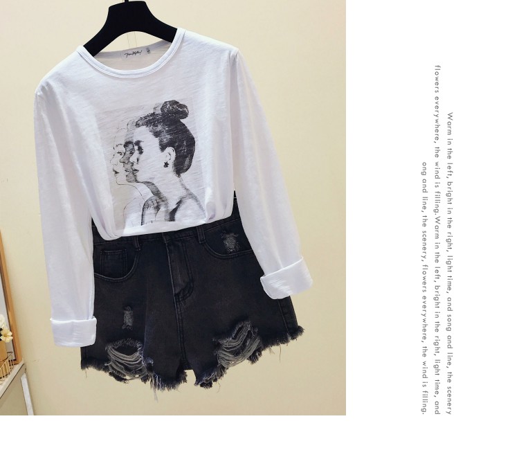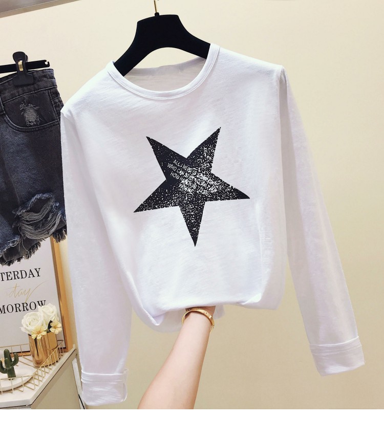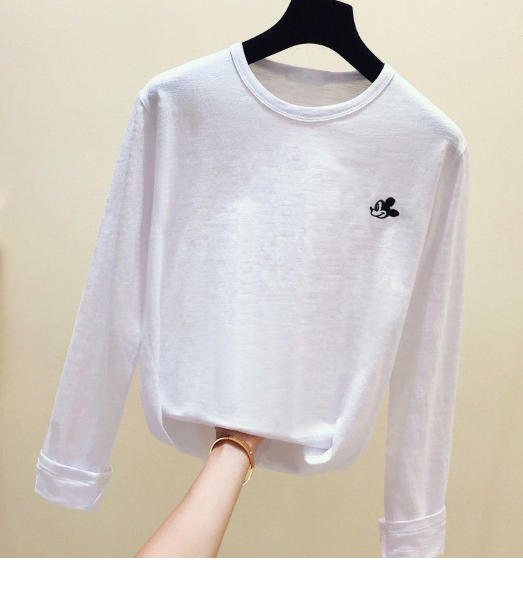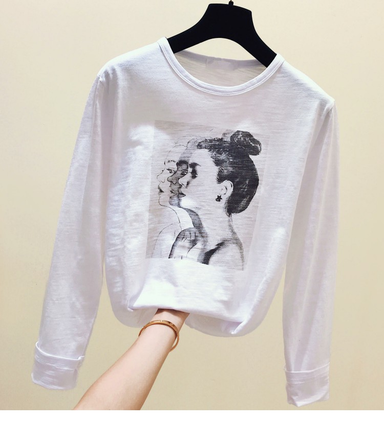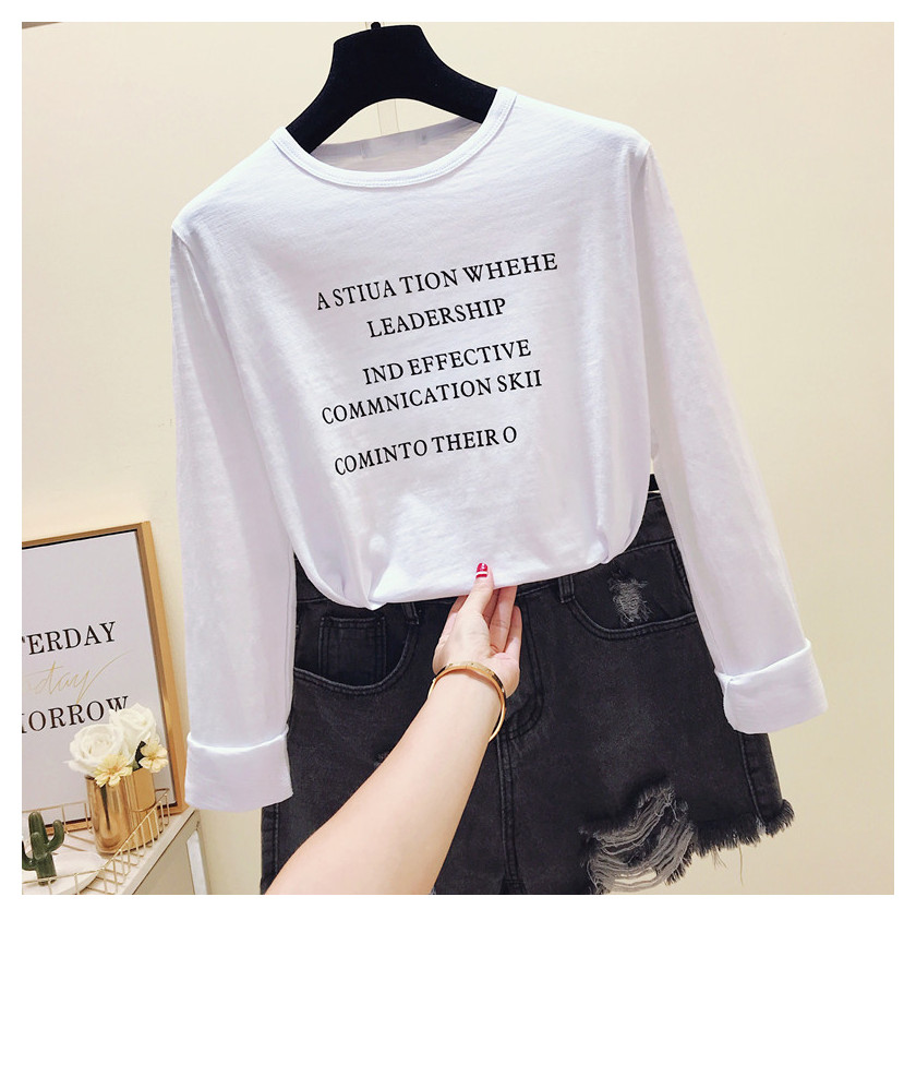 2019春裝新款韓版寬松百搭春季長袖白色t恤女竹節棉打底衫上衣服
