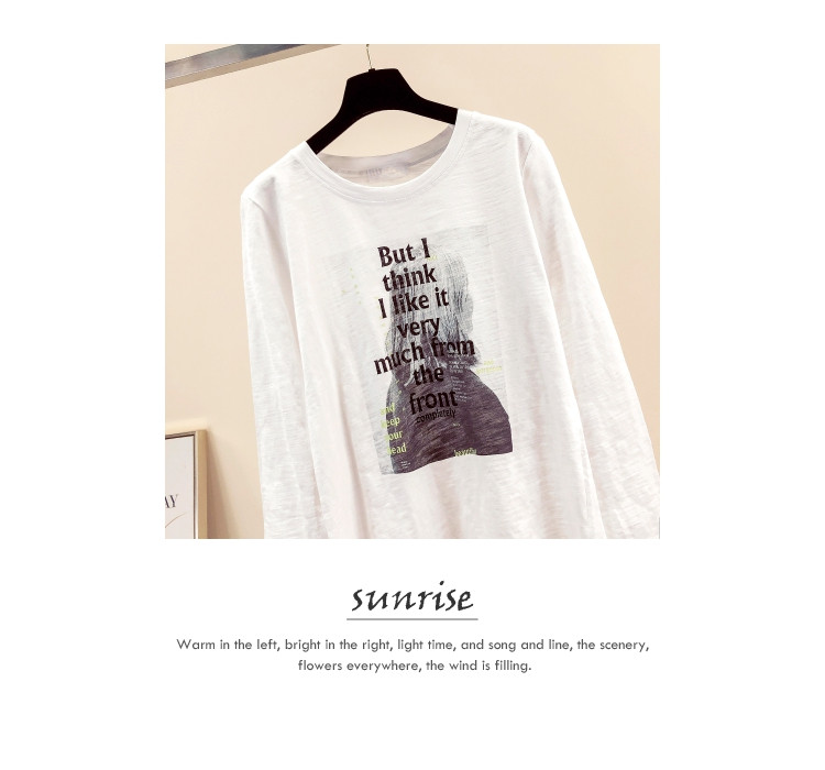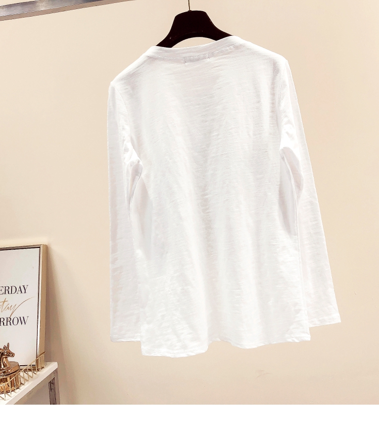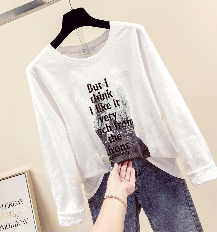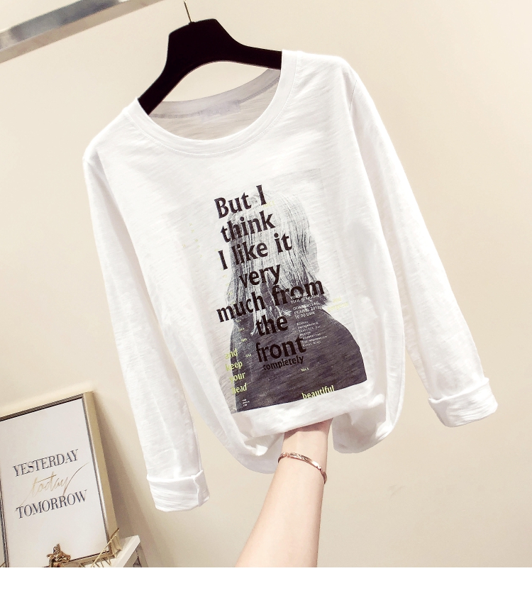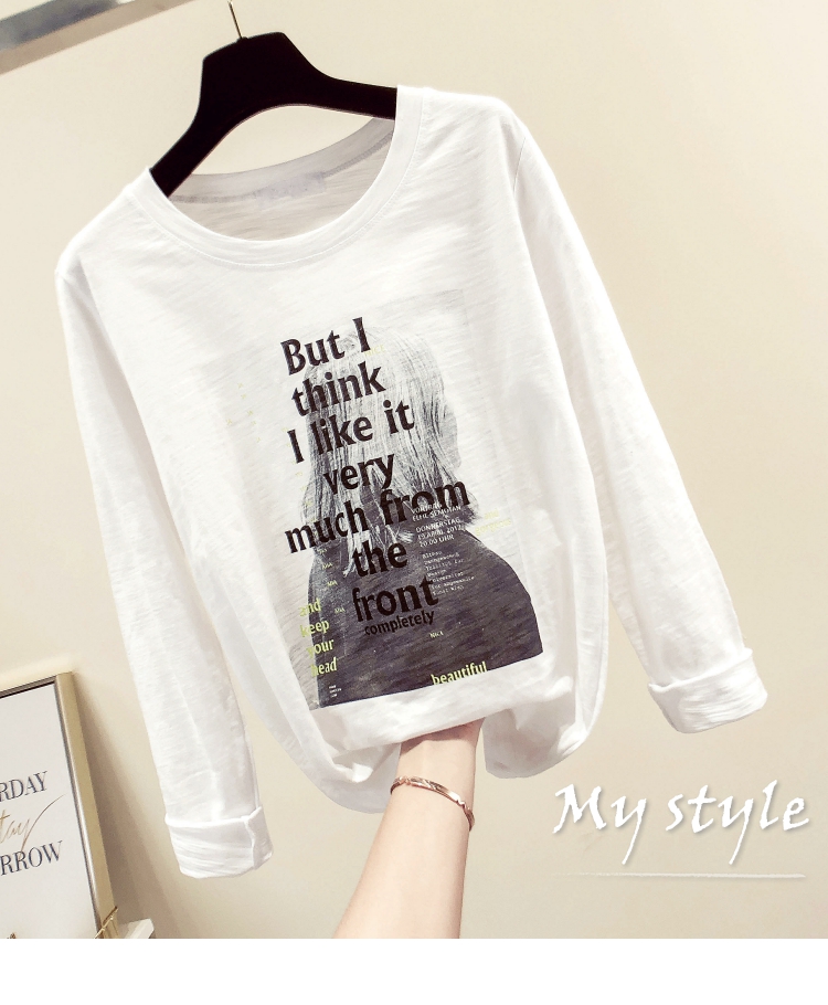2019春秋裝新款女裝白色打底衫竹節棉字母女孩印花T恤長袖女上衣