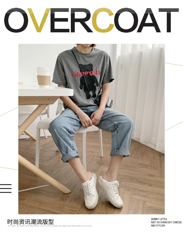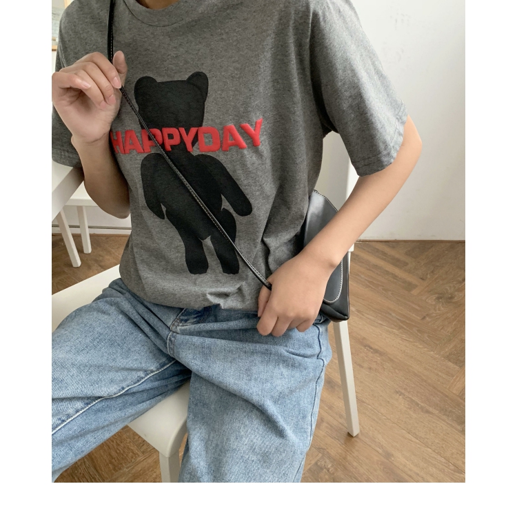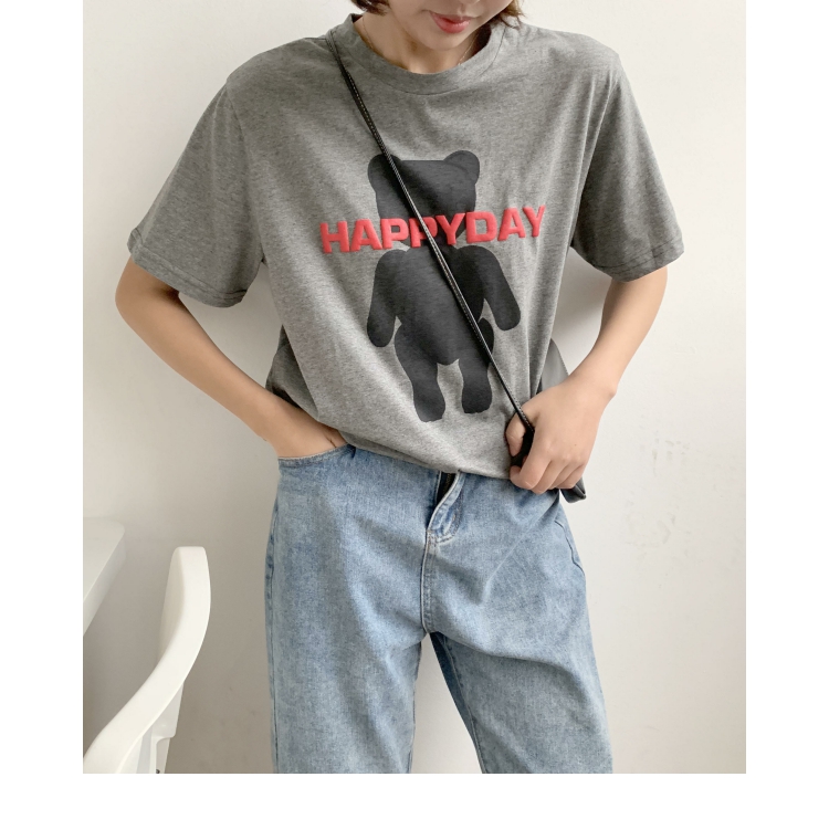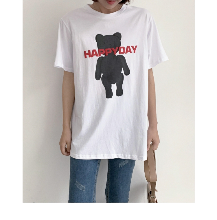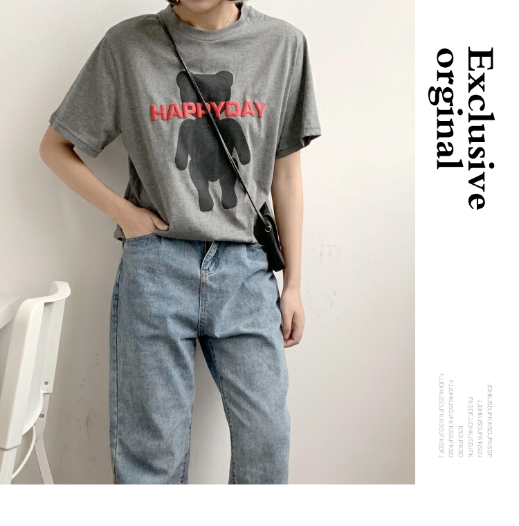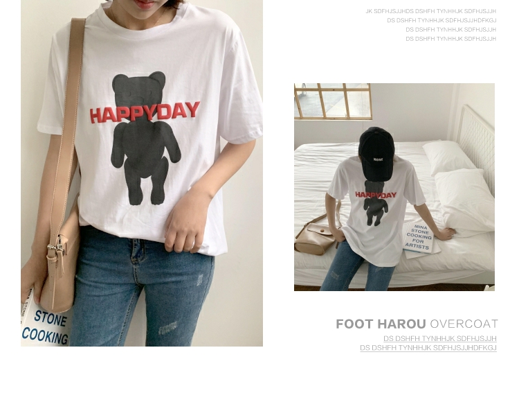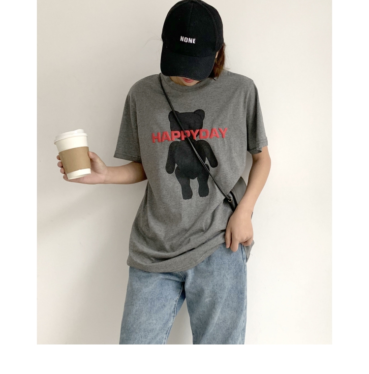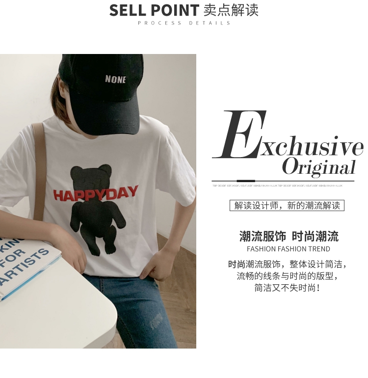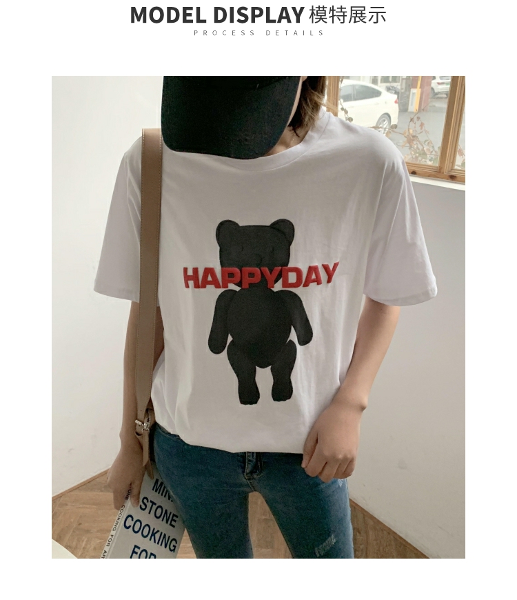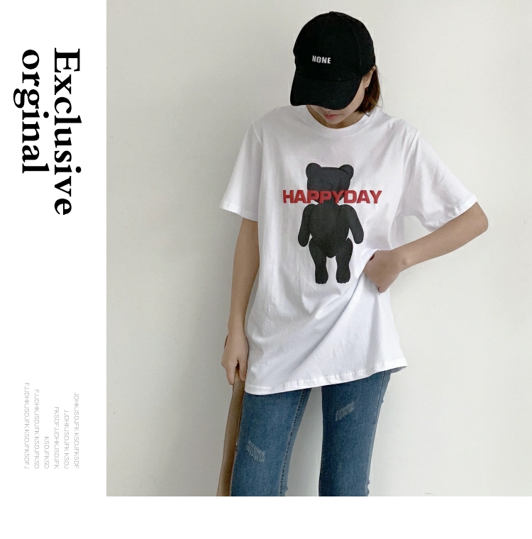 2019春夏季新款女裝小熊圖案T恤純棉寬松休閑短袖女字母印花上衣