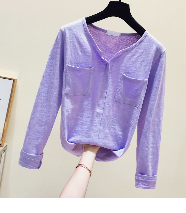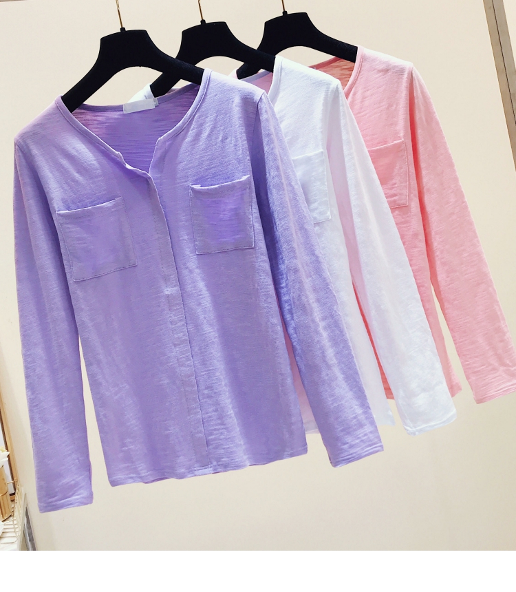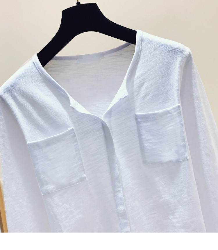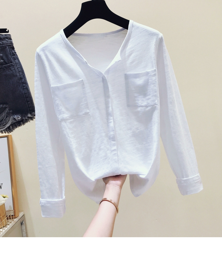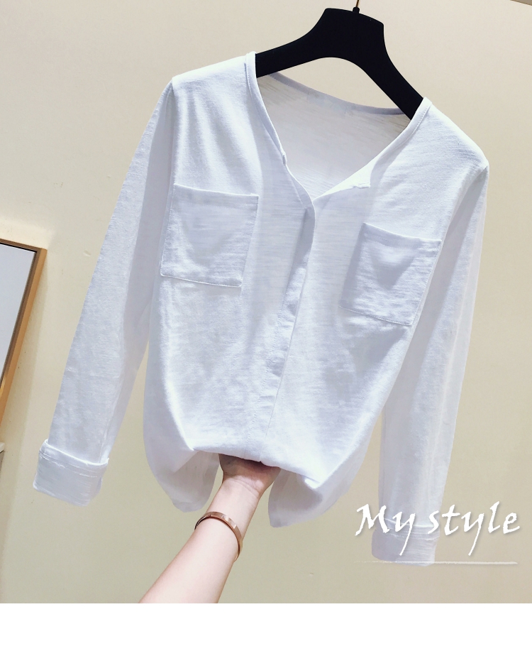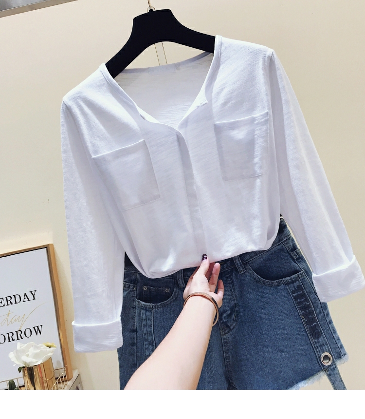 2019春秋裝新款純棉寬松百搭長袖t恤女白色竹節棉韓版打底衫上衣