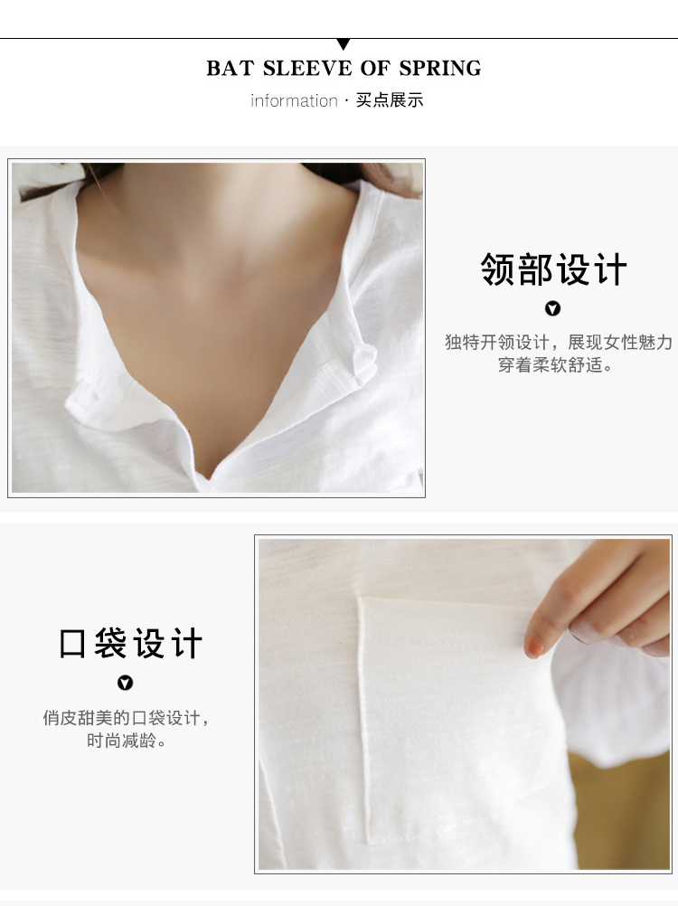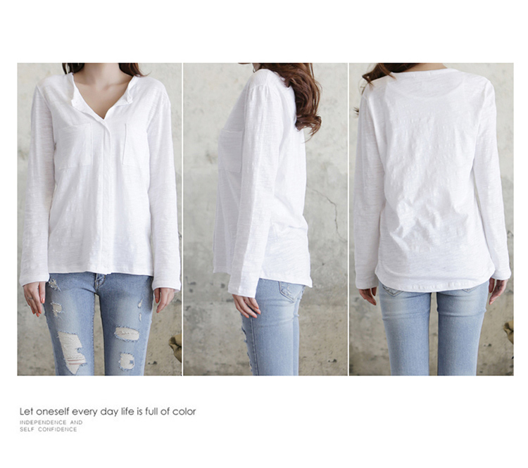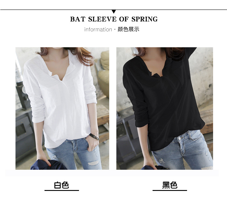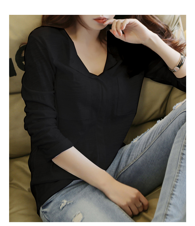2019春秋裝新款韓版竹節棉長袖T恤女V領寬松大碼百搭打底衫上衣潮